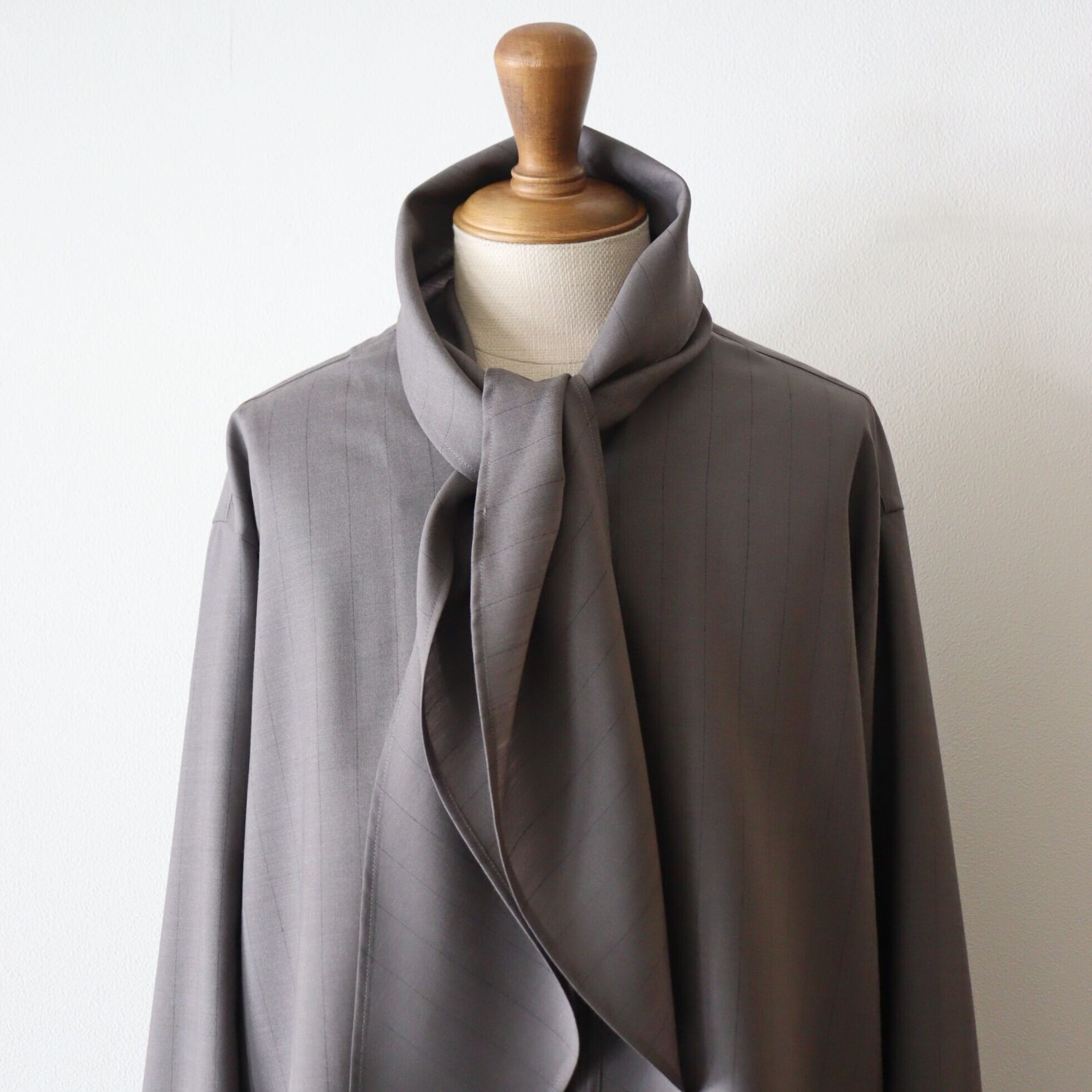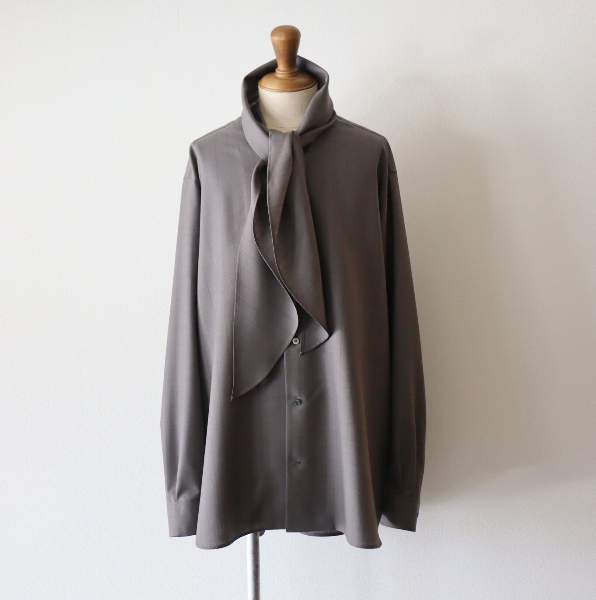 セーラーカラーのようなスカーフカラーがエレガントな印象のシャツです。