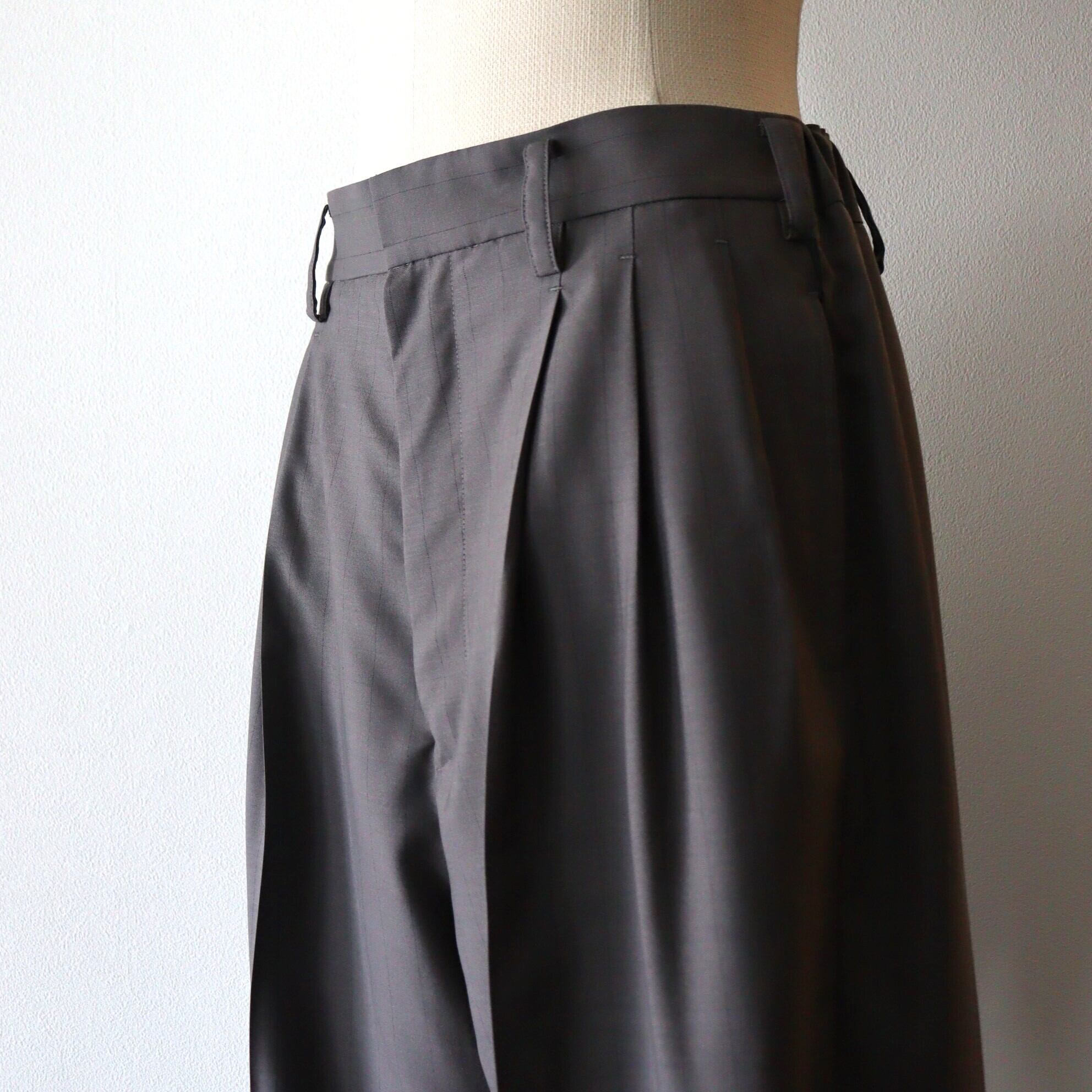 贅沢な分量を使⽤したワイドテーパードパンツです。3タックでゆとりを持たせ、股上も深く設定し、男らしい重厚感あるシルエットながら、上品で、エレガントなバランスになっています。