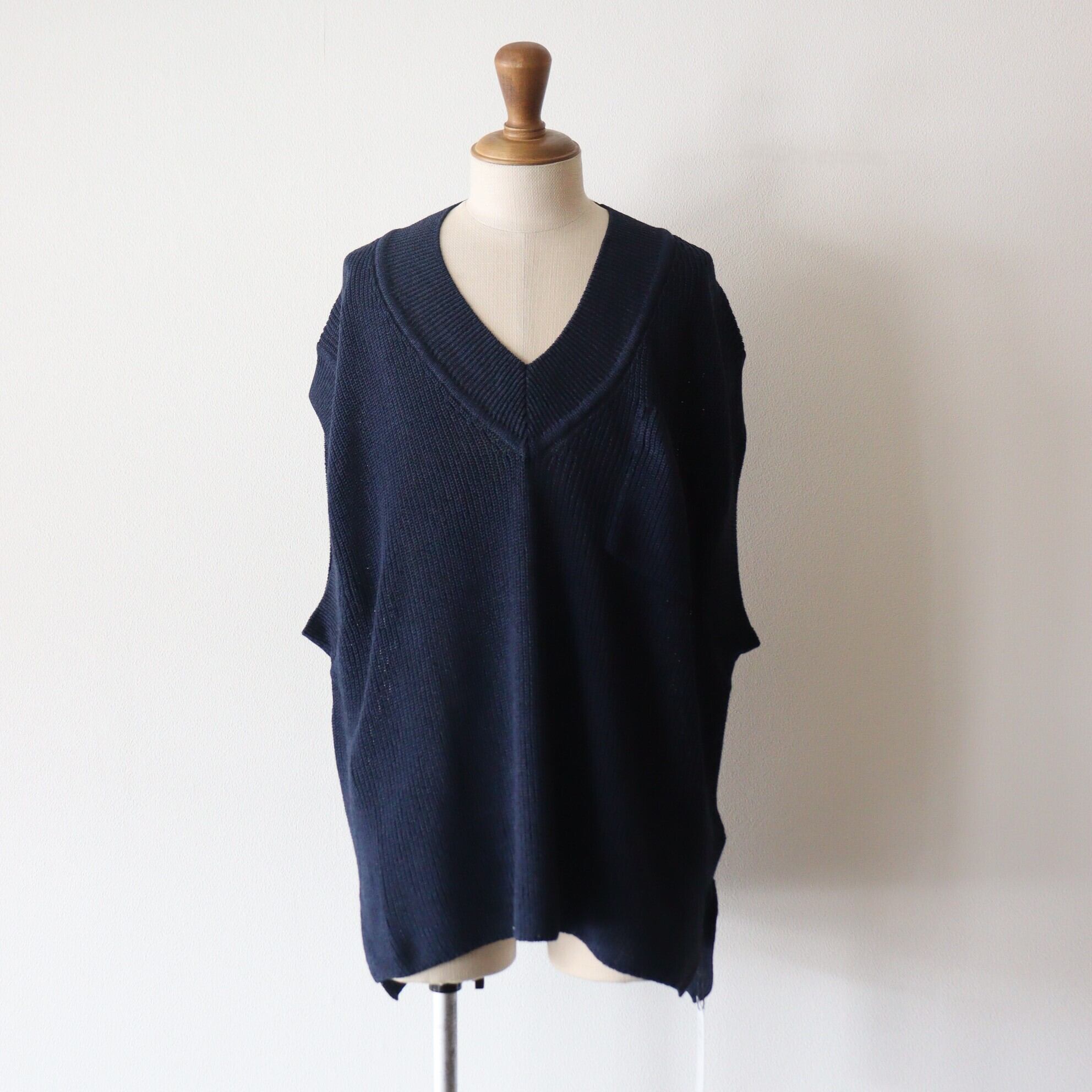 POSTELEGANT " Washi Paper Wool Knit Vest ( Navy ) "