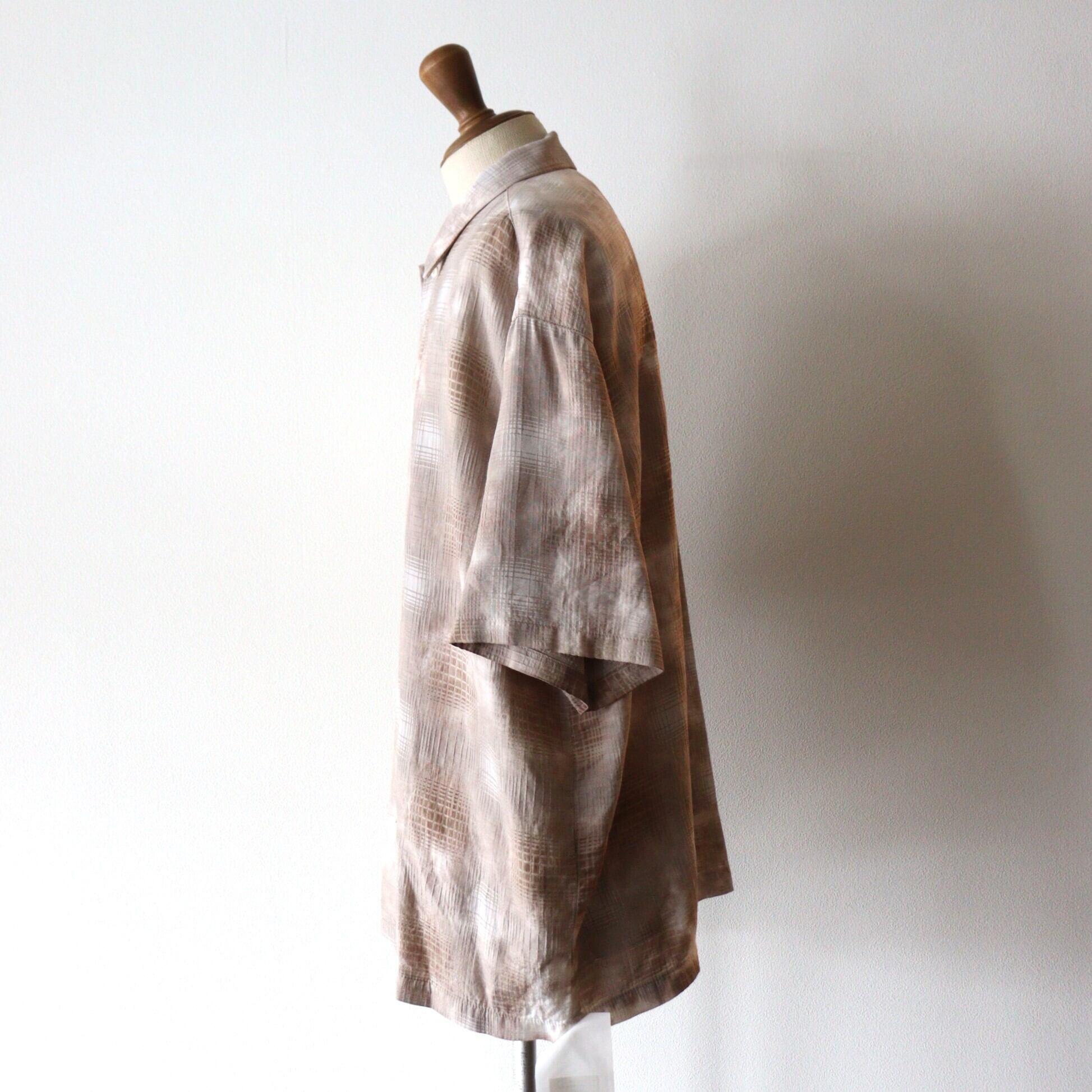 アロハシャツ型のオープンカラーの半袖シャツ。