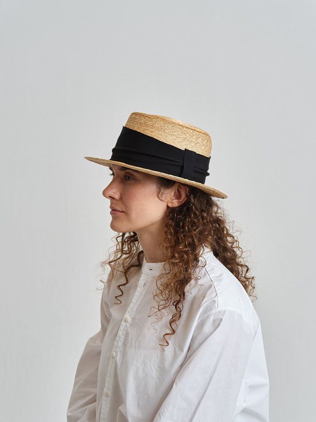 程よい深さのクラウンに、短めのブリムがおさまりのいいストローハット。