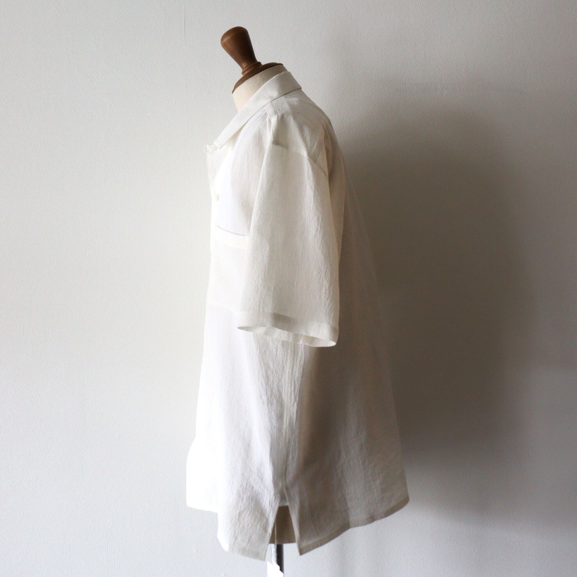 シルエットは程よくゆったりとしたシルエットでまたリネンの本来持つ清涼感と強撚することで生まれるドライなタッチが、夏の暑い時期には最適な1着となっております。
