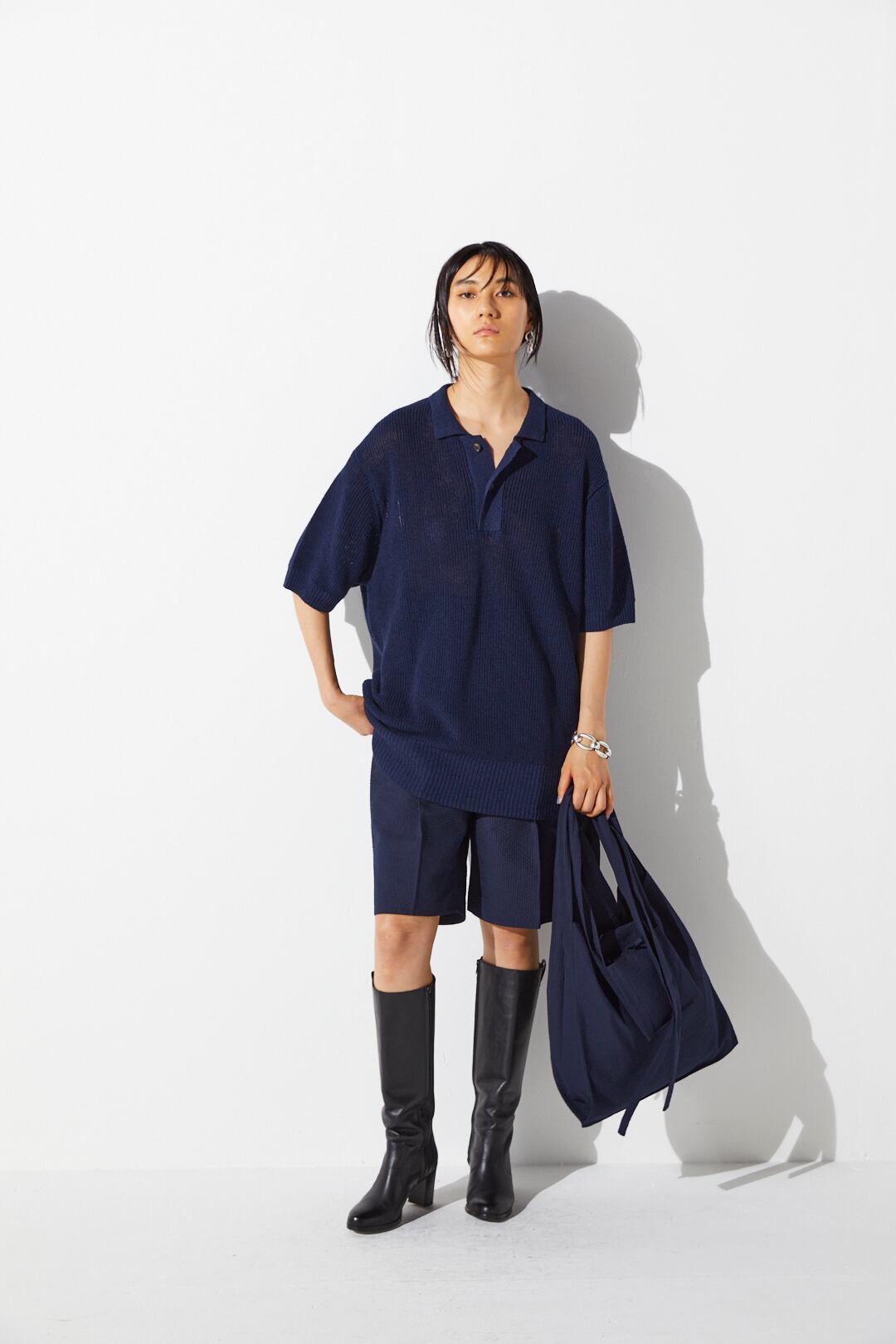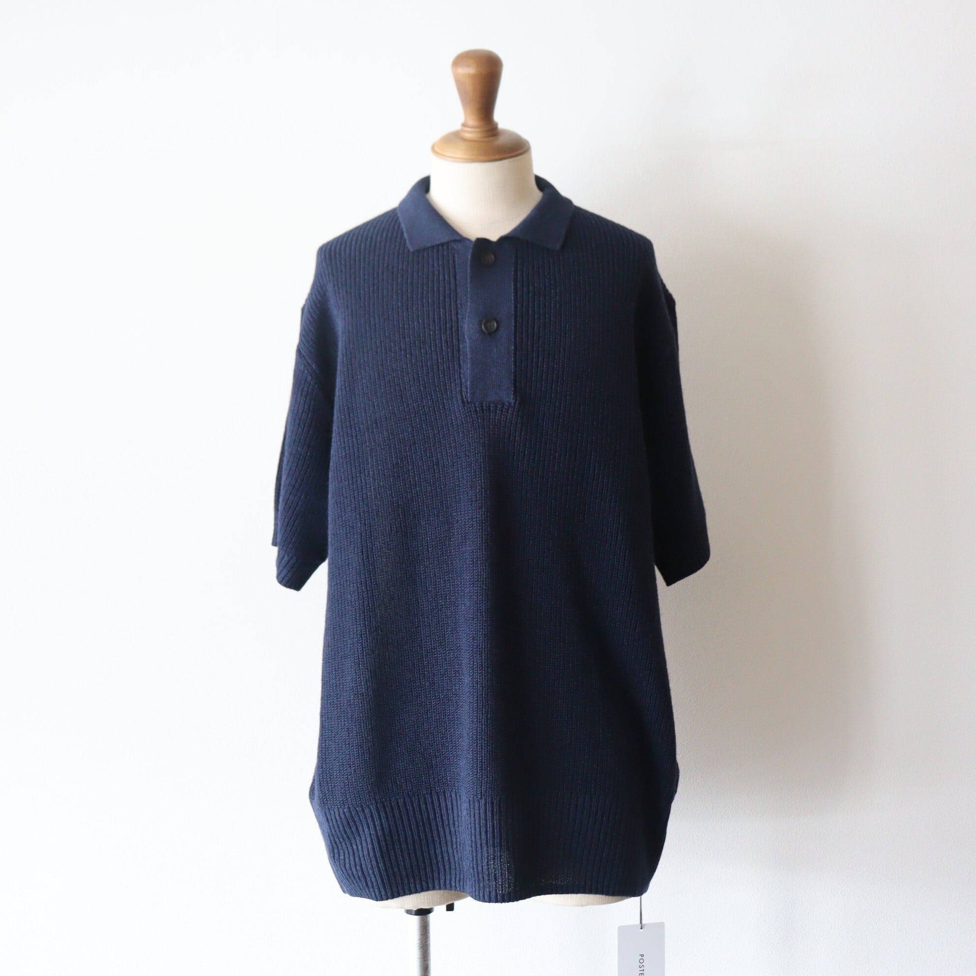 POSTELEGANT " Washi Paper Wool Knit Polo ( Navy )"
