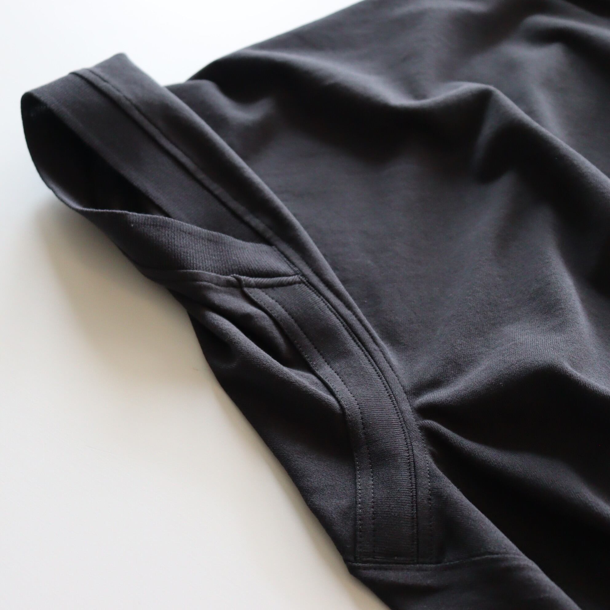 「スムース」という組織ですとドレープ性が生まれやすいのですが、スムースは身体のラインをとても拾いやすい組織ですので難しい側面もある。