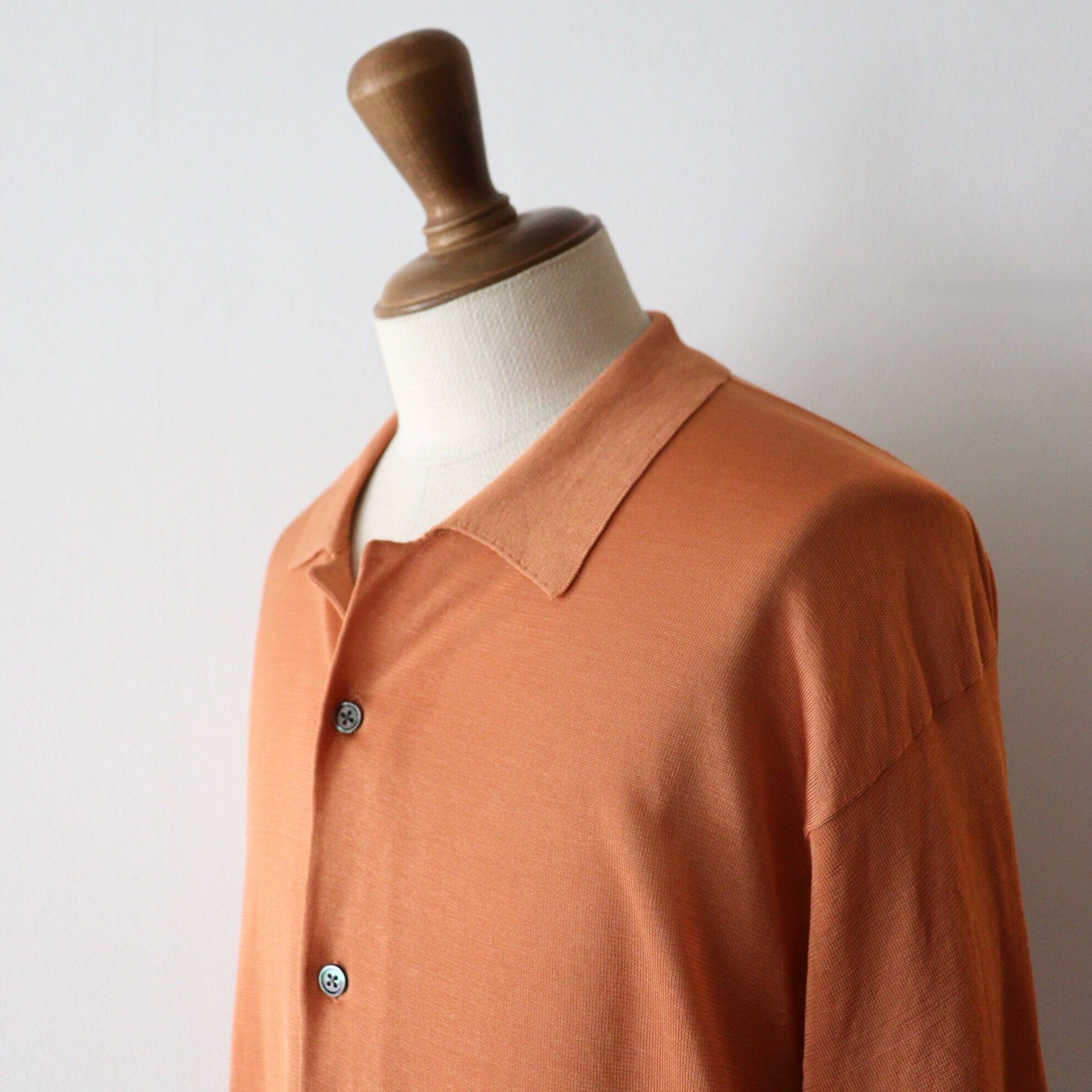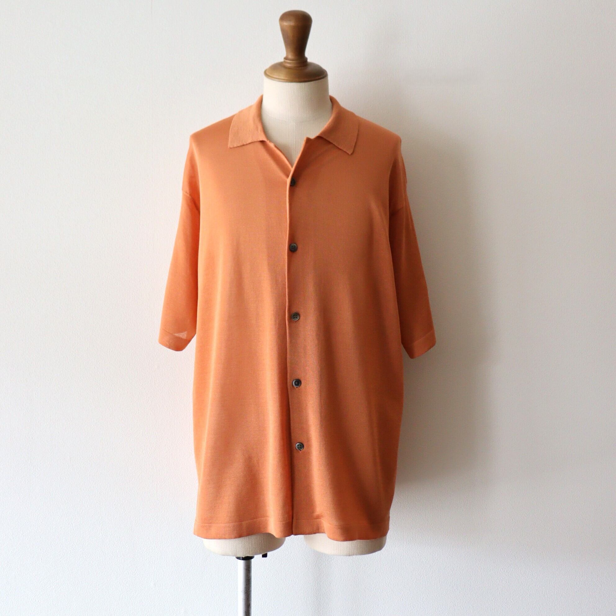 細番手のマーセライズコットンをハイゲージに編み立てた開衿のニット半袖シャツです。