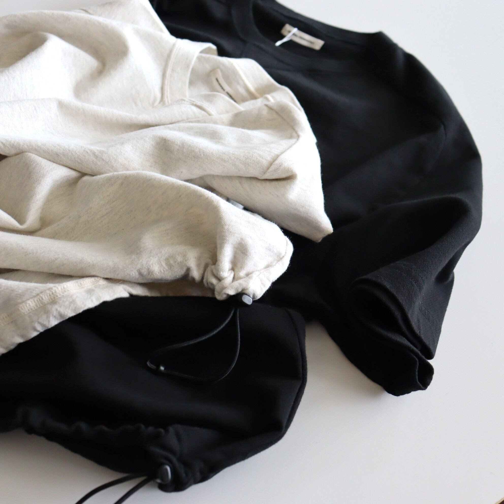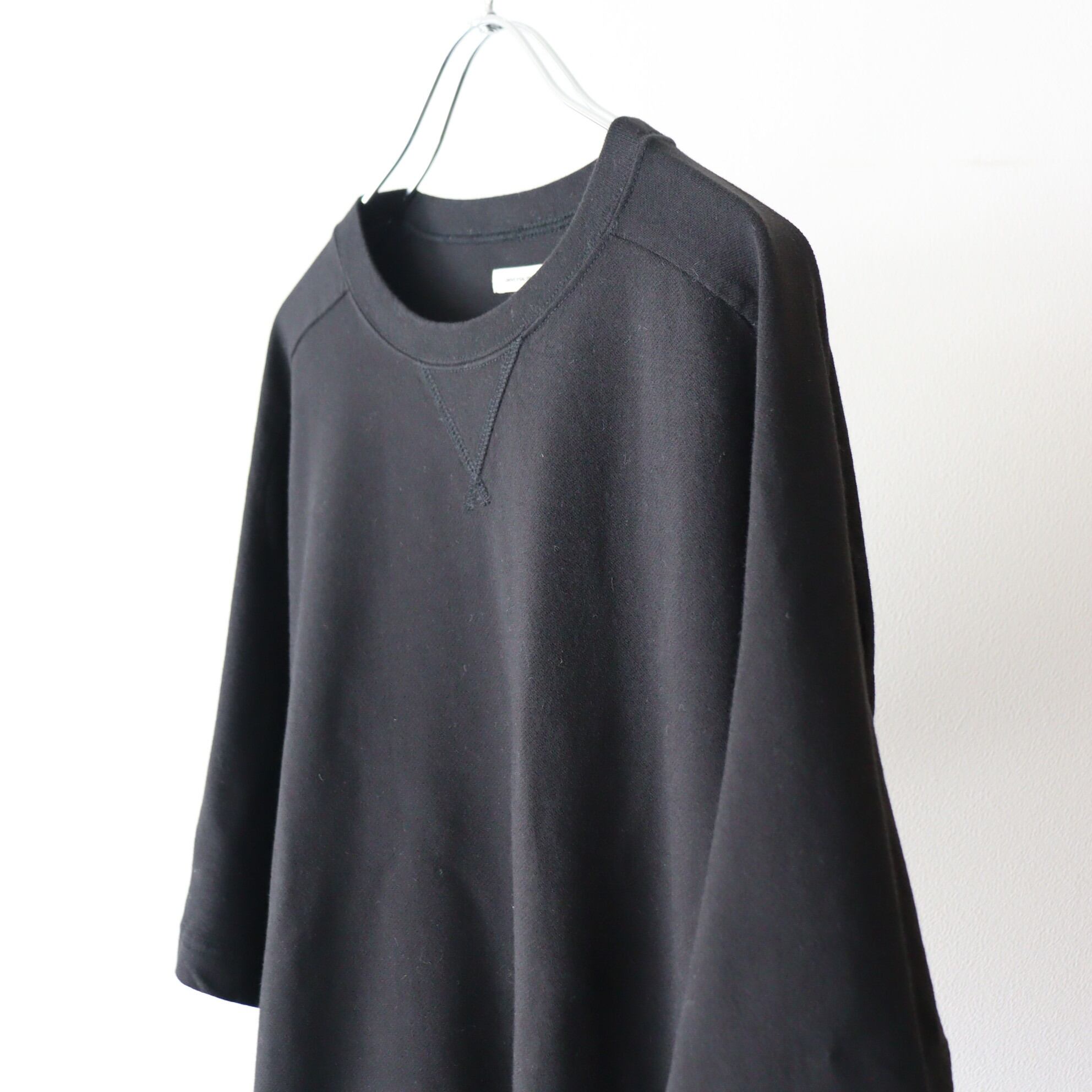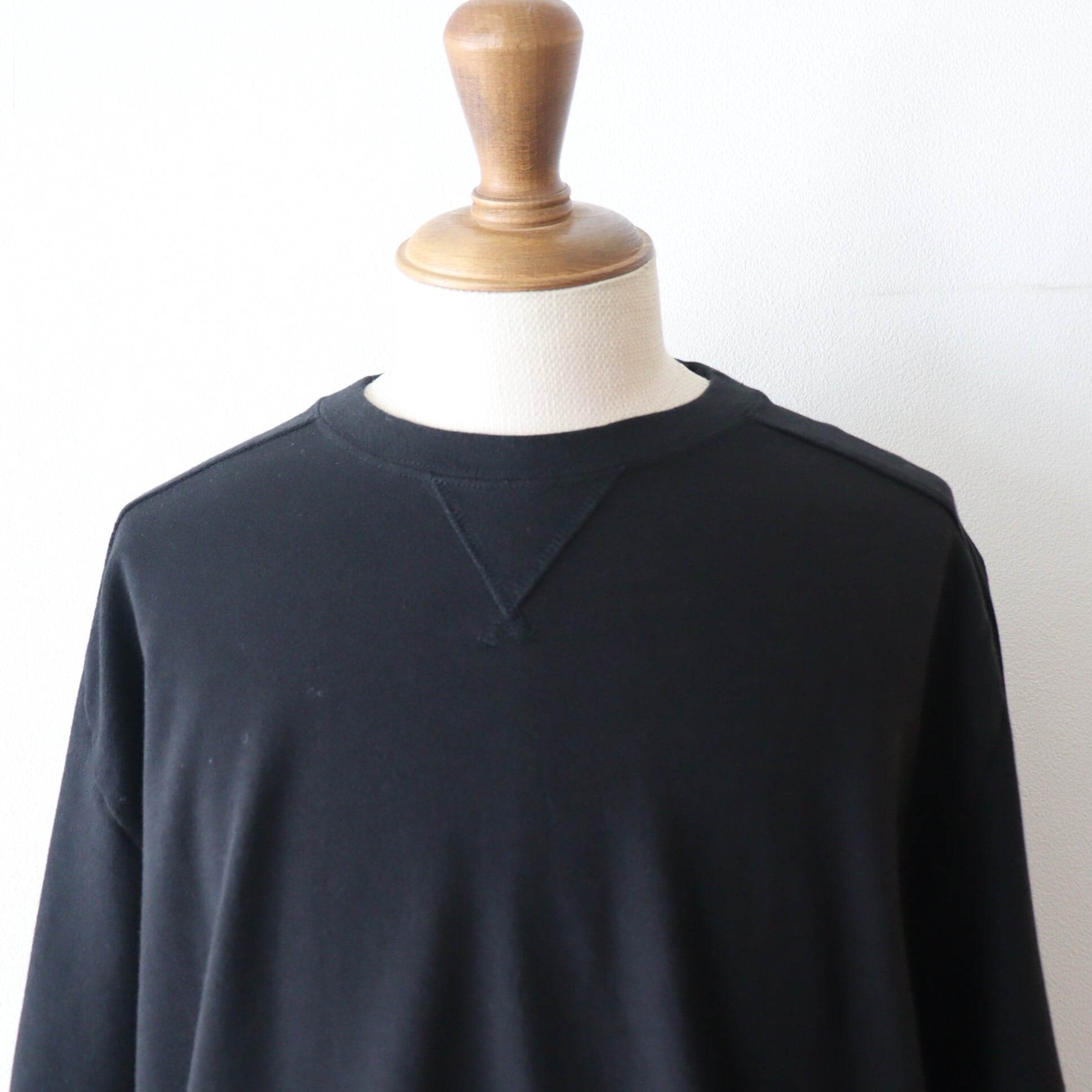 裏はパイルですが、裏毛ほどの厚みが出ないのでTシャツの感覚で着用して頂けるアイテムです。裾にスピンドルを入れているのでレイヤーして少しタフらせたり、スタイリングに幅が広がるアイテムです。