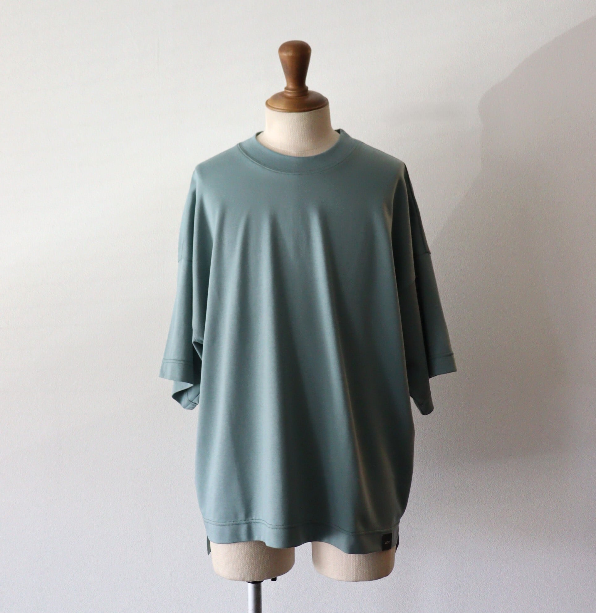 ワイドフィットで、ドロップショルダーなシルエットです。短め丈で、すっきりした印象の