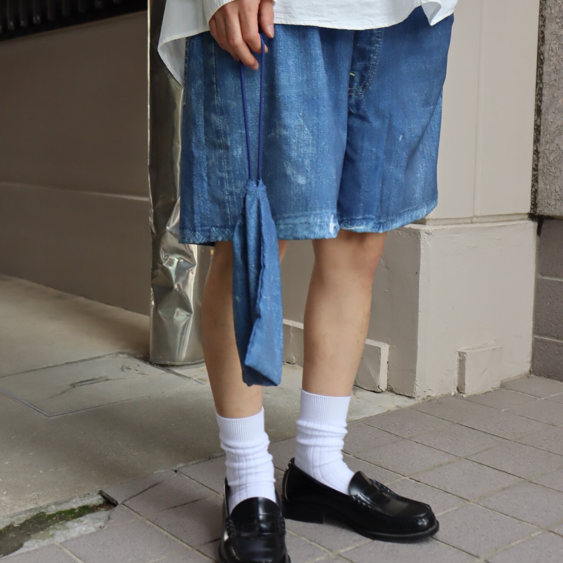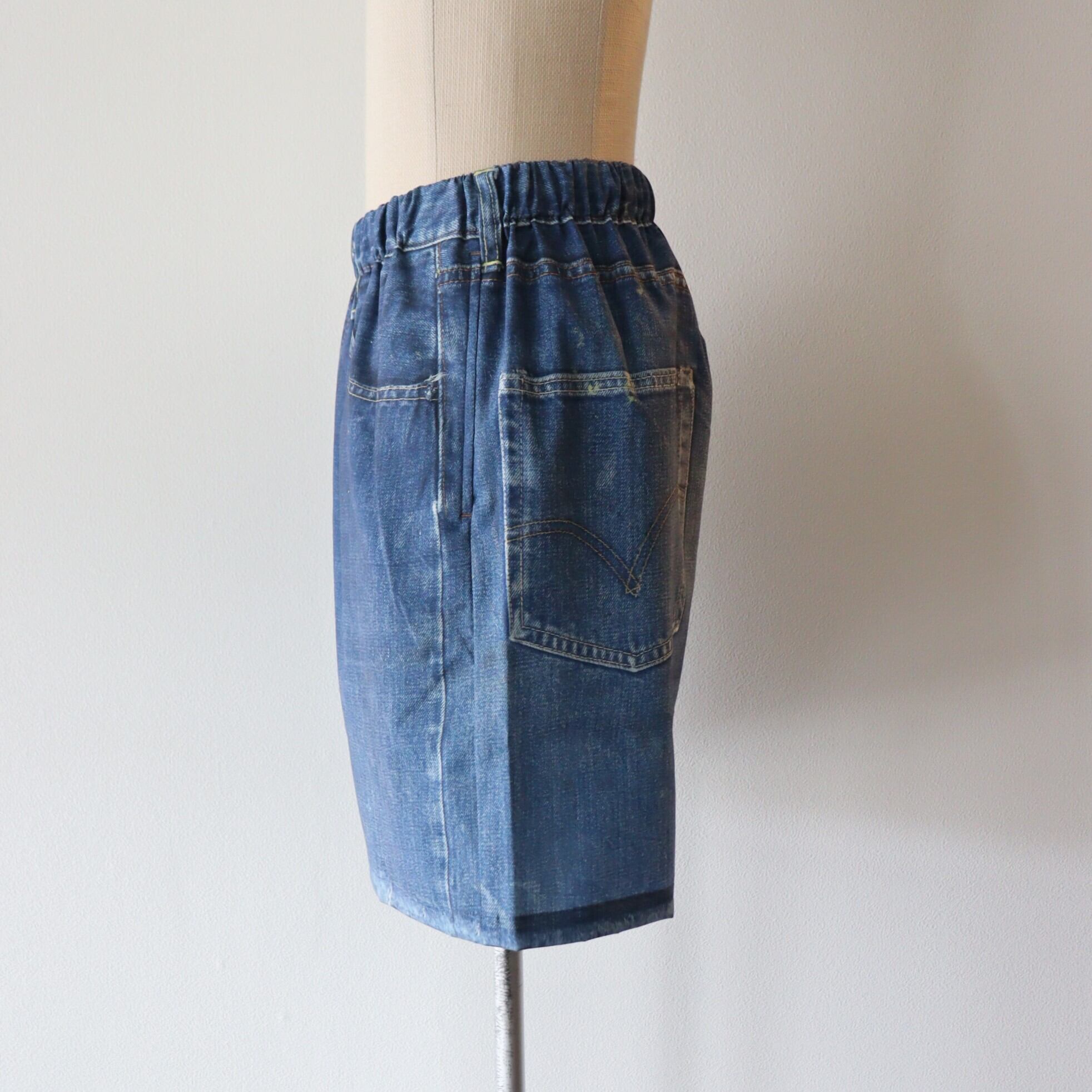 そのデニムショーツを吸水速乾性の特性を備えたpolyester100%の生地にプリントし、内側にも吸水速乾性を備えたメッシュライナーを配し、タウンユースからビーチやプールまで履ける水陸両用ショーツに仕上げております。