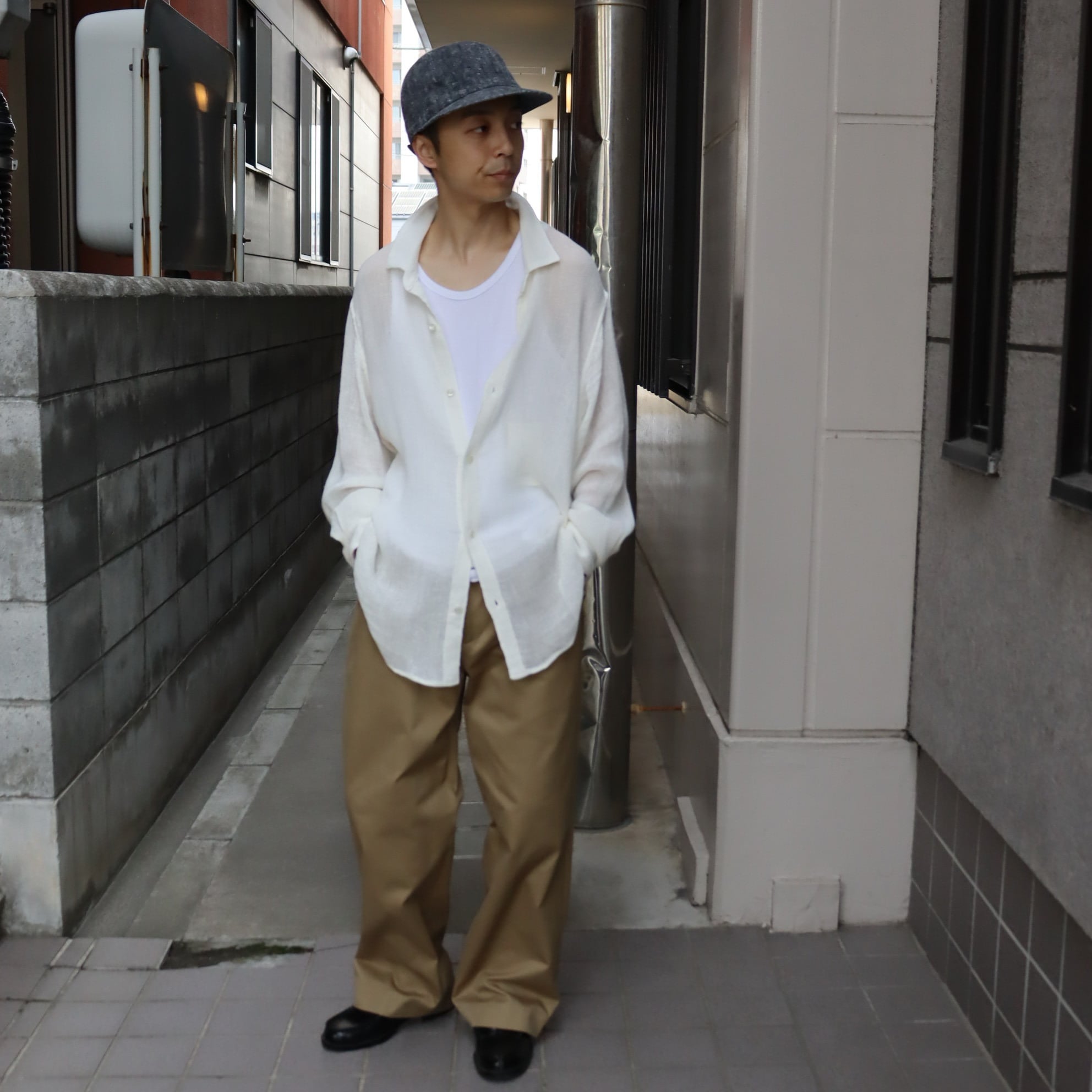 肩幅、身幅共にしっかりとゆとりを持たせたバランスのシャツに落とし込み、二重になる部分や、縫い代、裏始末に至るまで縫製にもこだわり、美しくしっかりと仕立てる事で性差を感じさせない一枚に仕上がっています。