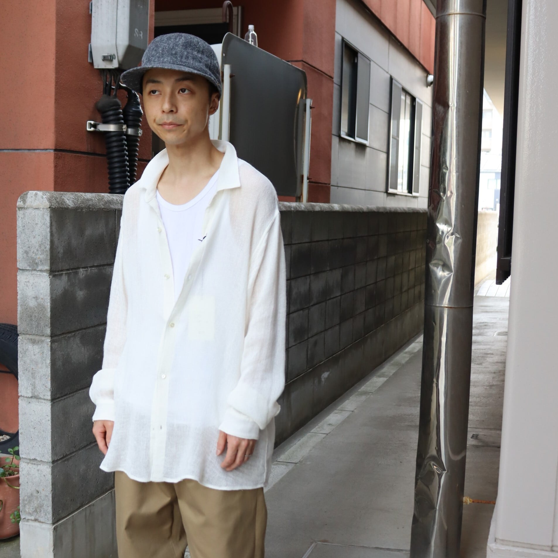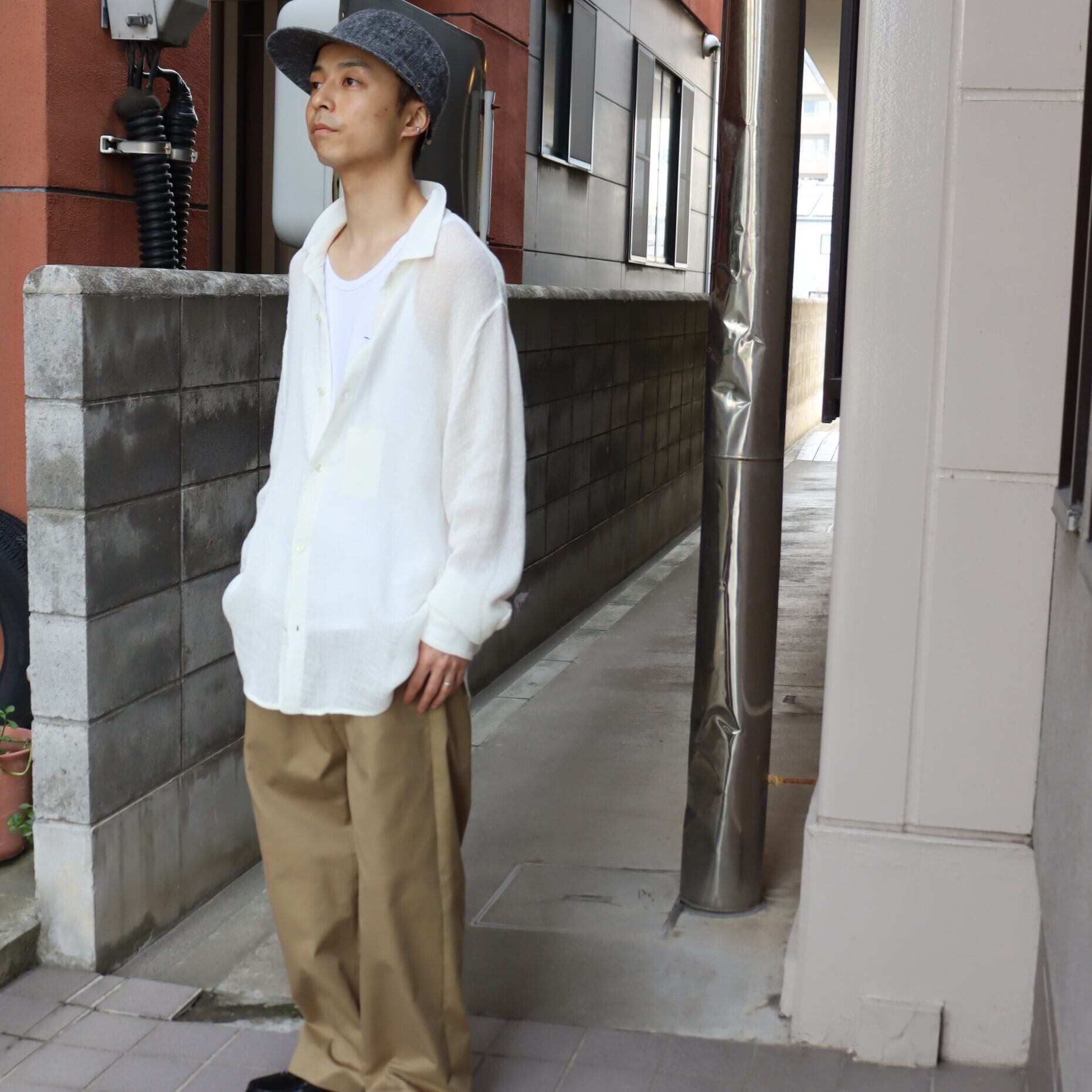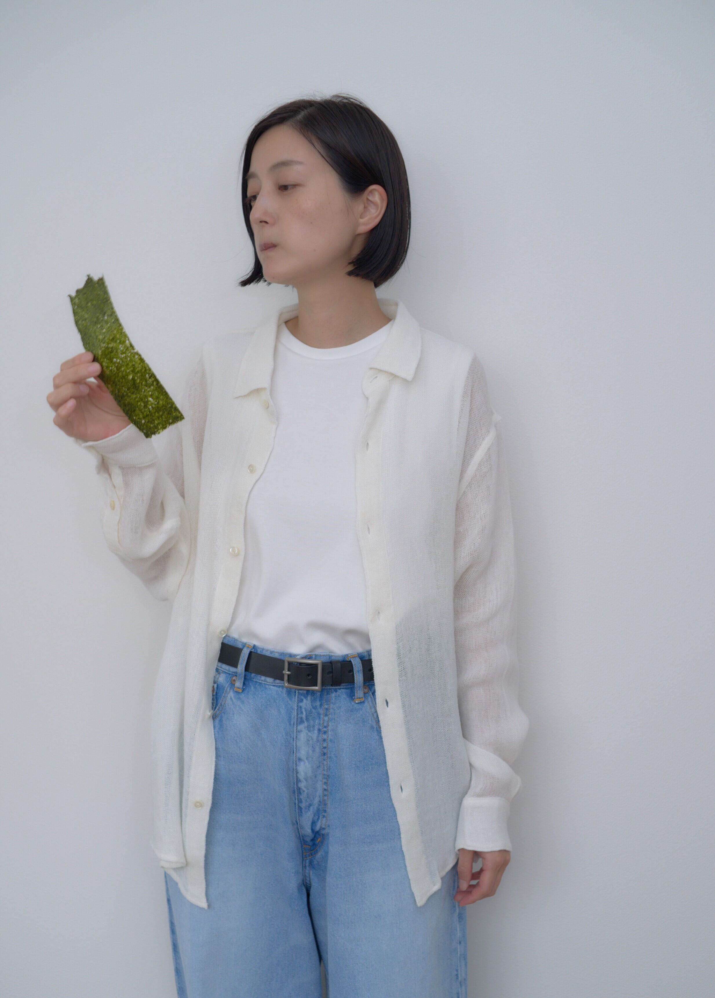 awasa " リネンメッシュ レギュラーカラーシャツ ( off white )"