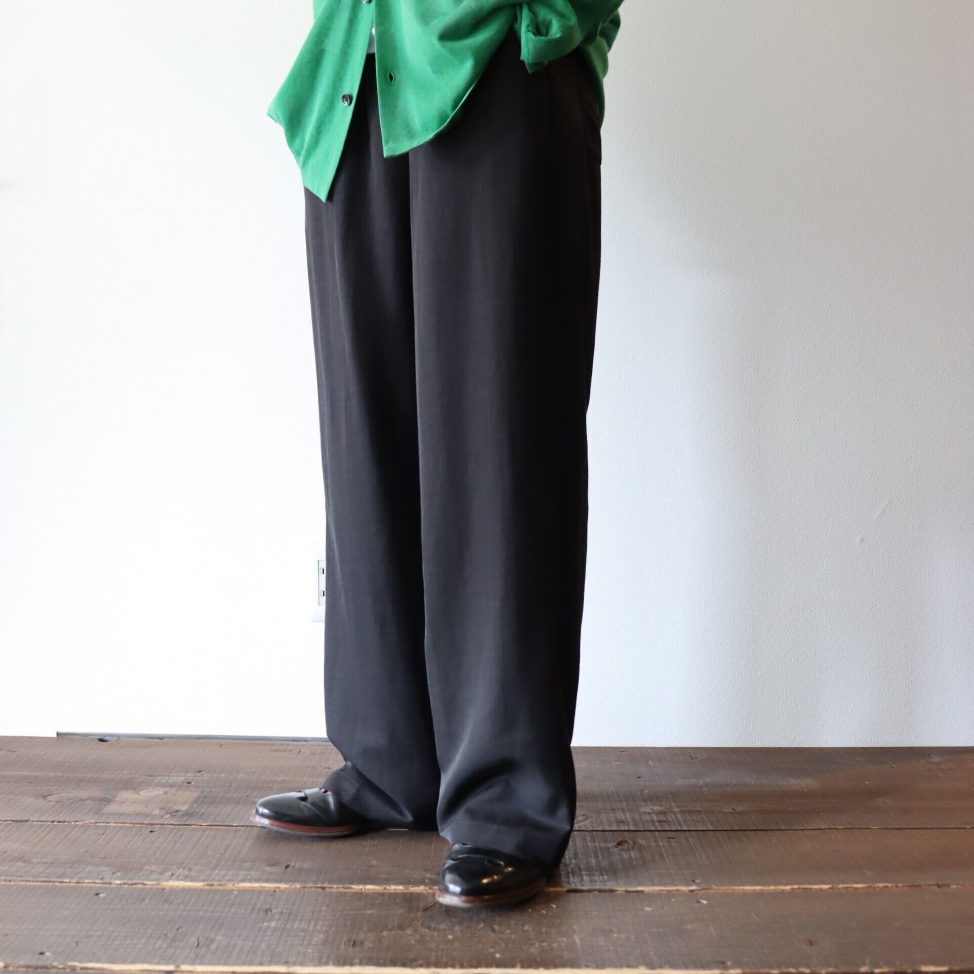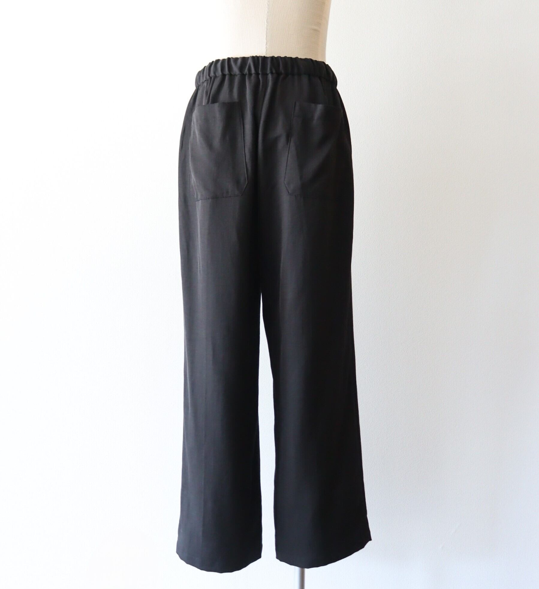 生地の表情にはリネンが感じられ、リヨセルの落ち感が綺麗なイージーパンツ。