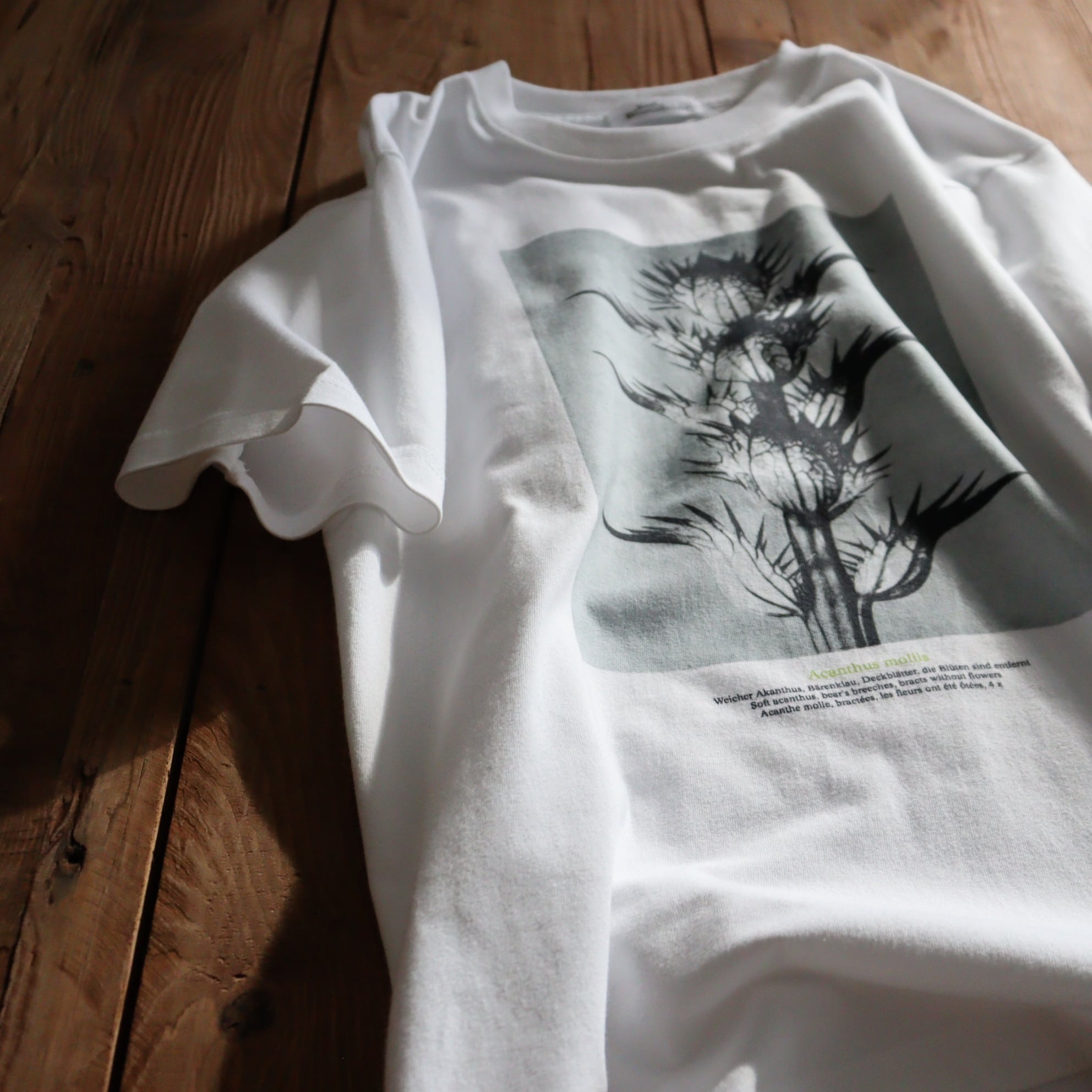 このちらのTシャツは、そんな彼の作品の一つである” Acanthus molis ”をプリントしたものとなる。