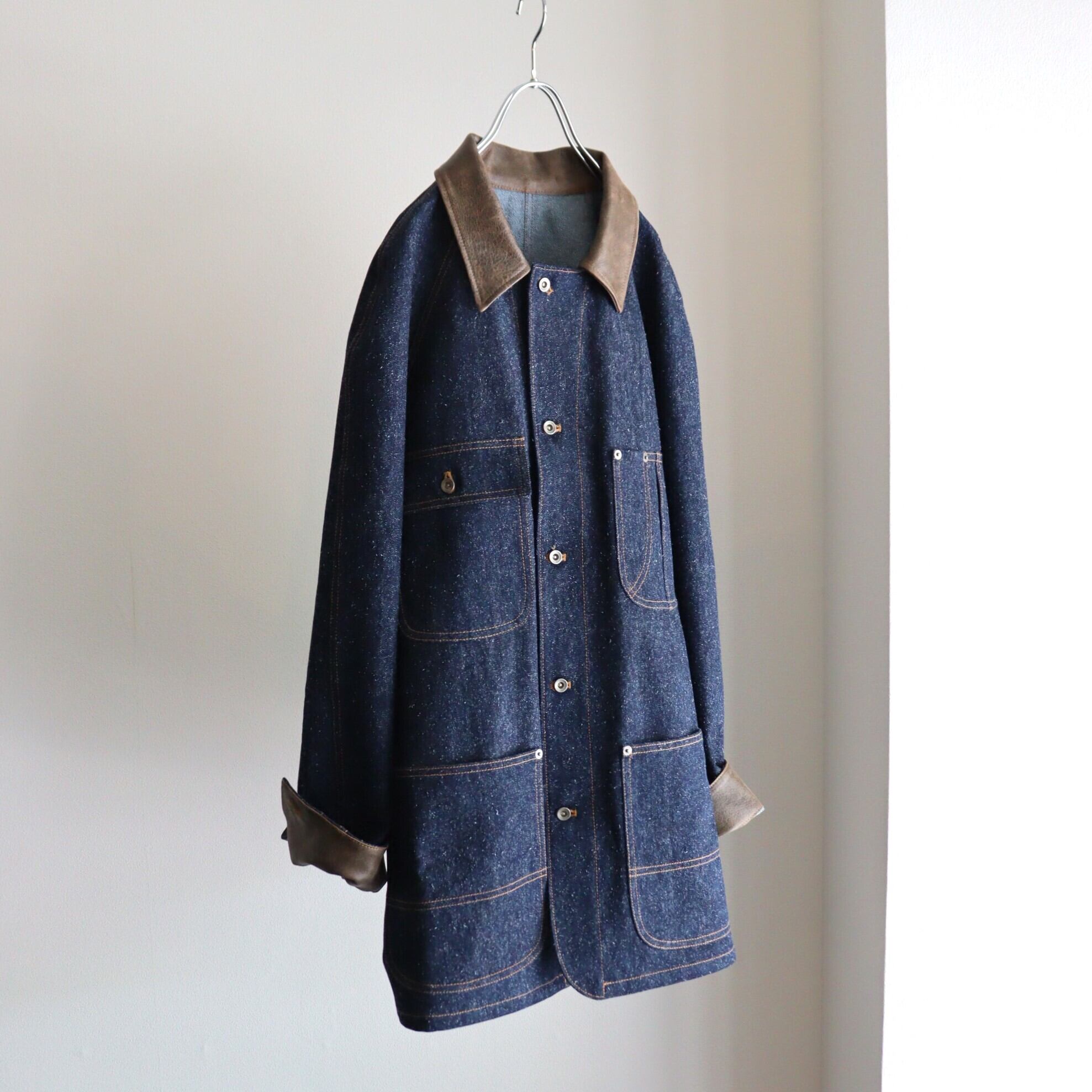 シルクを紡績する際に出てしまうノイルシルクを使用したデニム素材を使用したカバーオール。