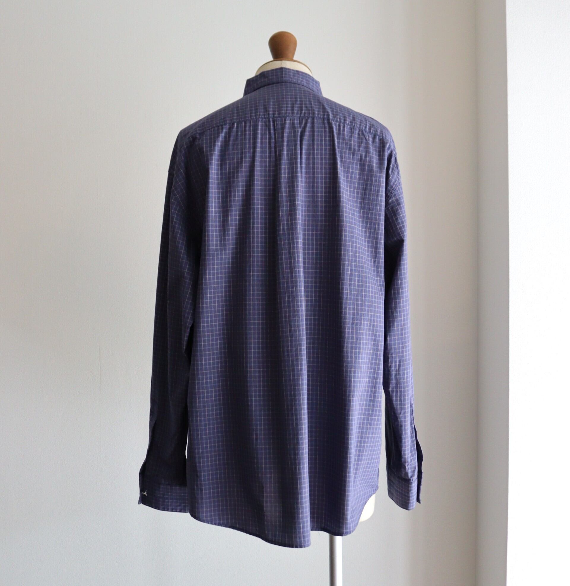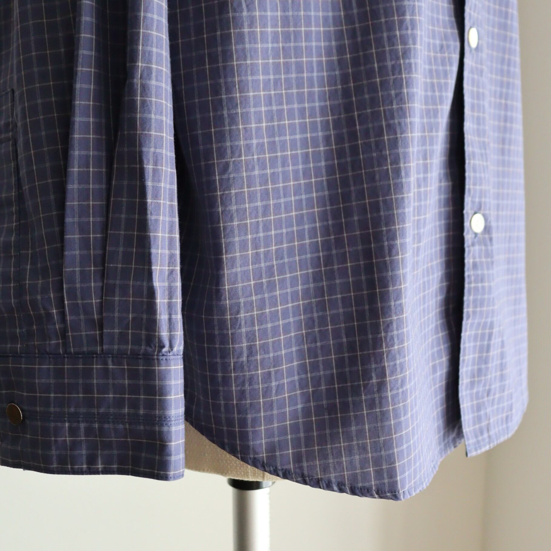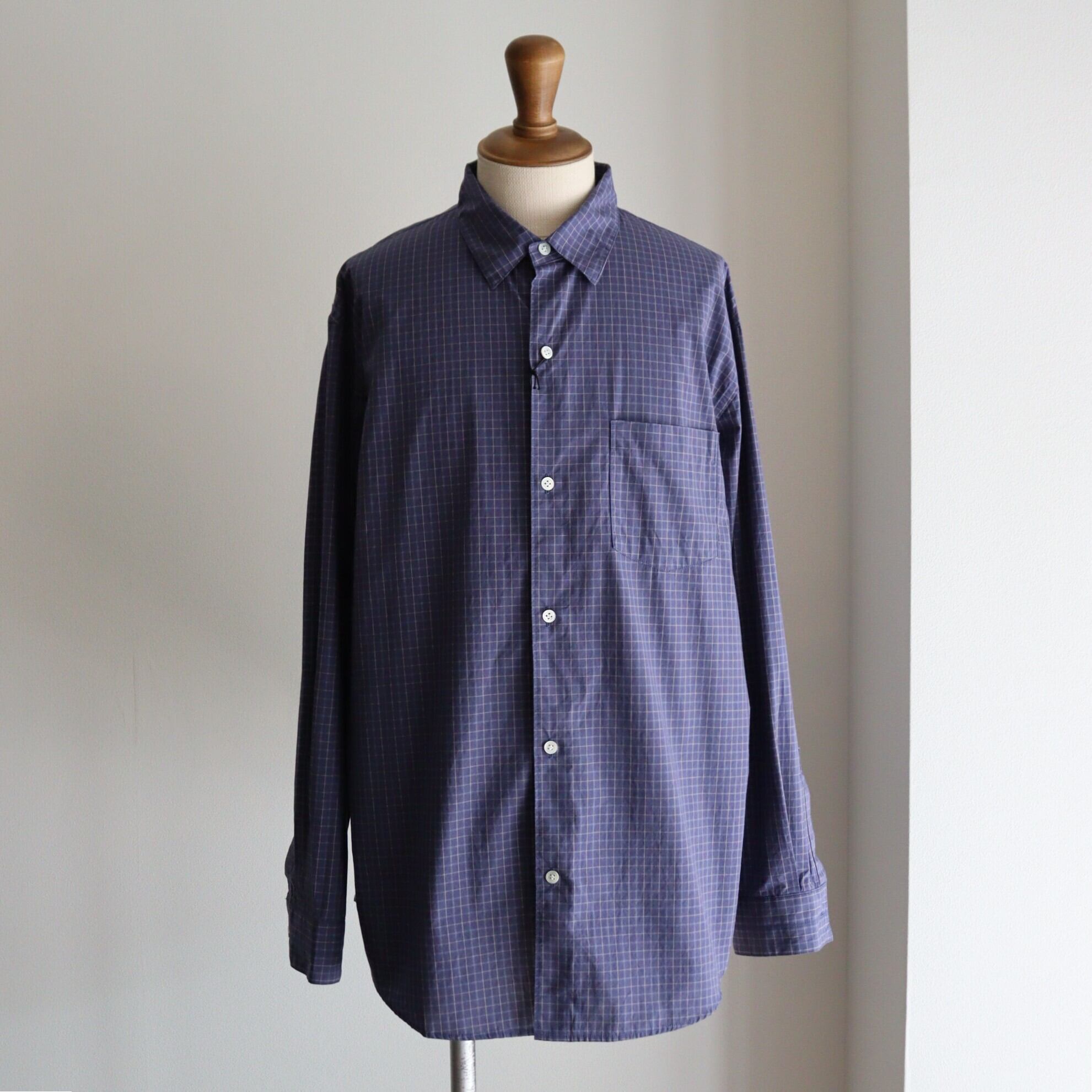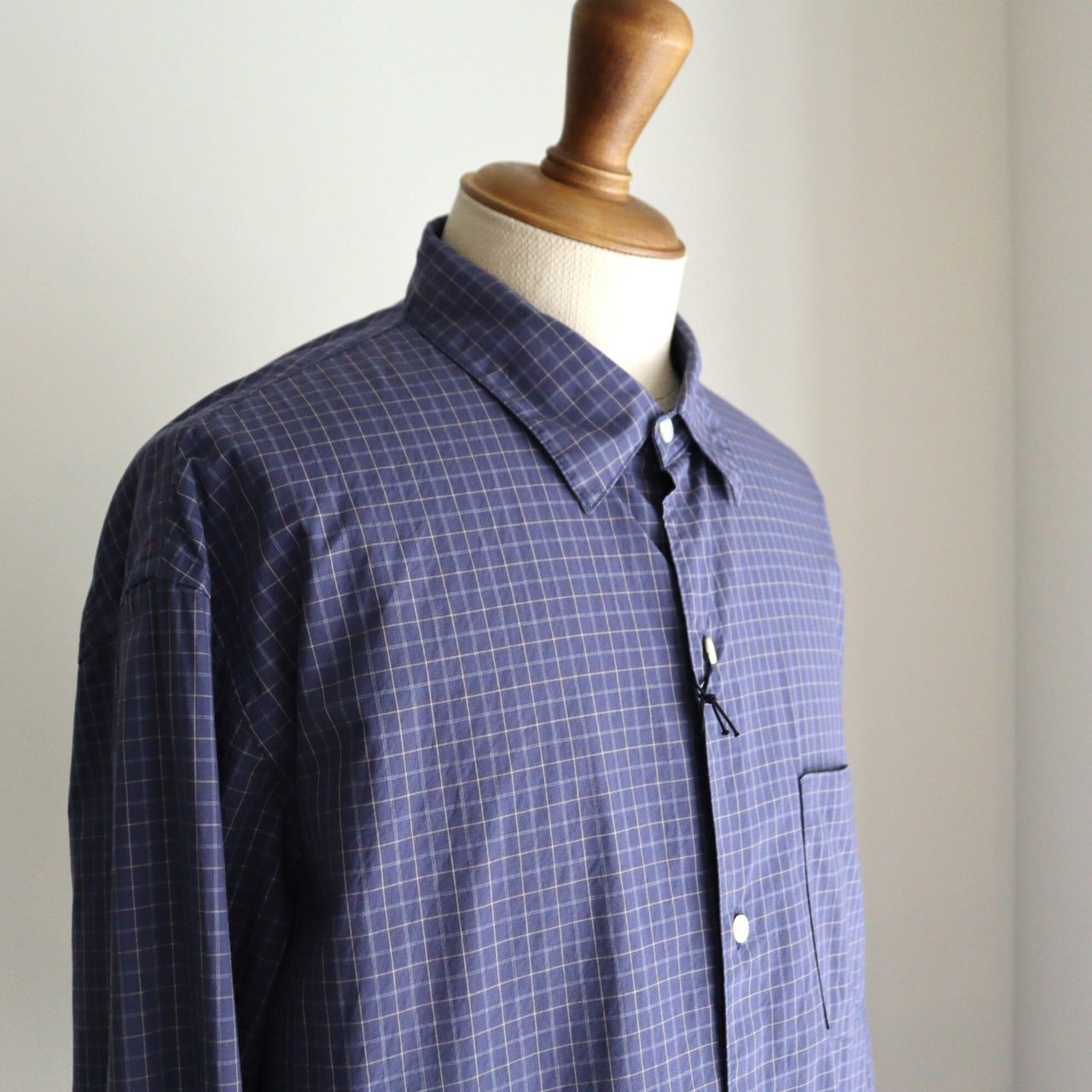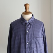 日本でも有数のシャツ生地産地である兵庫県播州地区で製作した、経糸、緯糸ともにオーガニックコットン糸を使用したチェックシャツ。小さいワッシャー機にて2度ほど加工を施しており、凹凸感、小ジワを意図的に入れています。