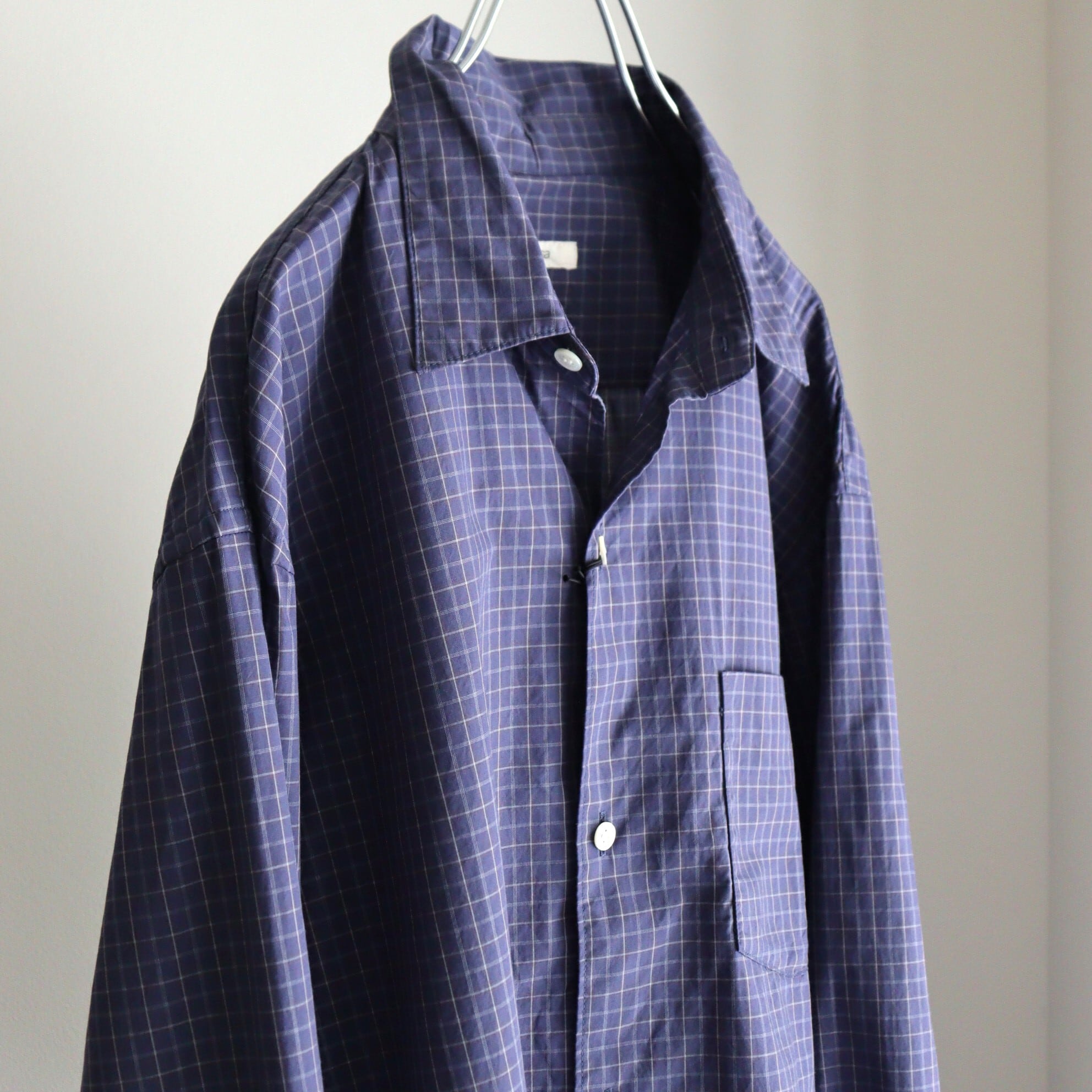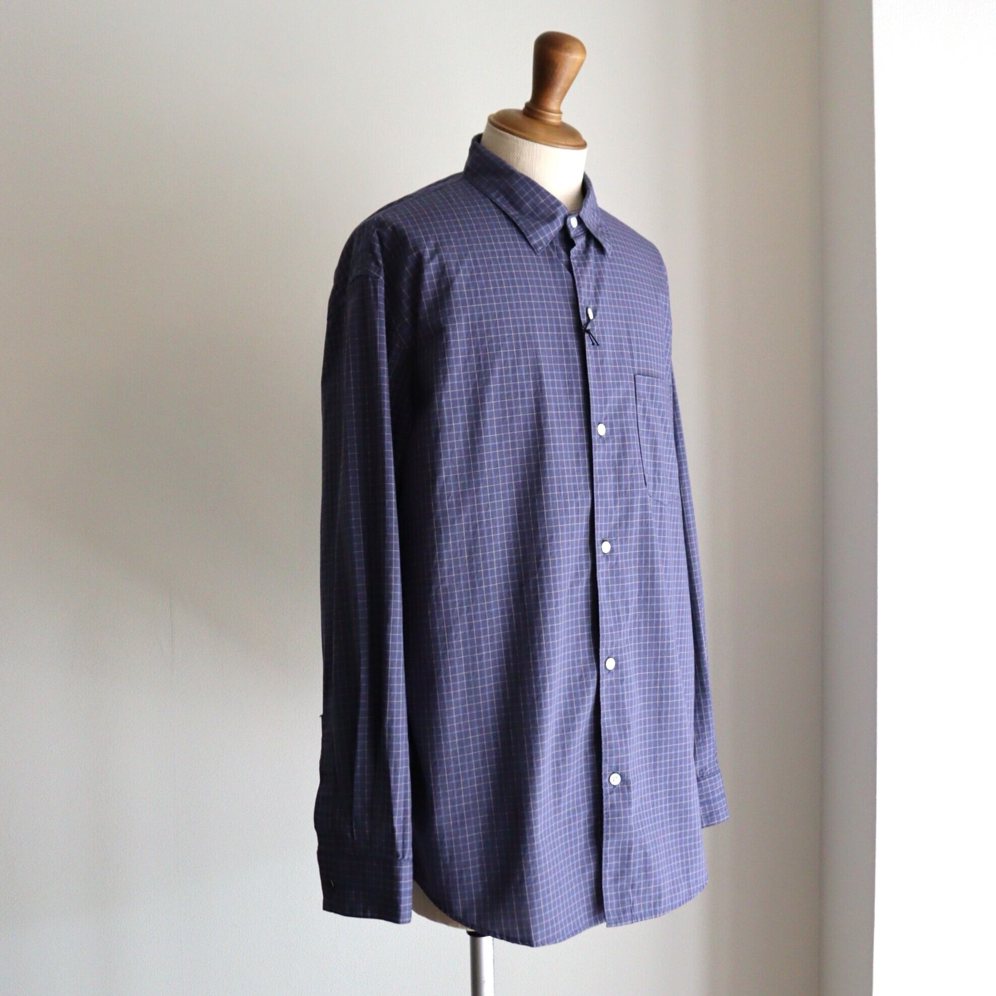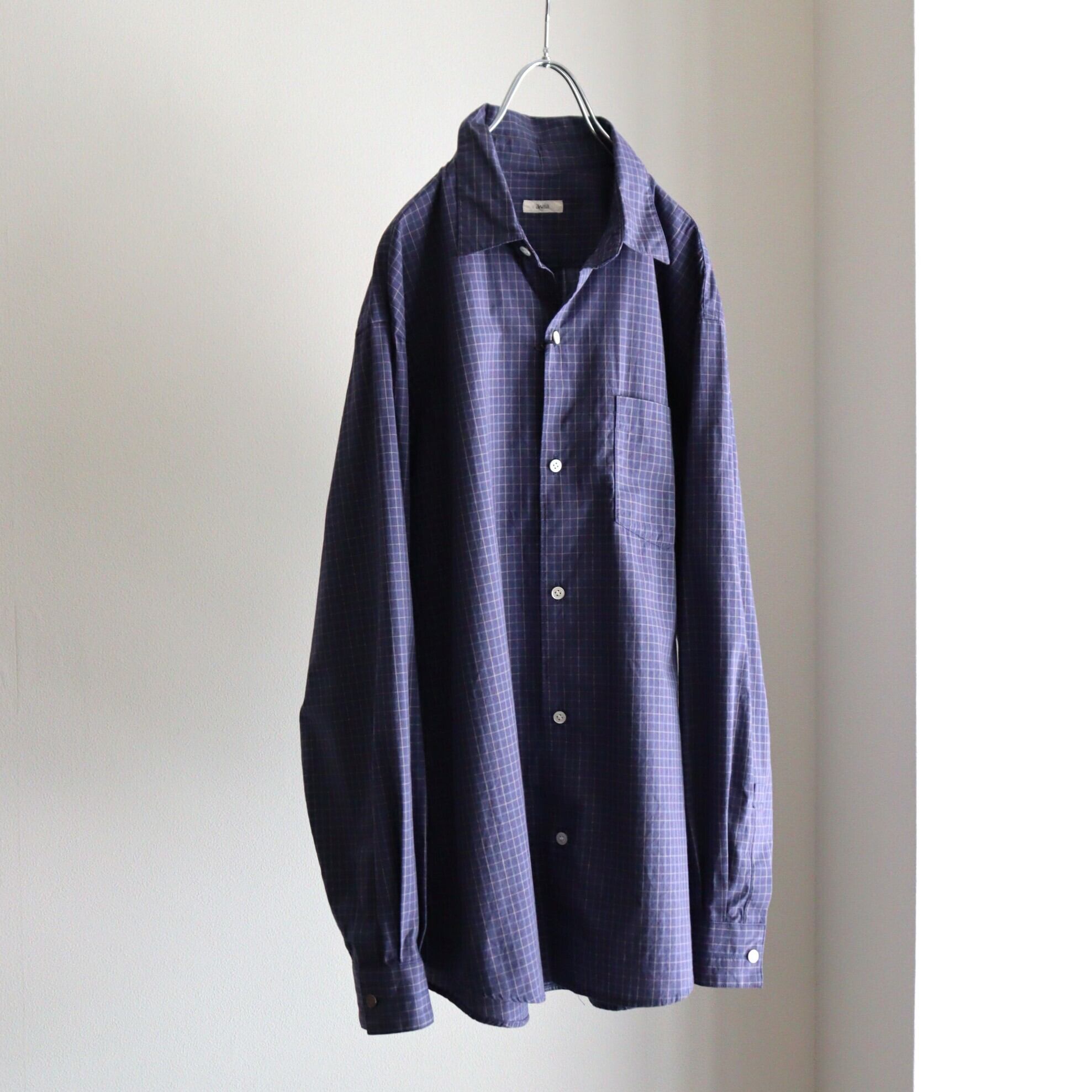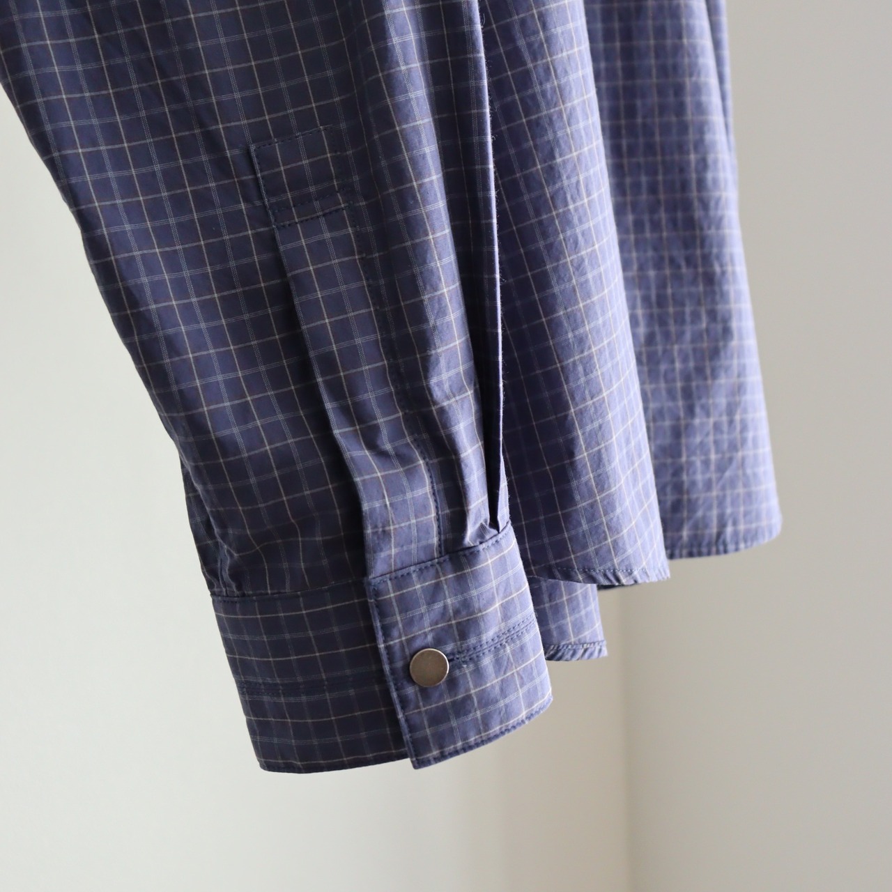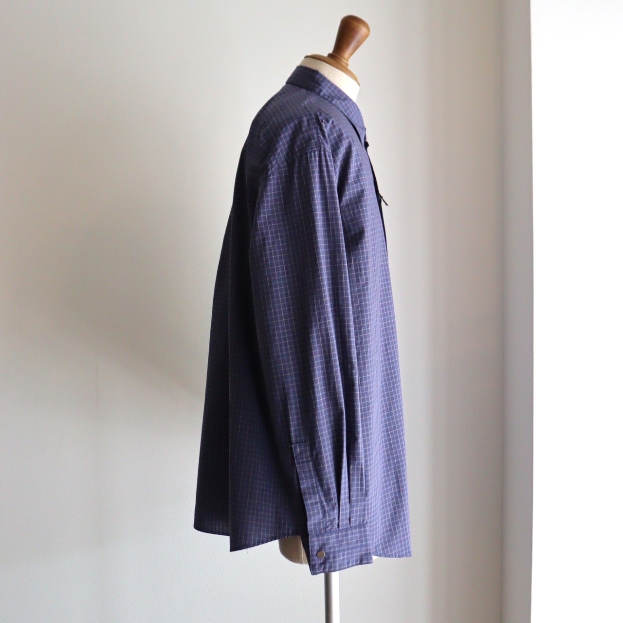 日本でも有数のシャツ生地産地である兵庫県播州地区で製作した、経糸、緯糸ともにオーガニックコットン糸を使用したチェックシャツ。小さいワッシャー機にて2度ほど加工を施しており、凹凸感、小ジワを意図的に入れています。