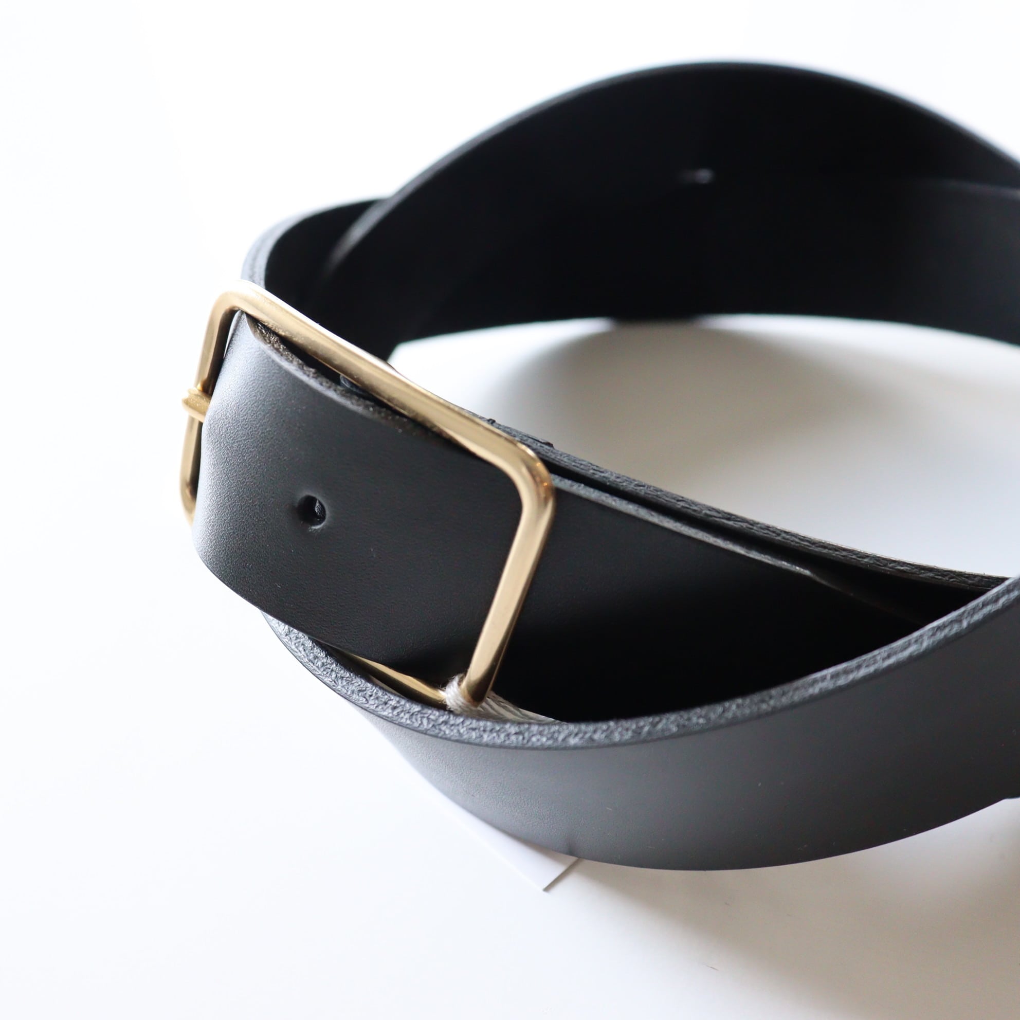 黒の革にゴールドのブラスのbuckleがシンプルかつ上品に雰囲気を醸し出してくれています。