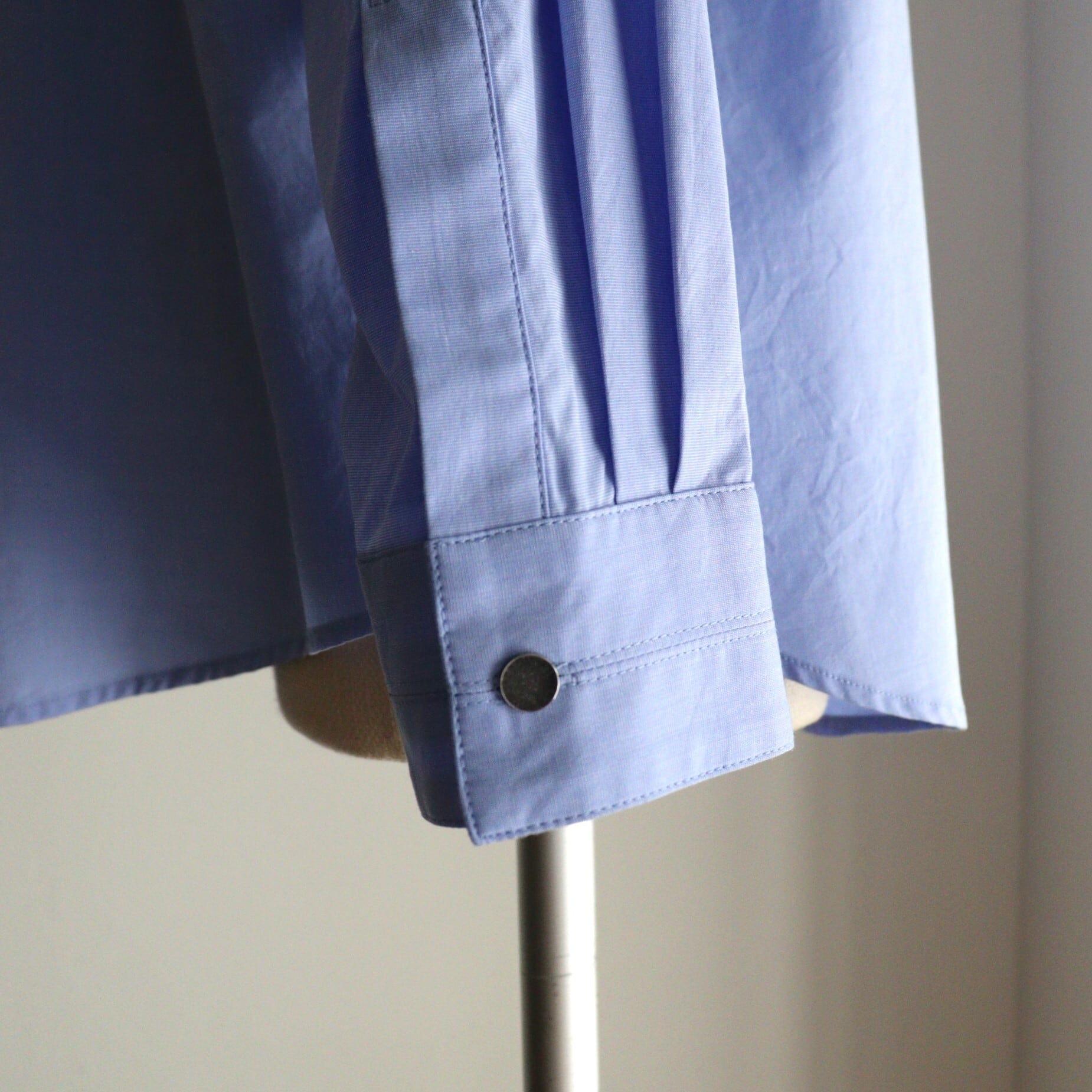 日本でも有数のシャツ生地産地である兵庫県播州地区で製作した、経糸、緯糸ともに100/2綿のはけ目です。経糸には軽く、細くても強い糸を作る技術を用いており、シーズンを通して快適に着ていただける素材です。