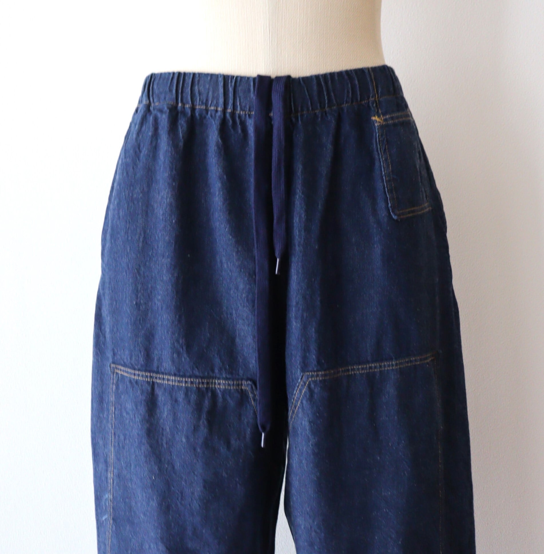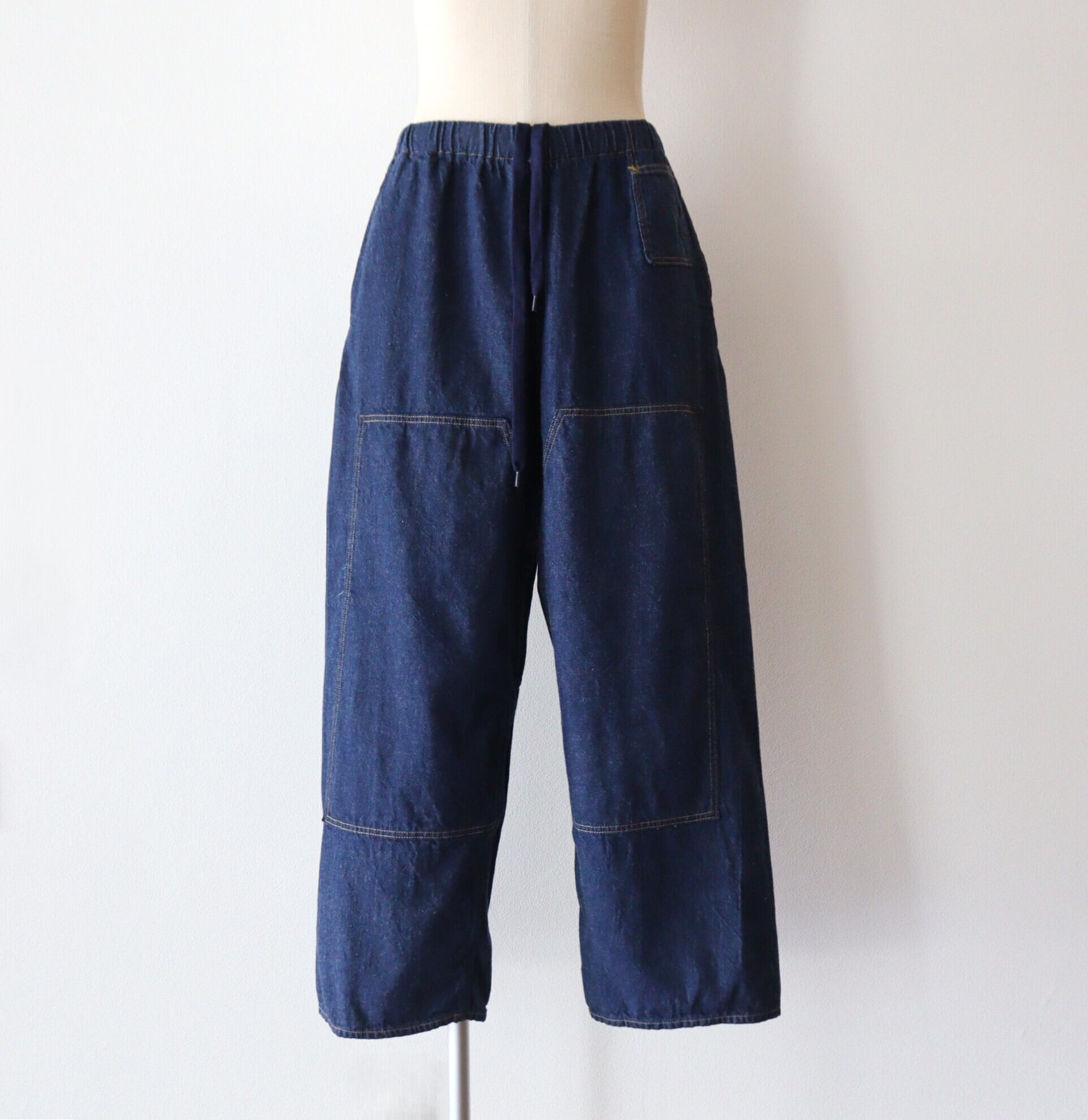 岡山の老舗デニム工場にて8ozの生機デニムを使用したダブルニーイージーパンツ。