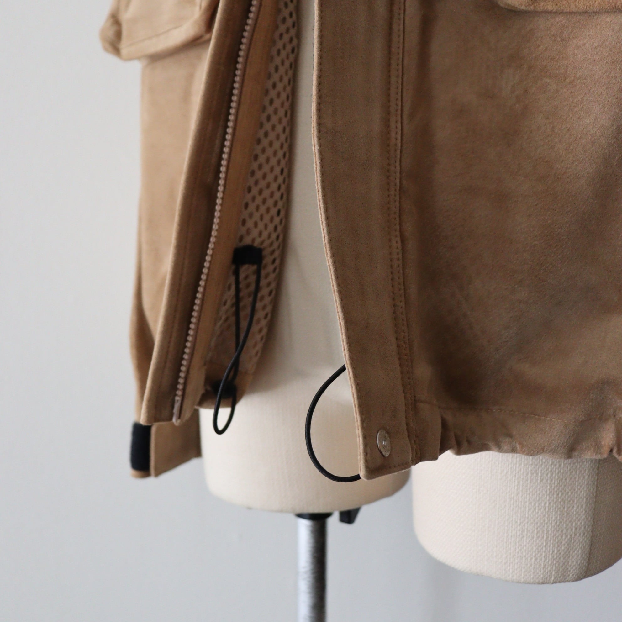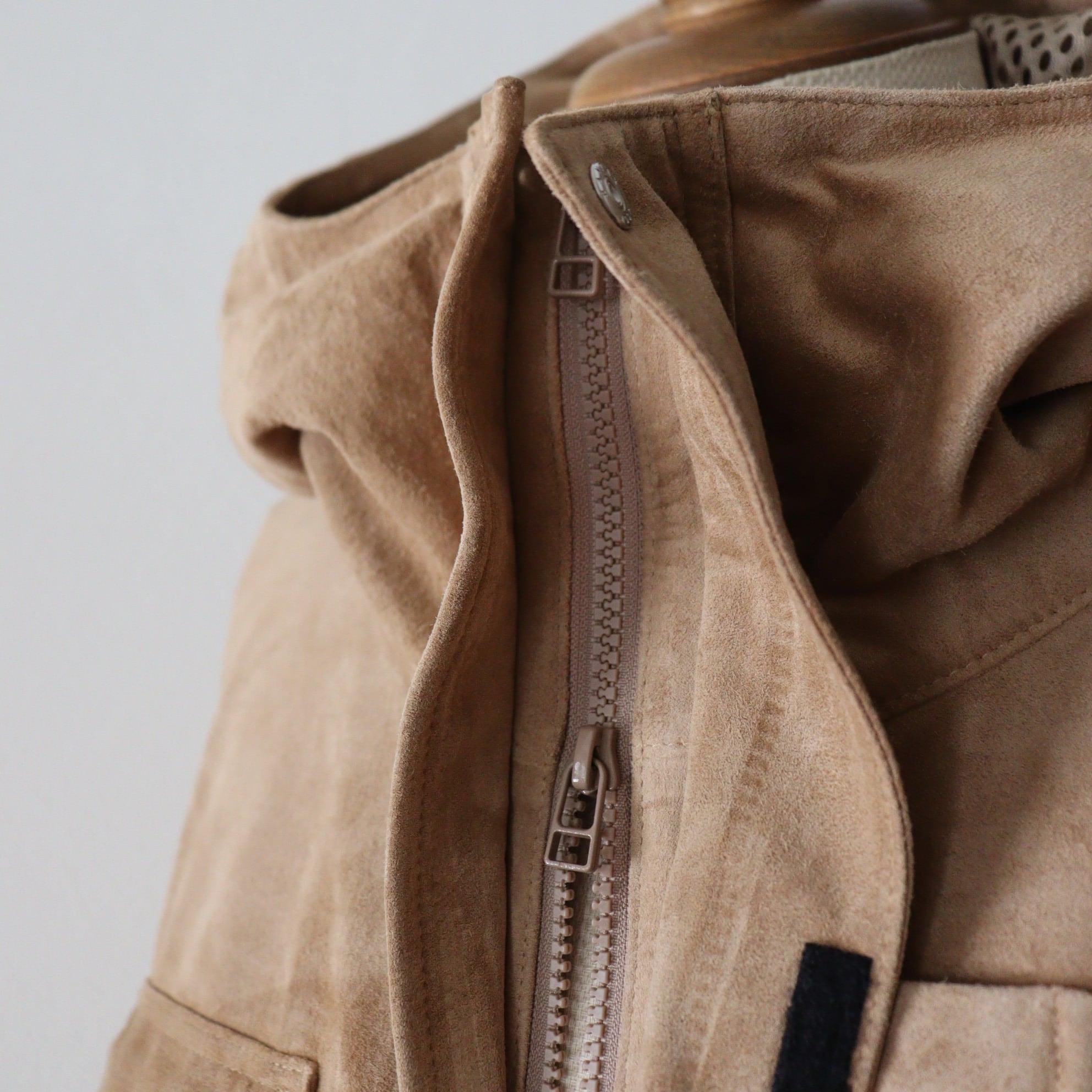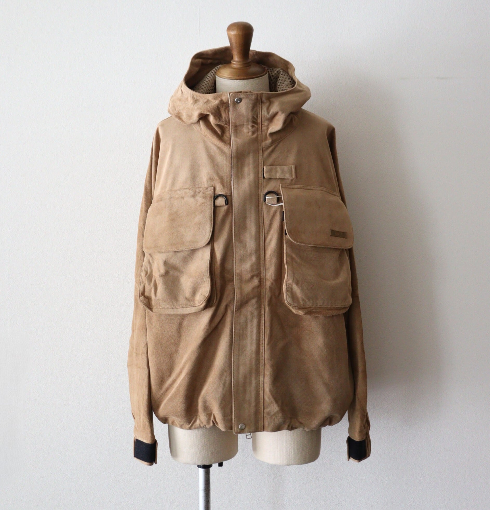 ⾷⾁⽤の副産物として得られるピッグスウェードを使⽤したFISHING JACKET。