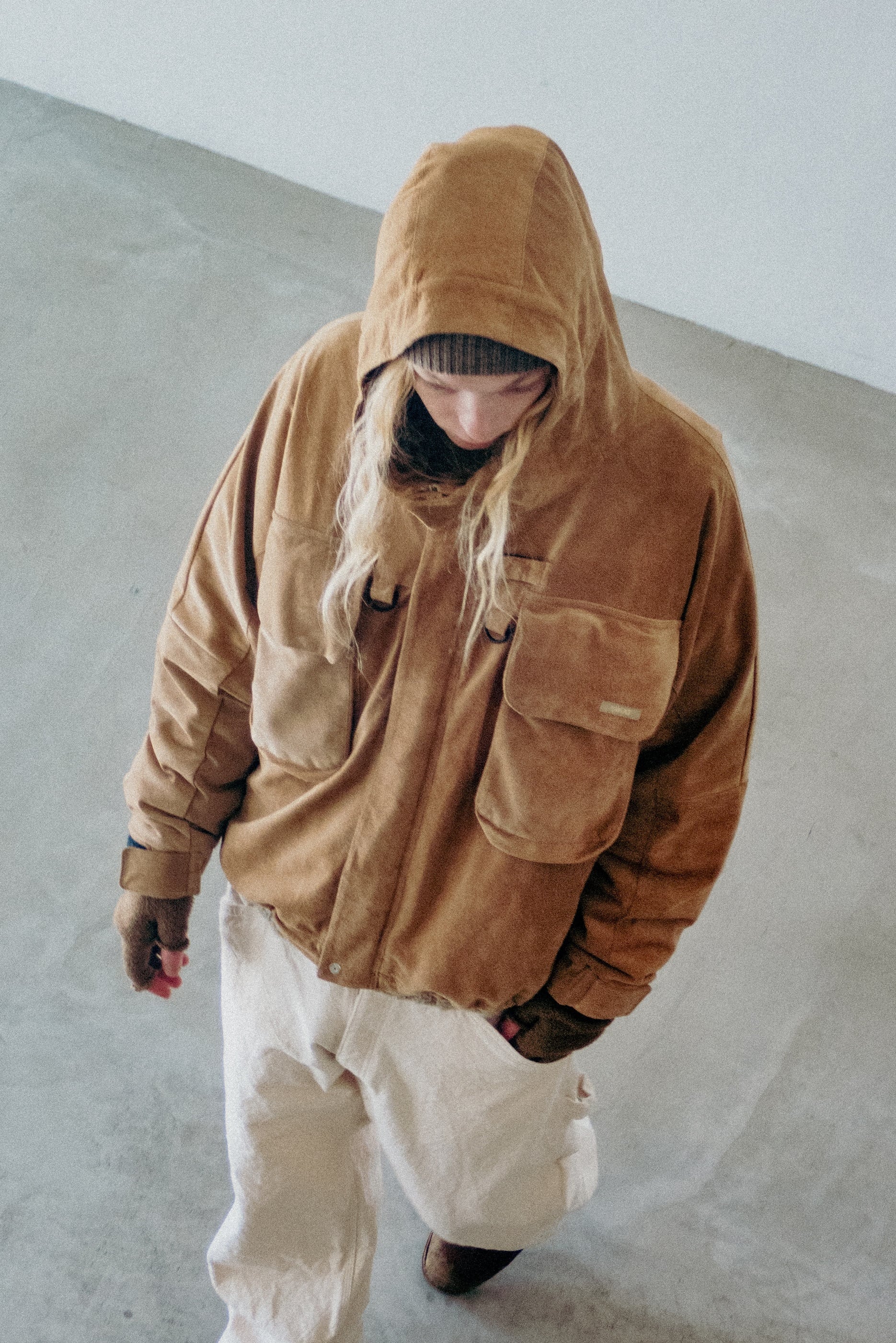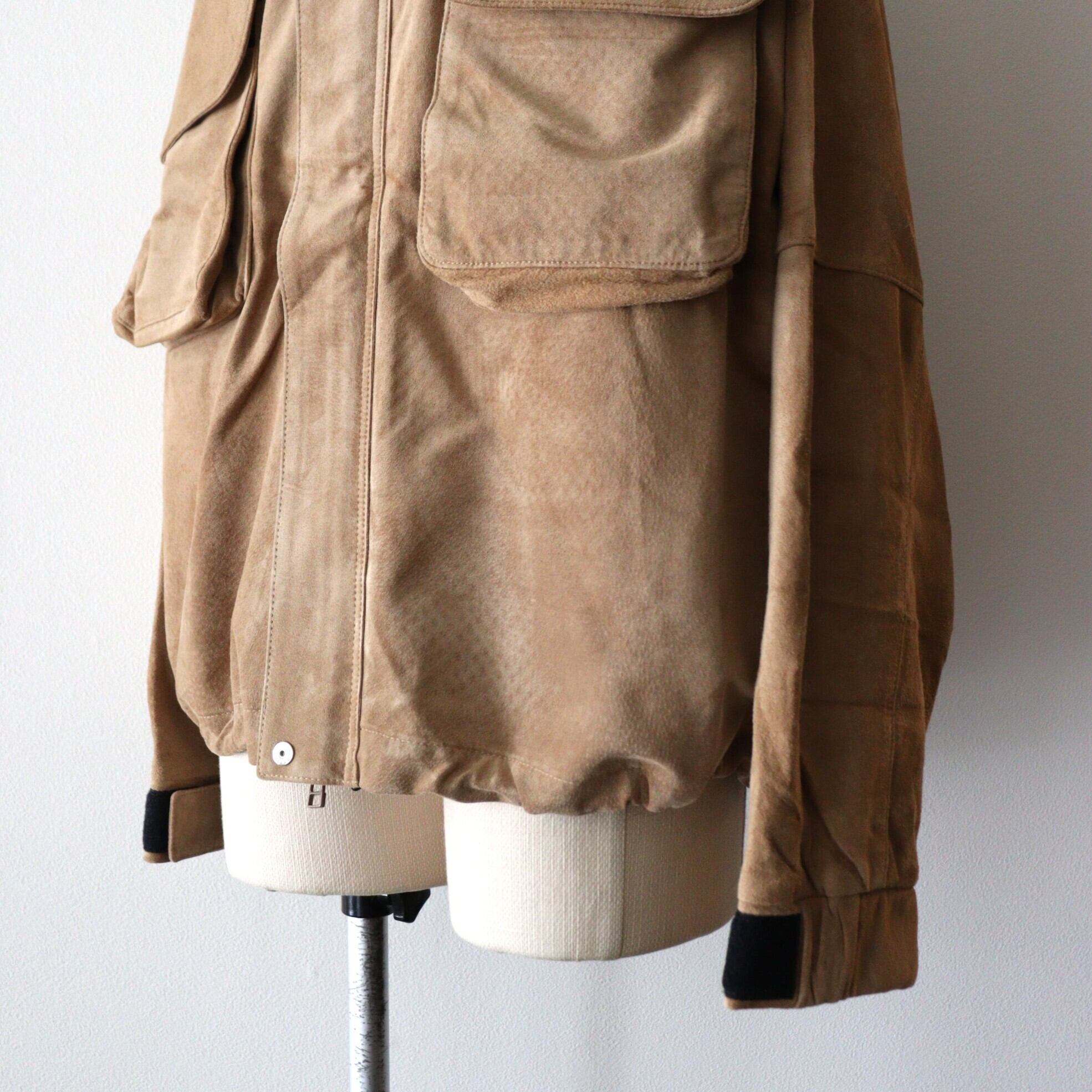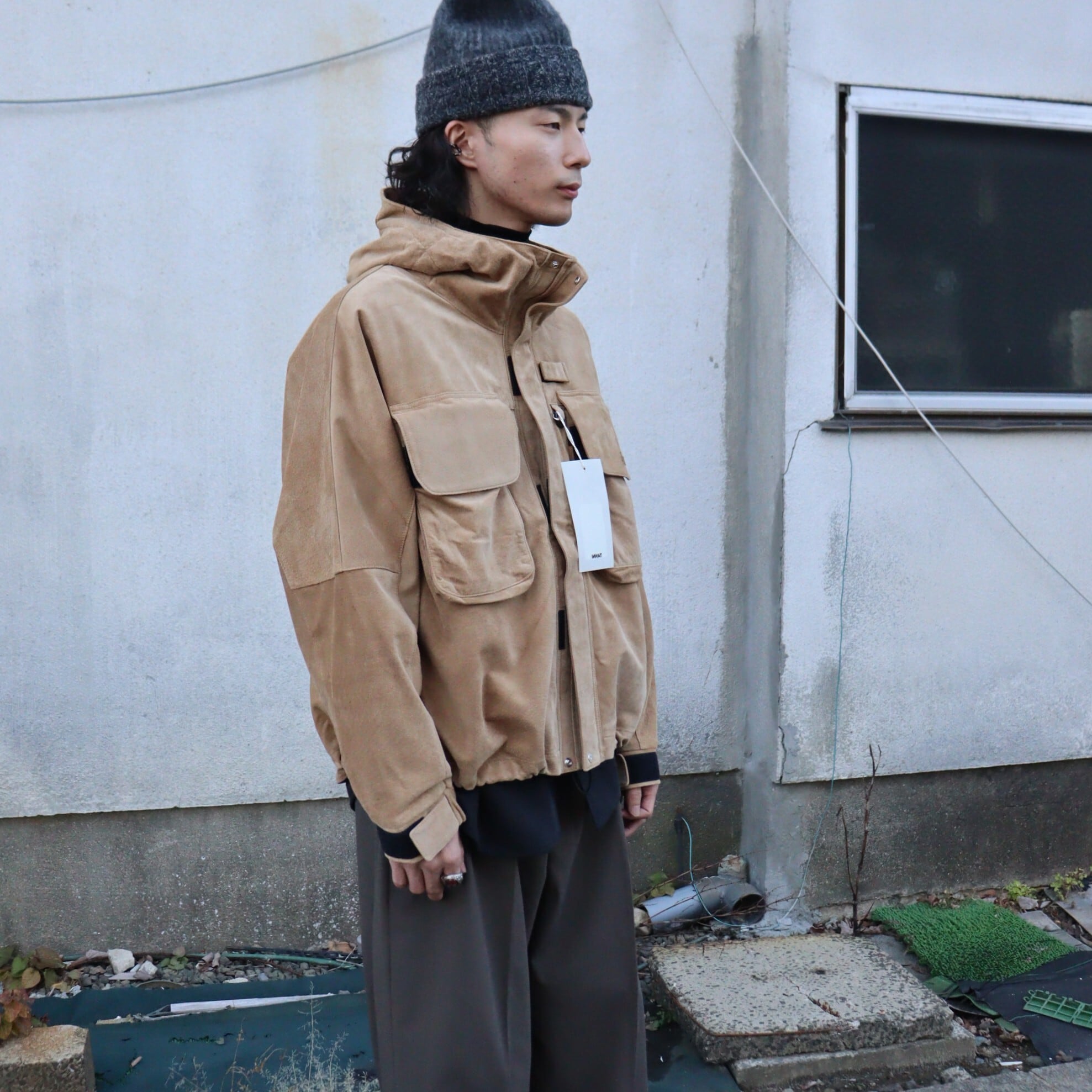 ⾷⾁⽤の副産物として得られるピッグスウェードを使⽤したFISHING JACKET。