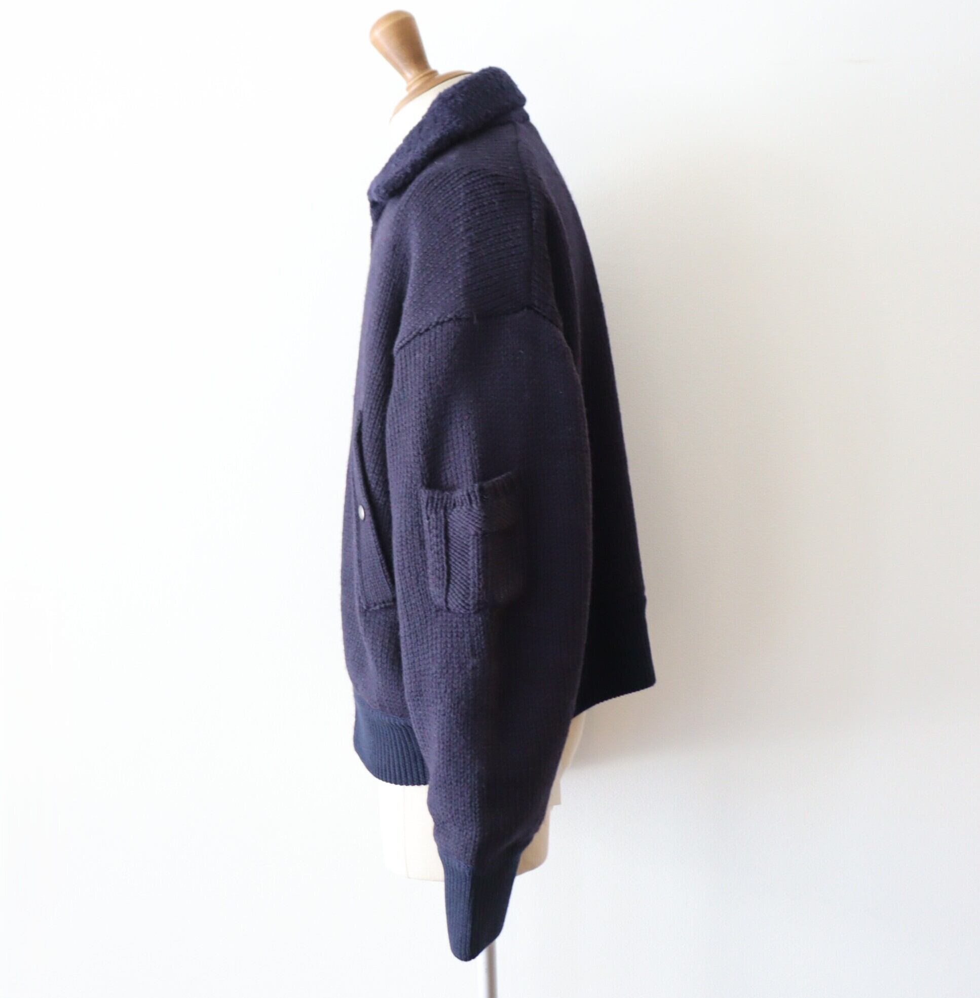 KNIT MA-1シリーズの第二弾、 B-15型になります。表も裏も、衿も全てニットで編み立てており、工場の技術とデザイナーの思いを結集して作り上げました。