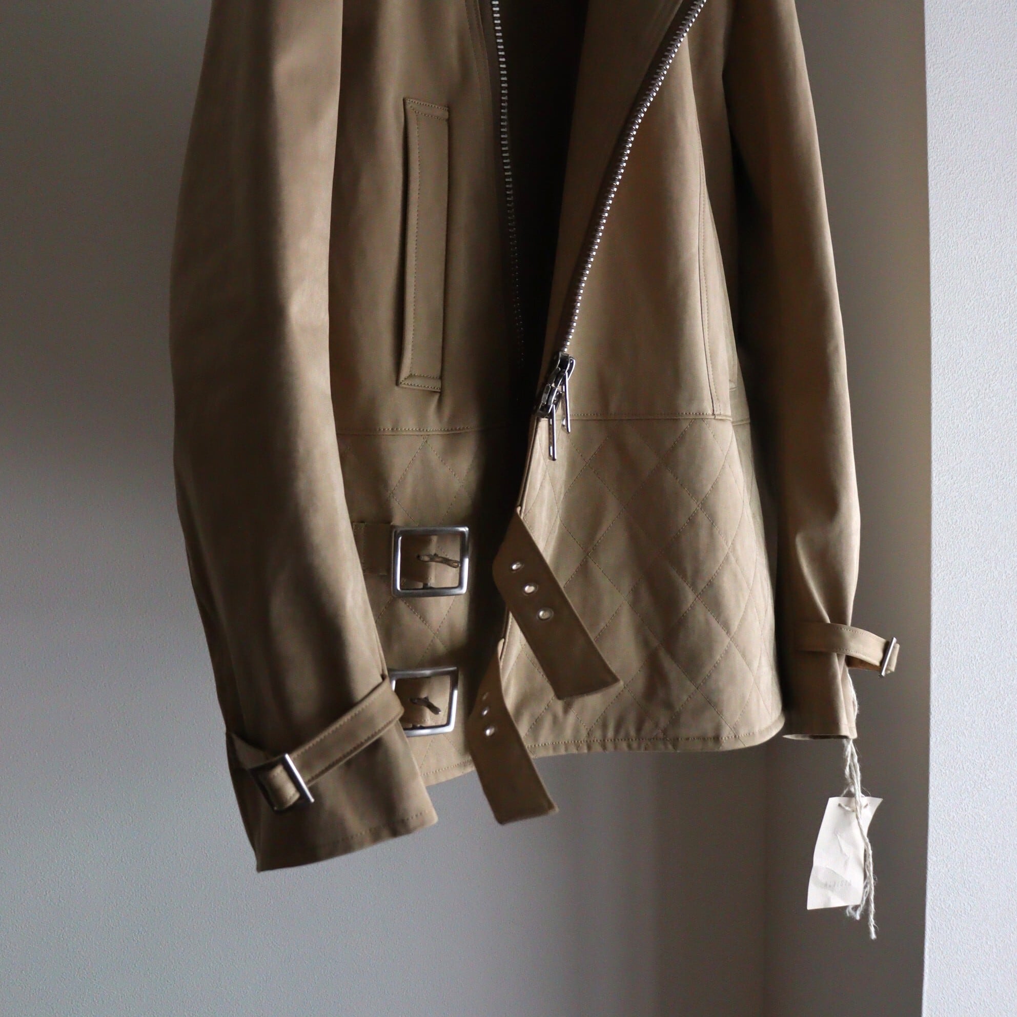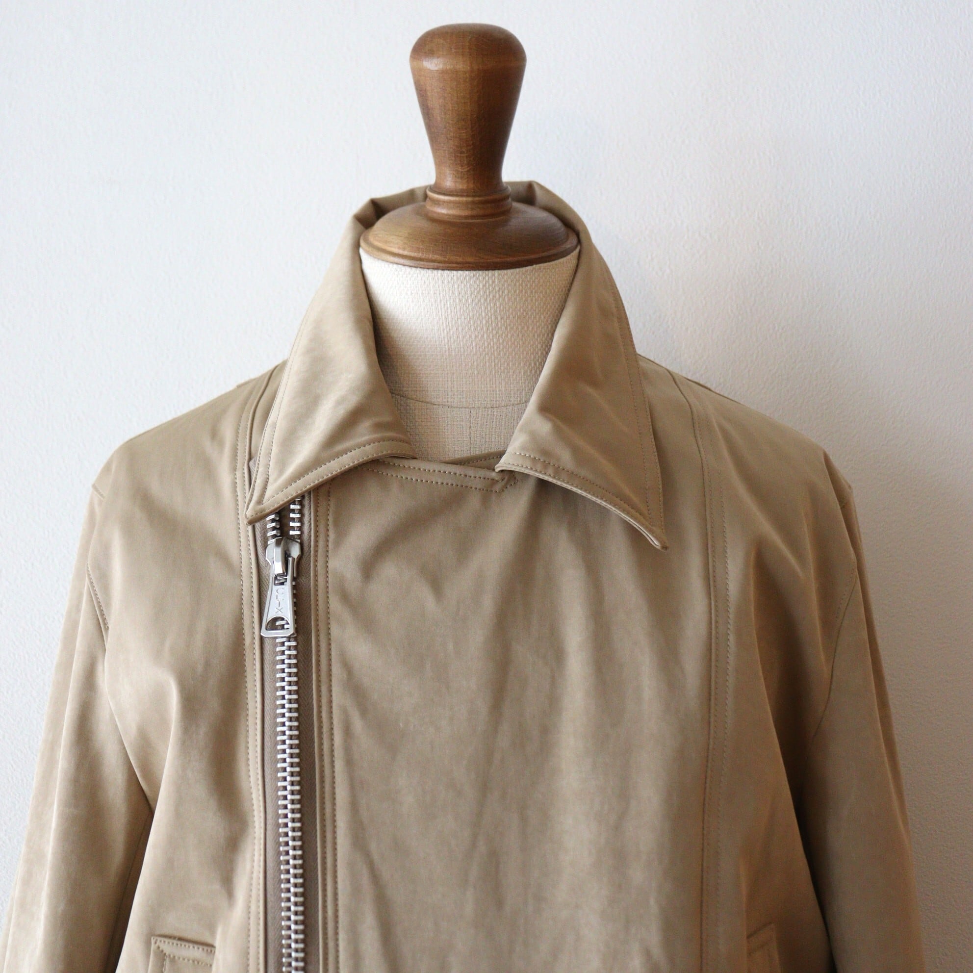 各所ディティールを微調整し、現代に多いオーバーサイズへの落とし込みでは無く、タイト過ぎず各部に適度なゆとりを持たせ、ベストだと思えるサイジングに徹底的に拘り、ハード目な印象やユース感が出過ぎてしまうことの多いライダースモチーフを、どこかエレガントさをも感じる様に仕上げています。