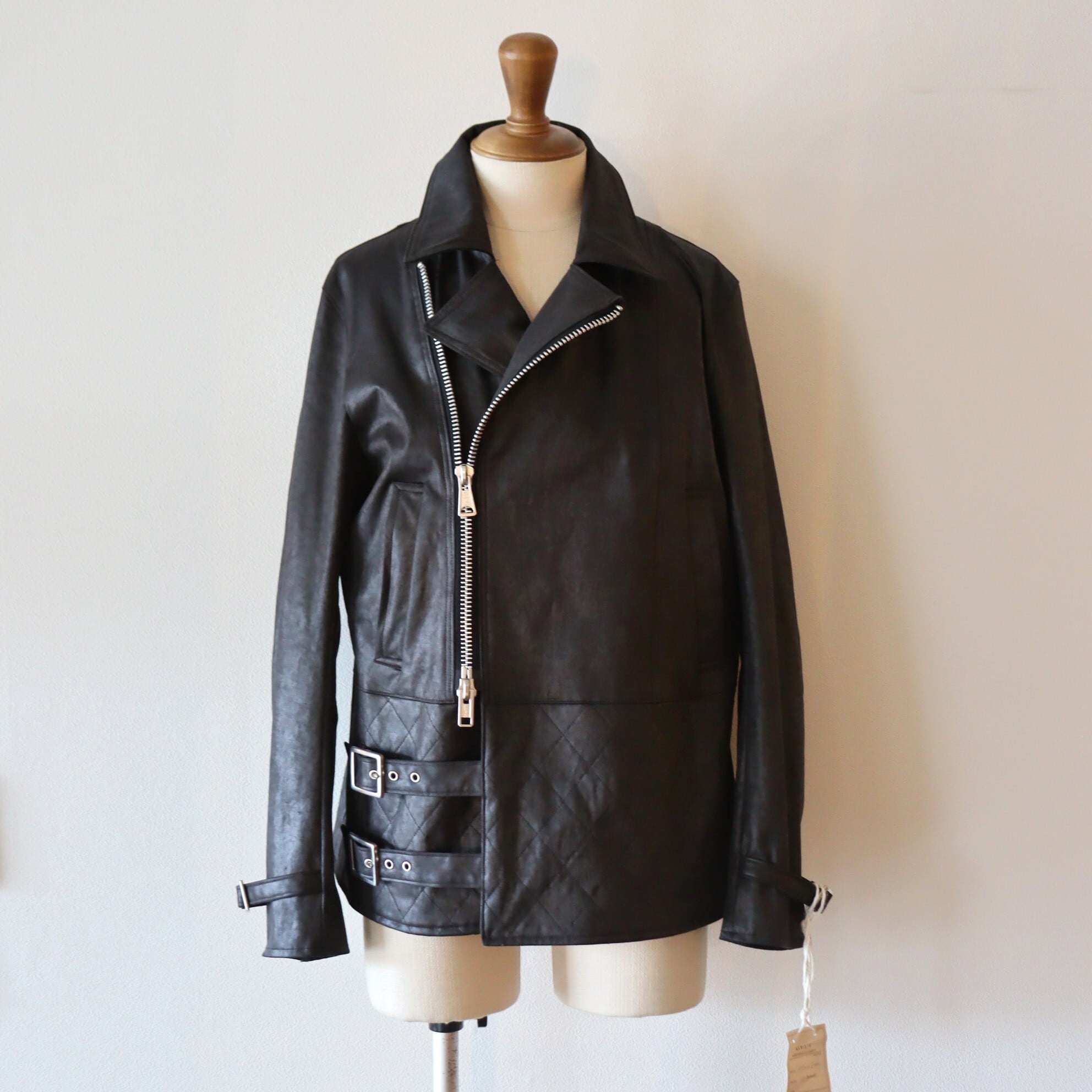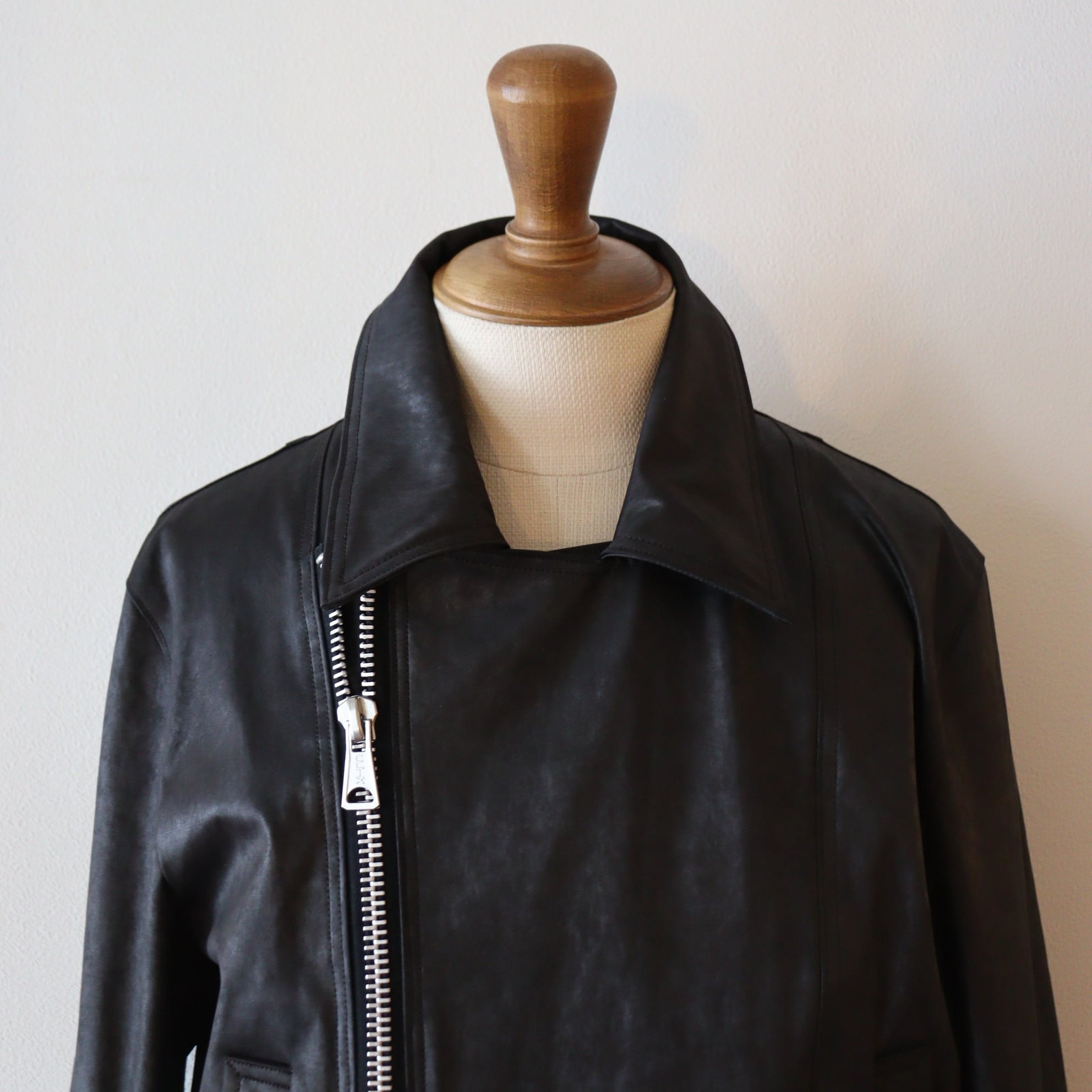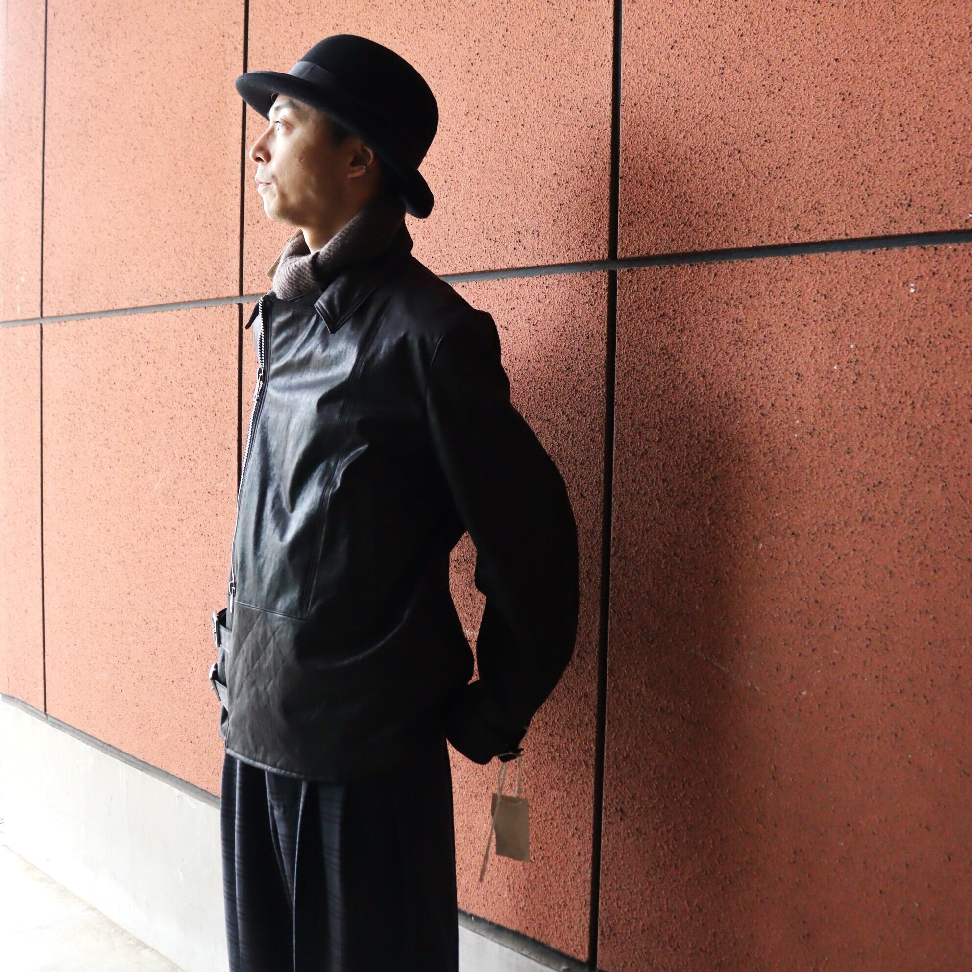各所ディティールを微調整し、現代に多いオーバーサイズへの落とし込みでは無く、タイト過ぎず各部に適度なゆとりを持たせ、ベストだと思えるサイジングに徹底的に拘り、ハード目な印象やユース感が出過ぎてしまうことの多いライダースモチーフを、どこかエレガントさをも感じる様に仕上げています。