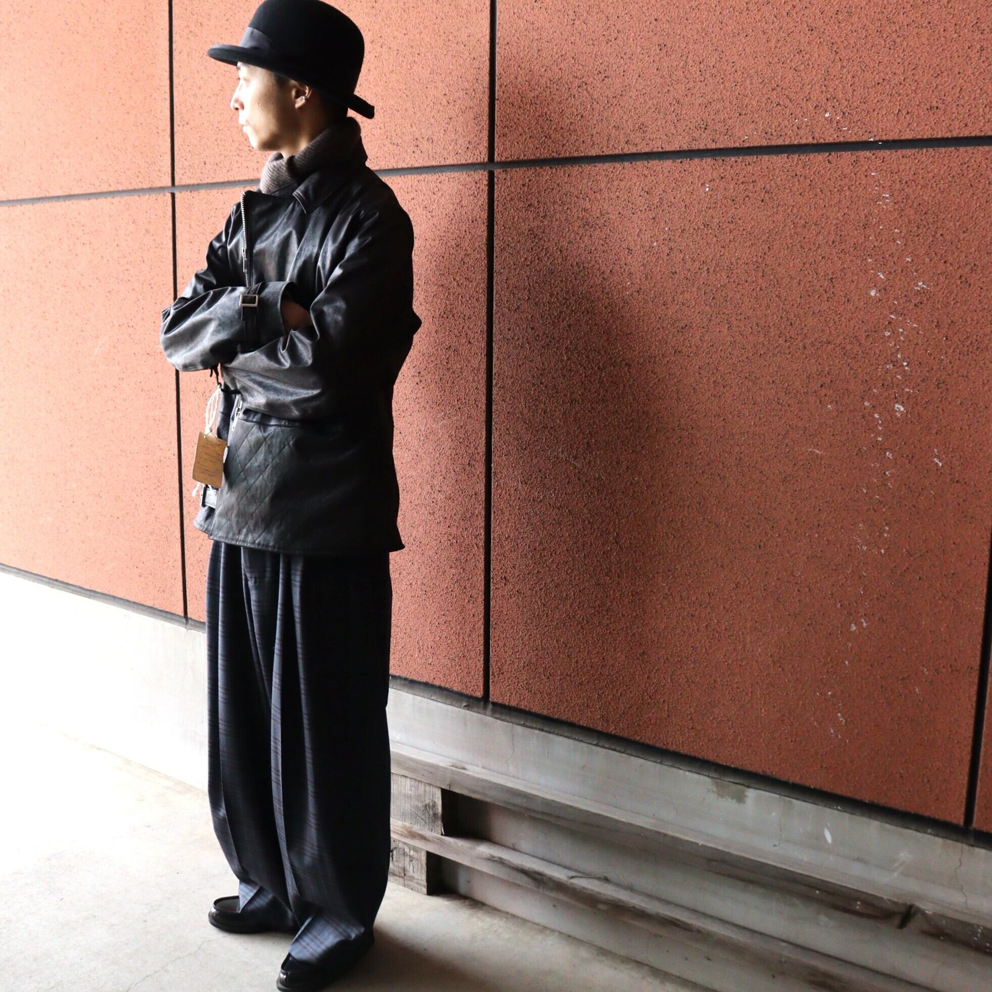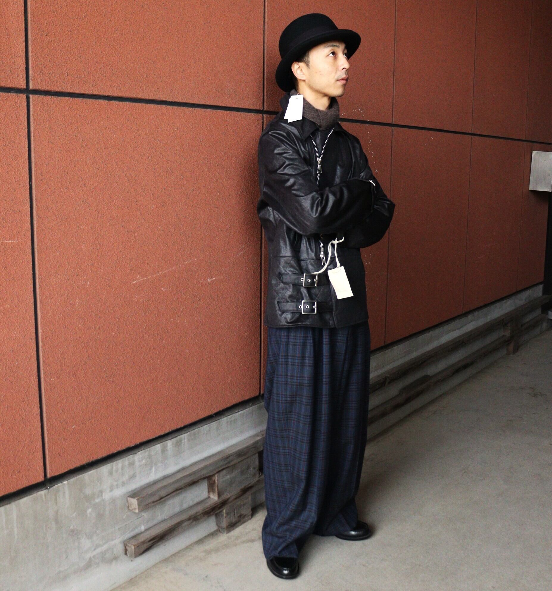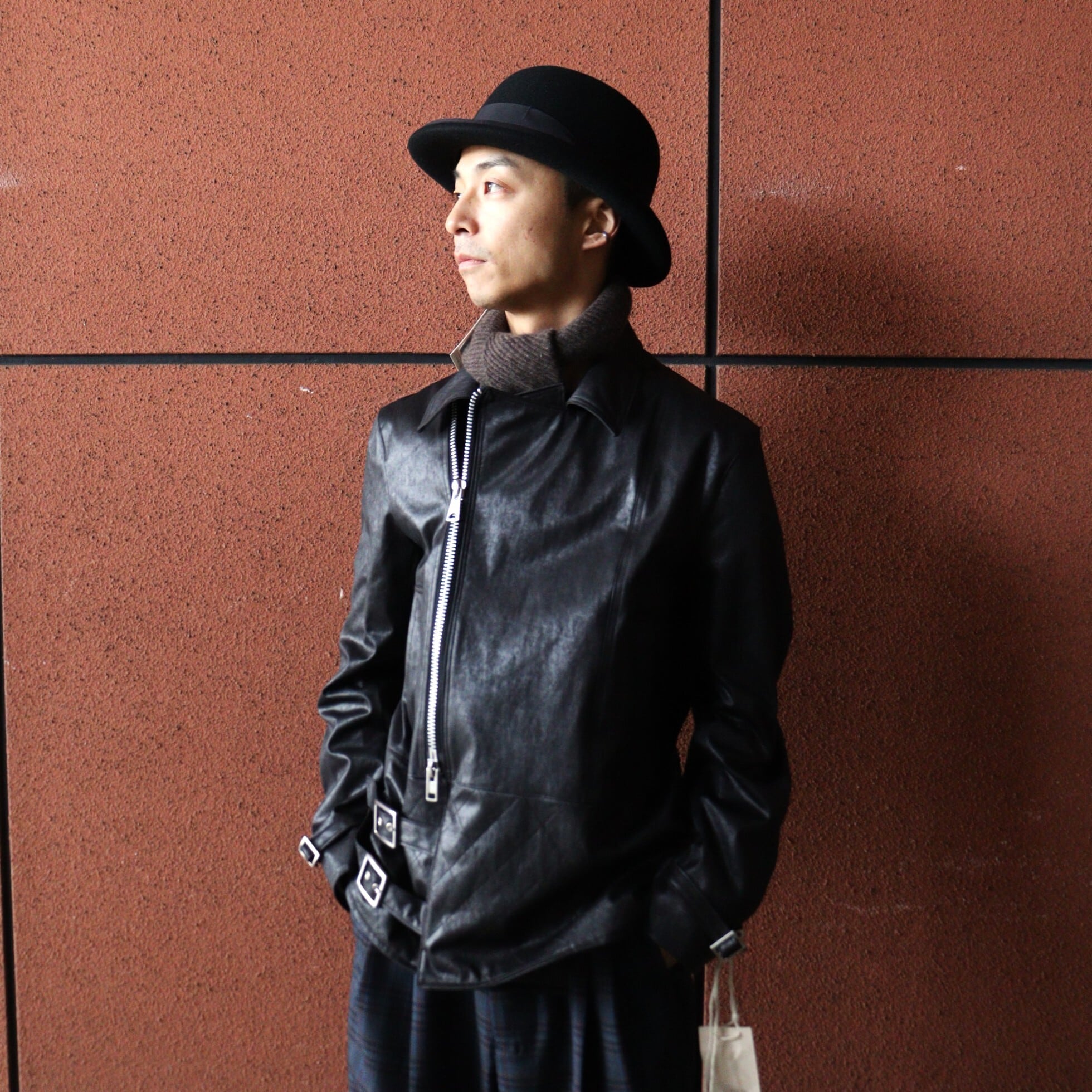 各所ディティールを微調整し、現代に多いオーバーサイズへの落とし込みでは無く、タイト過ぎず各部に適度なゆとりを持たせ、ベストだと思えるサイジングに徹底的に拘り、ハード目な印象やユース感が出過ぎてしまうことの多いライダースモチーフを、どこかエレガントさをも感じる様に仕上げています。