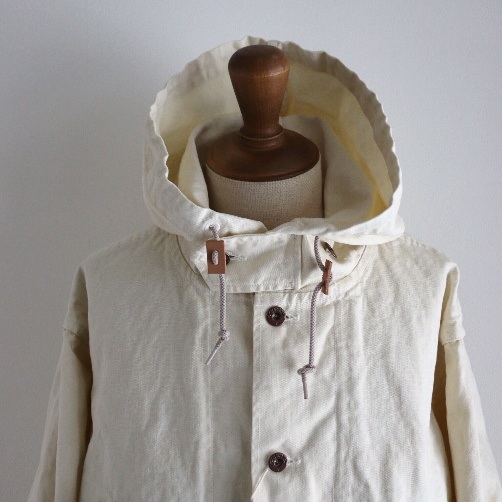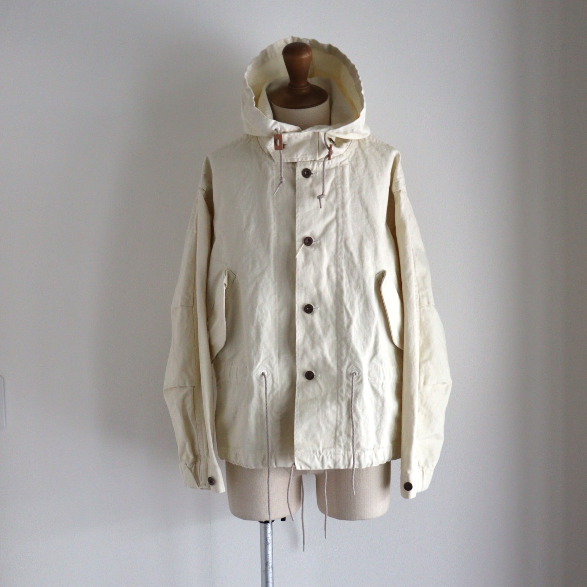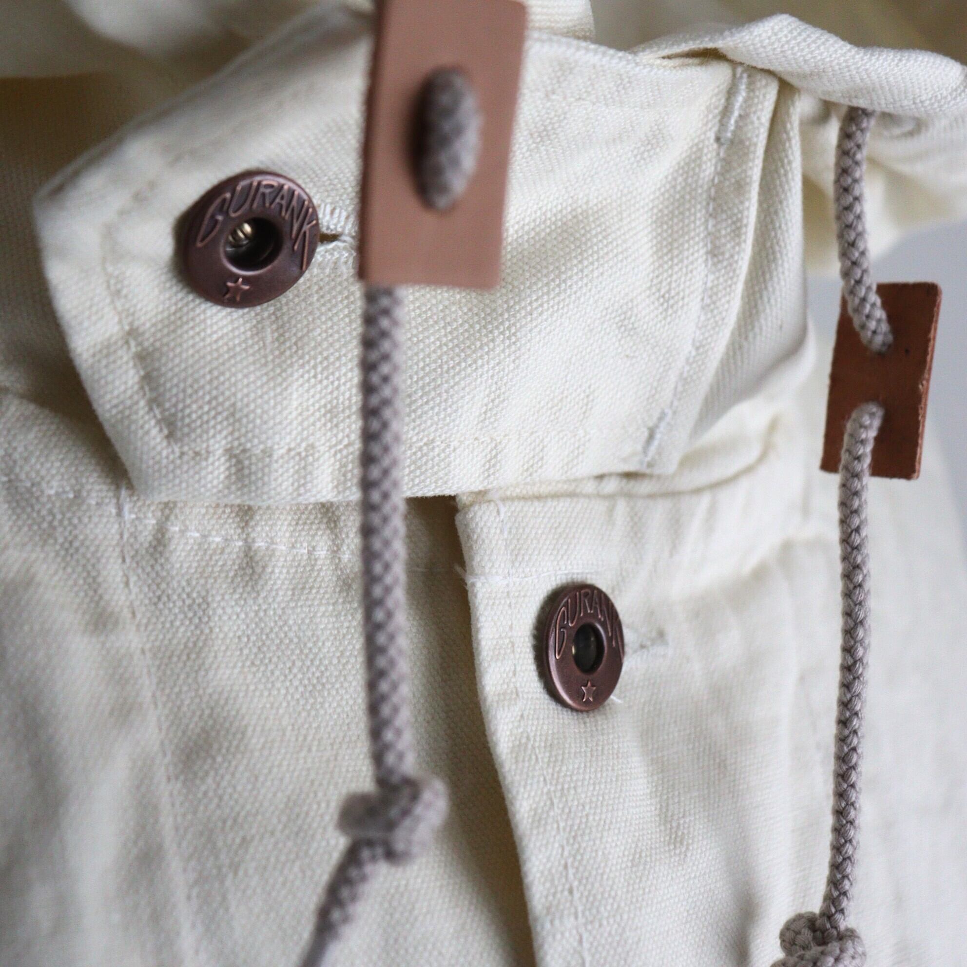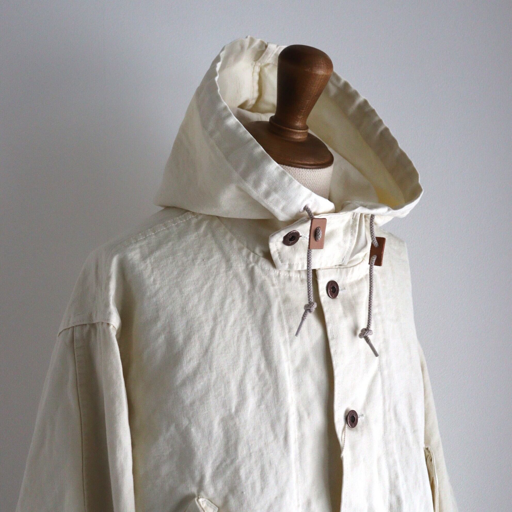 60年代ヴィンテージワークウェアの生地をリプロした、太い綿とヘンプで織ったオリジナルOXを使用したマウンテンパーカ。