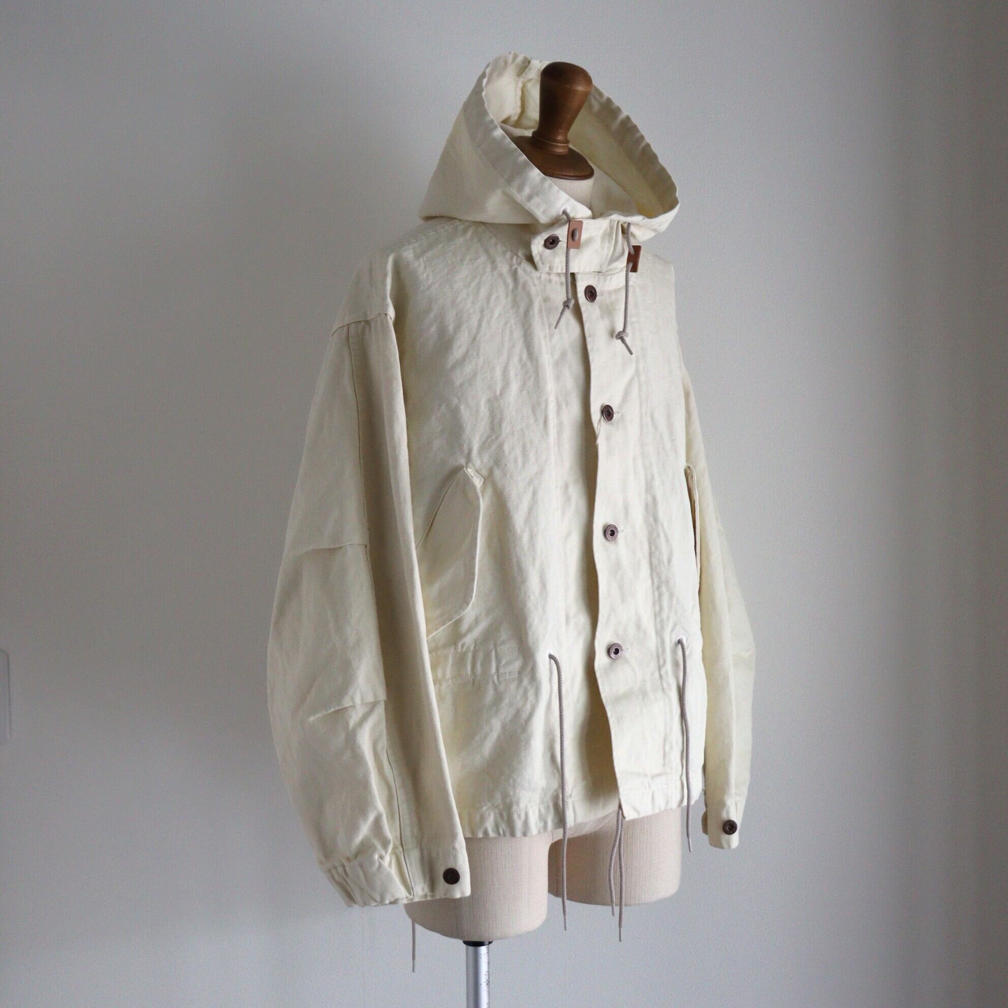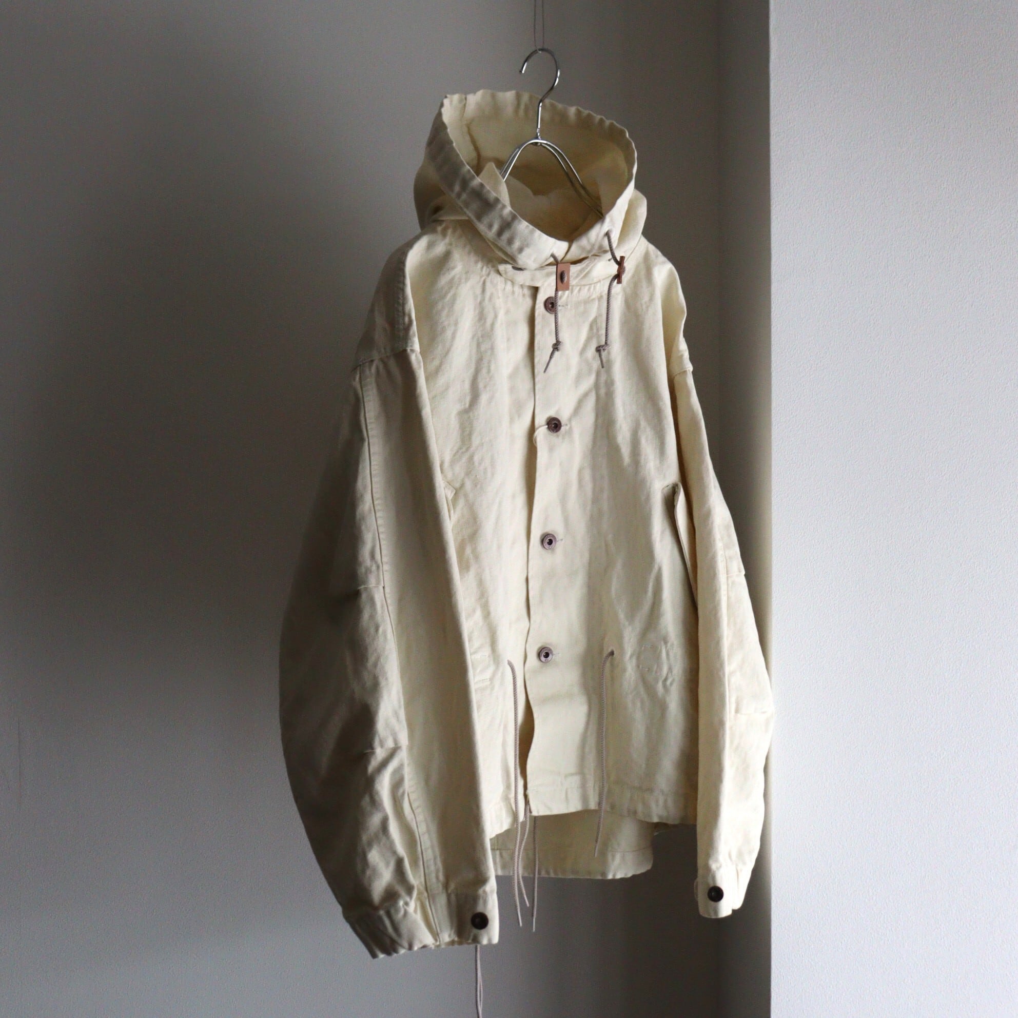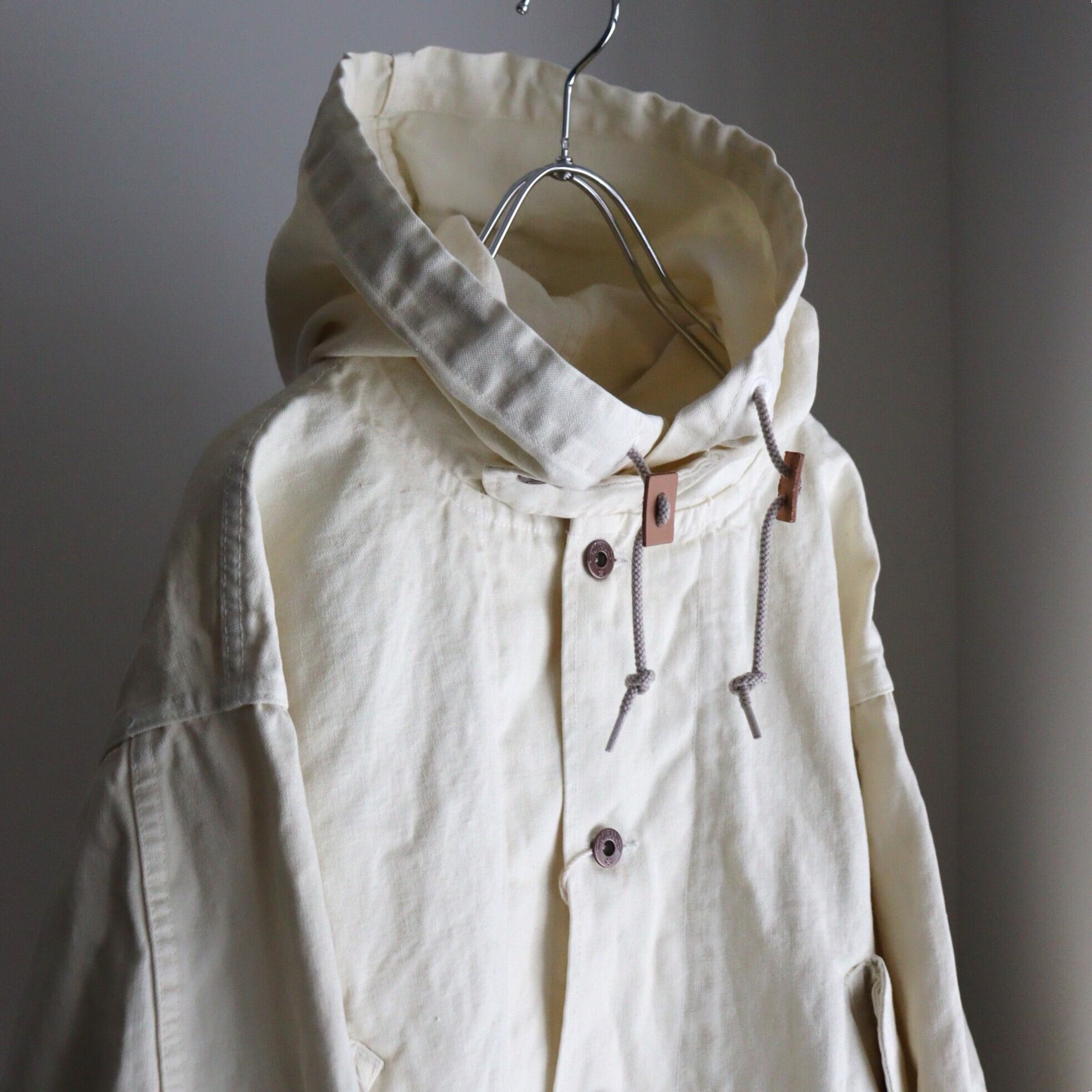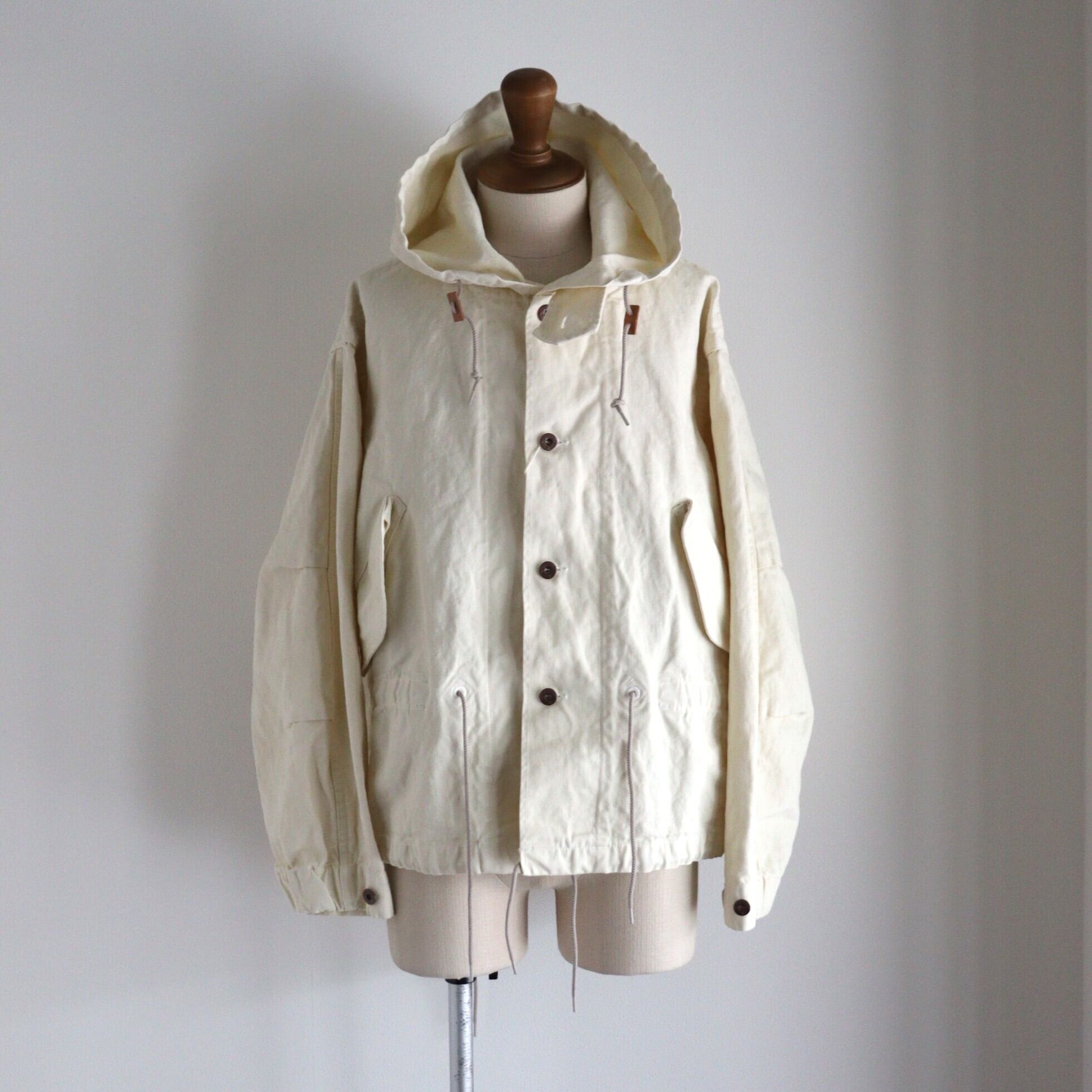 60年代ヴィンテージワークウェアの生地をリプロした、太い綿とヘンプで織ったオリジナルOXを使用したマウンテンパーカ。