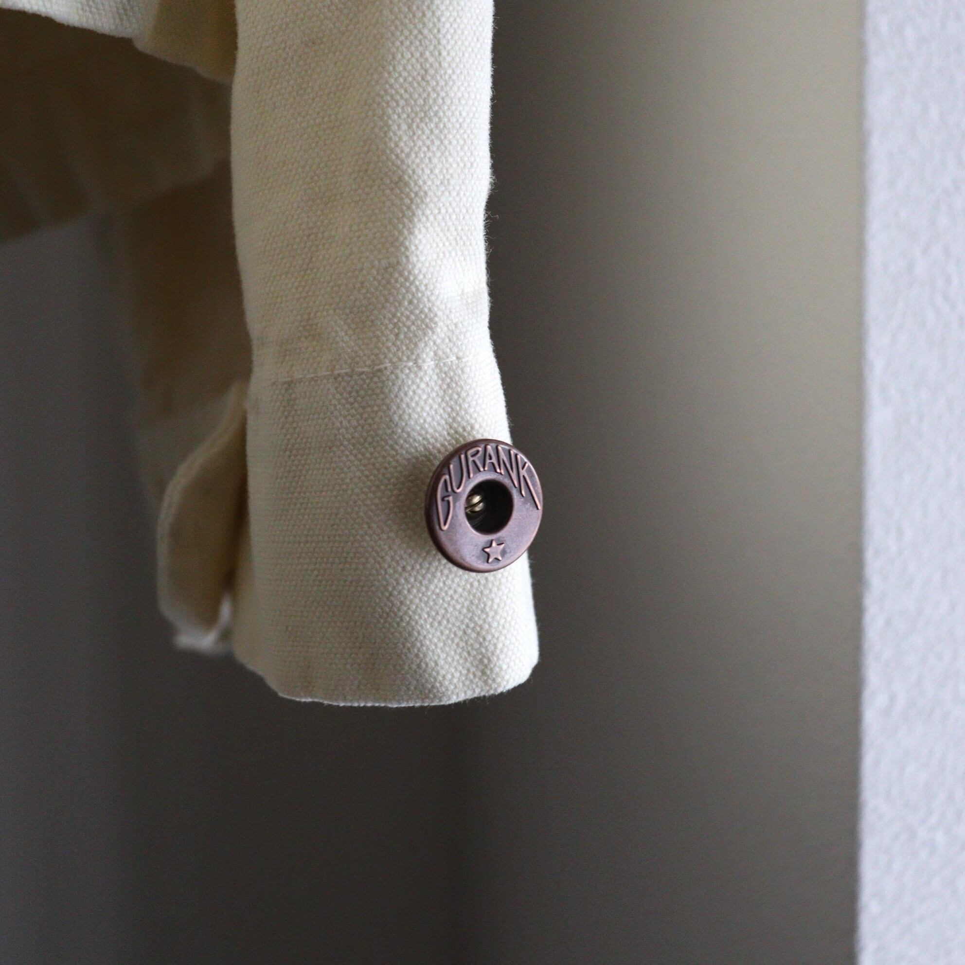 別注の鉄製のタックボタンを使用しており、使い込んでいくうちに傷がついた箇所が錆びていくのも楽しんで頂けます。