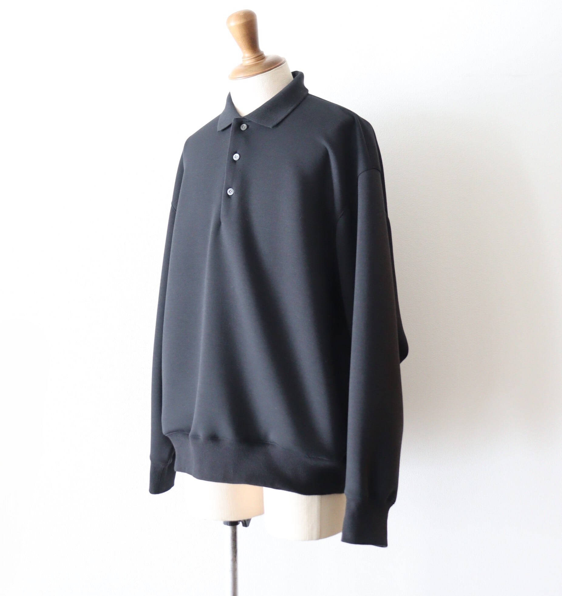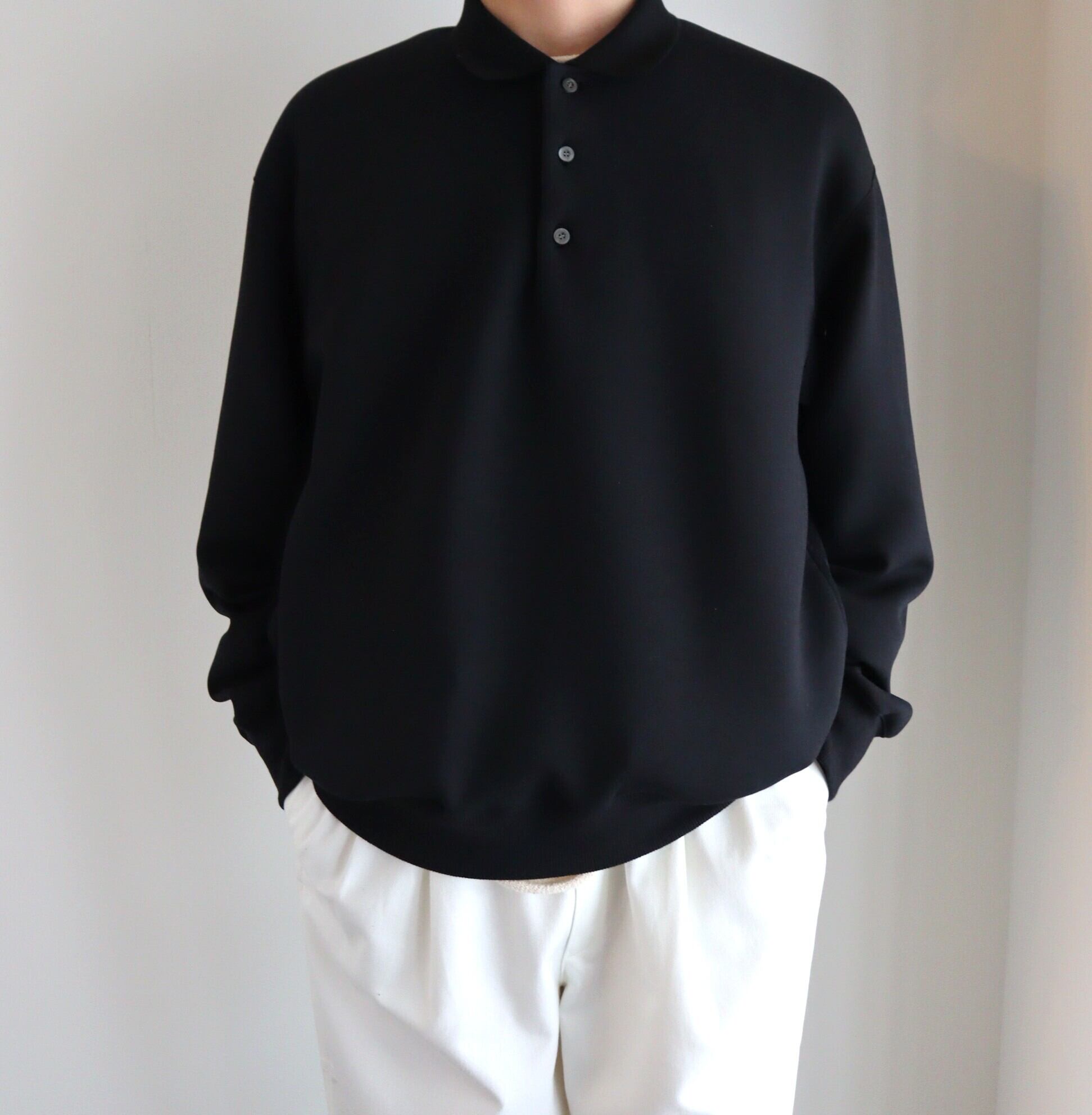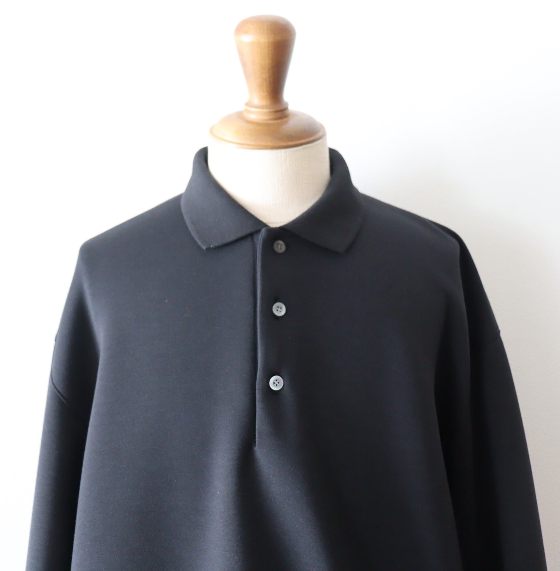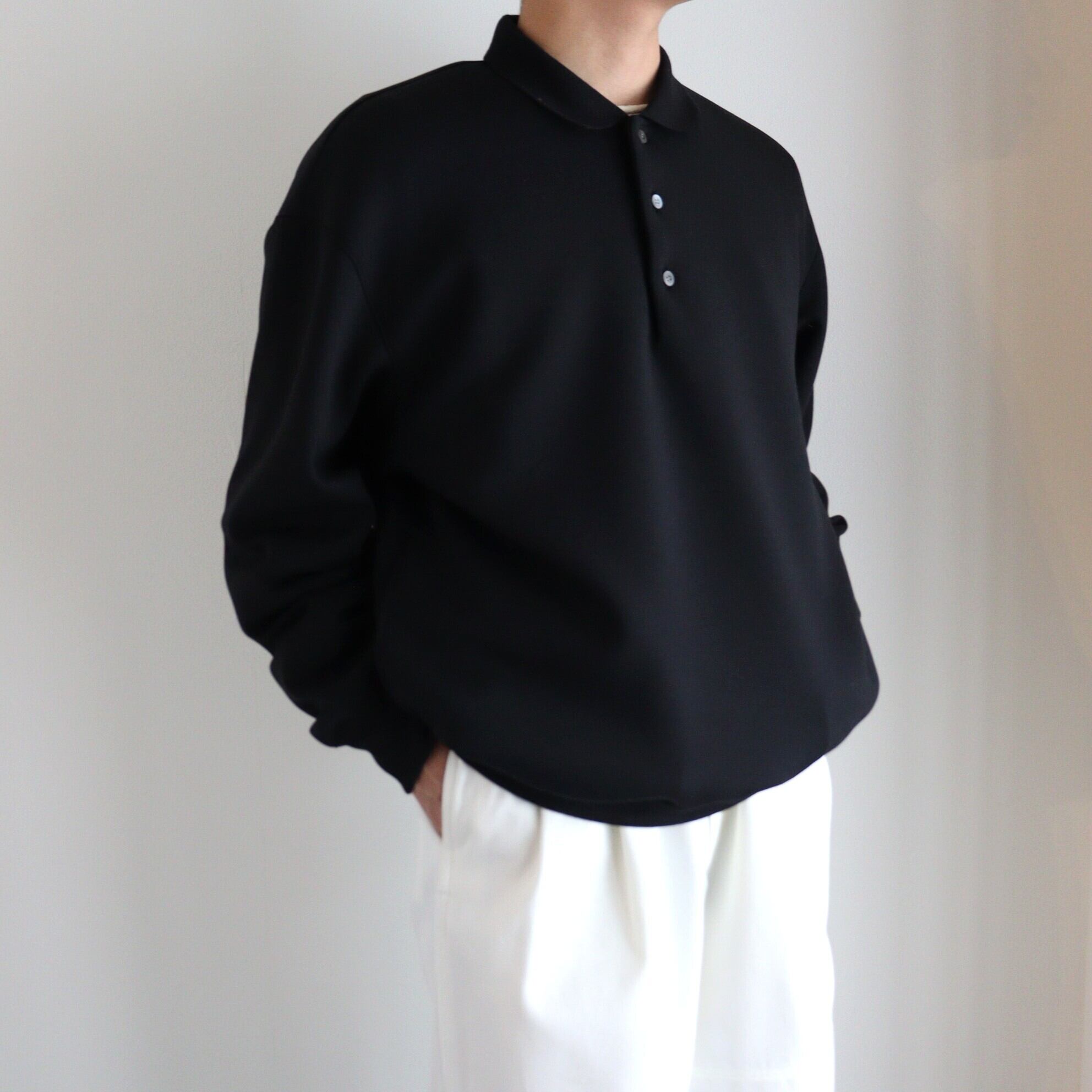 ニットとは違い、シルエットが綺麗に出ています。編み立てたポロ襟が、きちんと感を演出してくれます。柔らかく、軽く、膨らみがあり、雰囲気のある1着となっております。