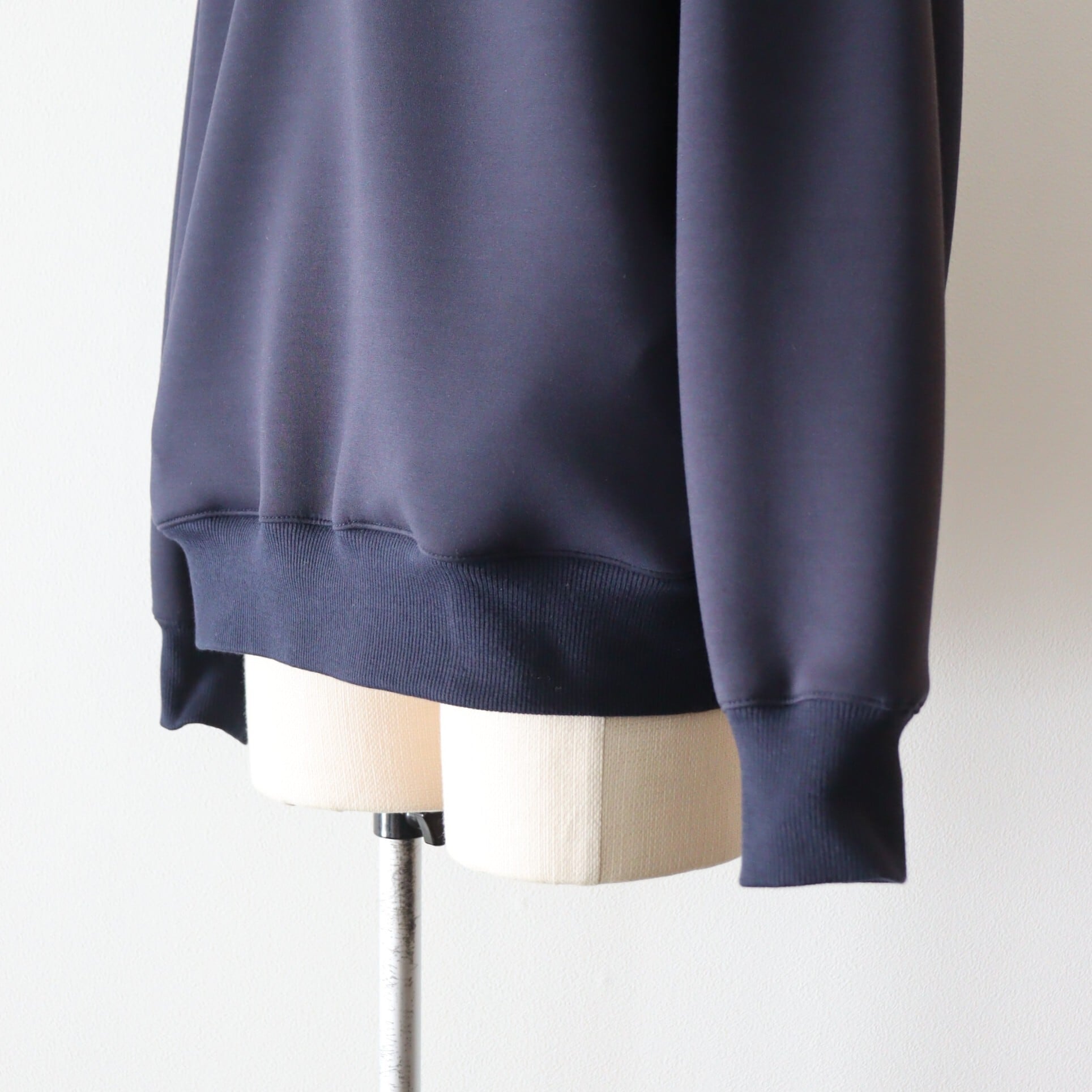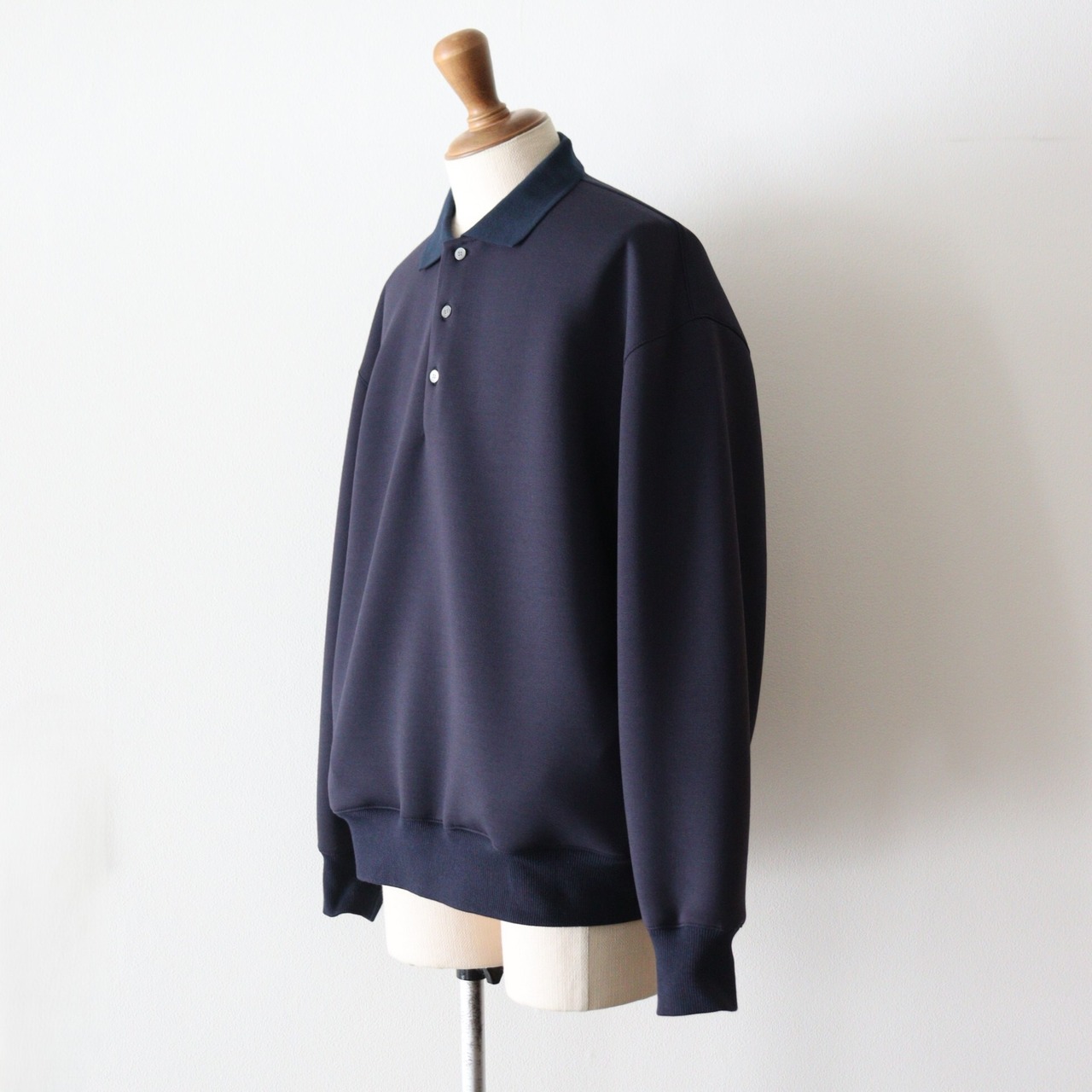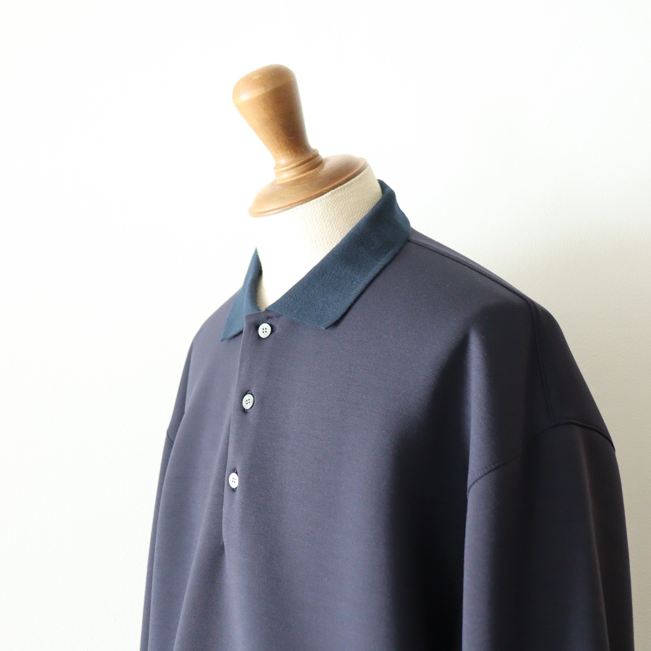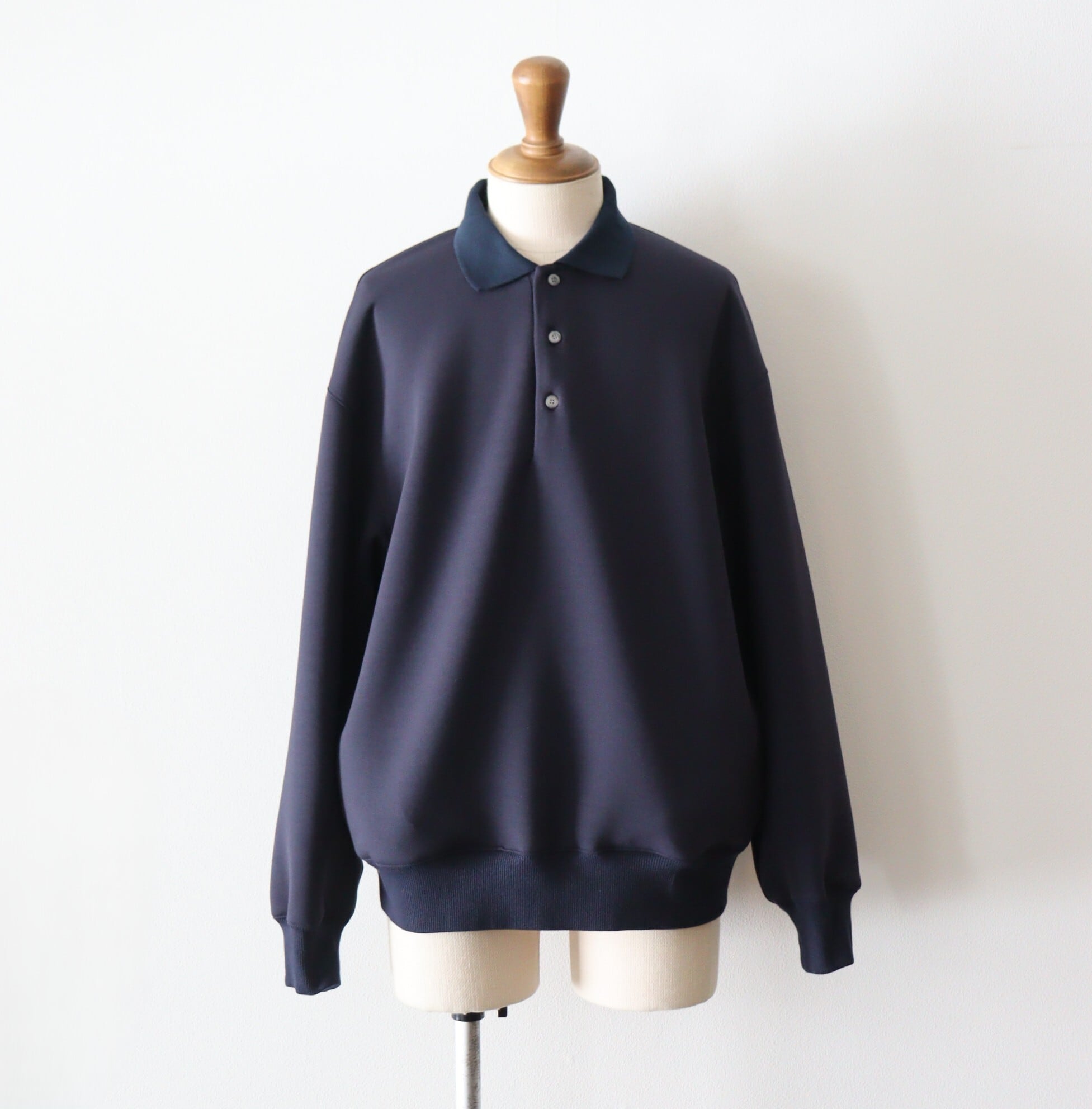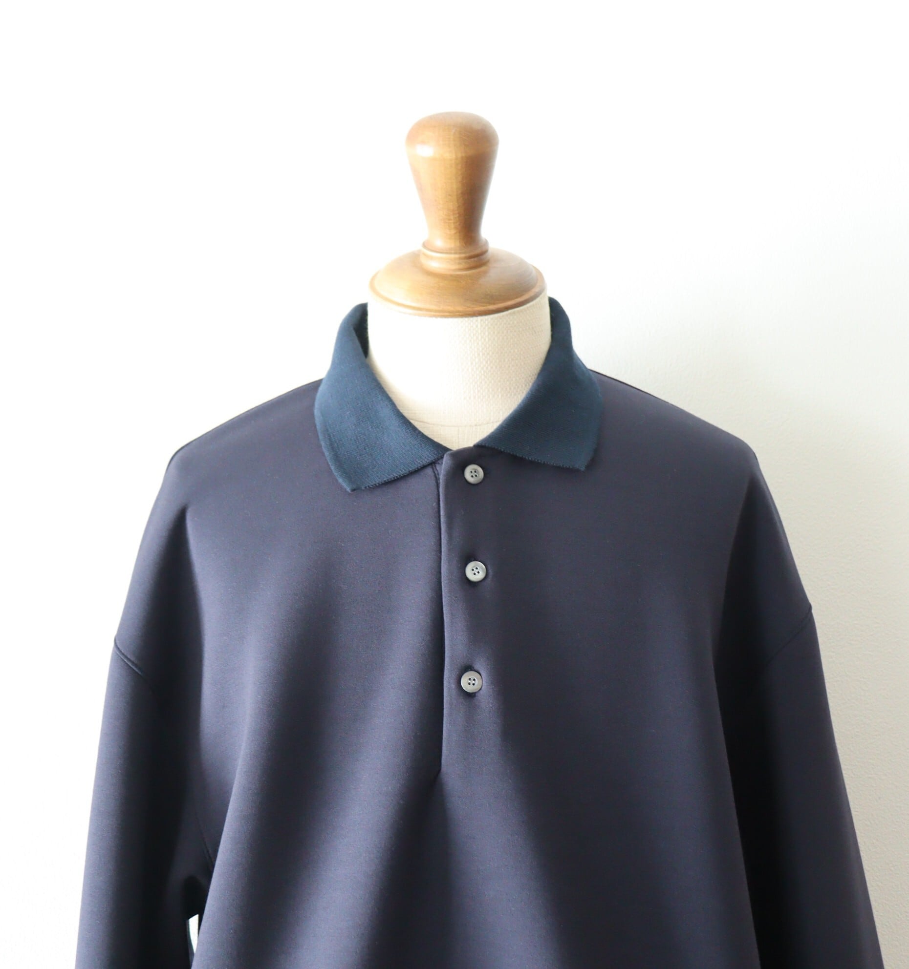 ニットとは違い、シルエットが綺麗に出ています。編み立てたポロ襟が、きちんと感を演出してくれます。柔らかく、軽く、膨らみがあり、雰囲気のある1着となっております。