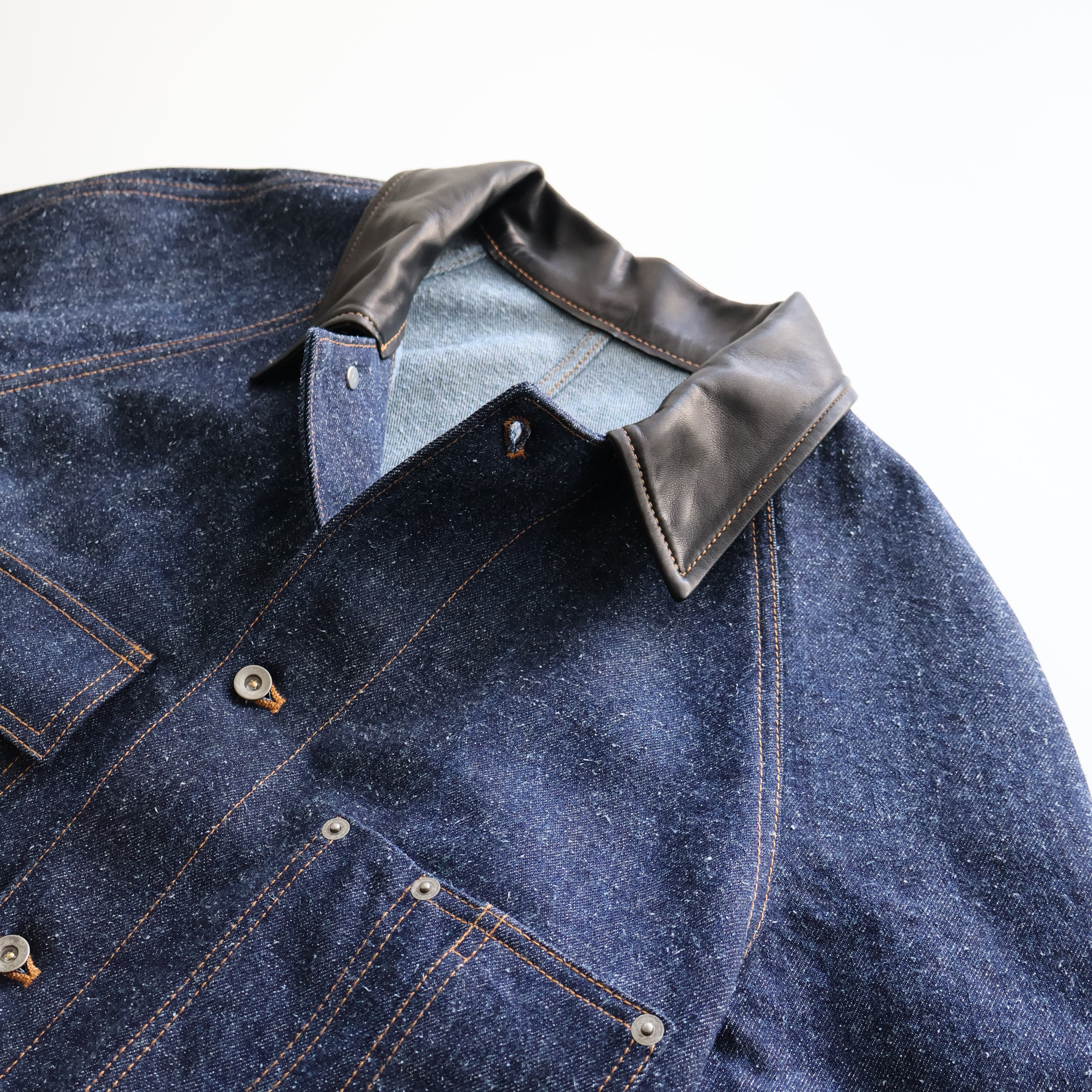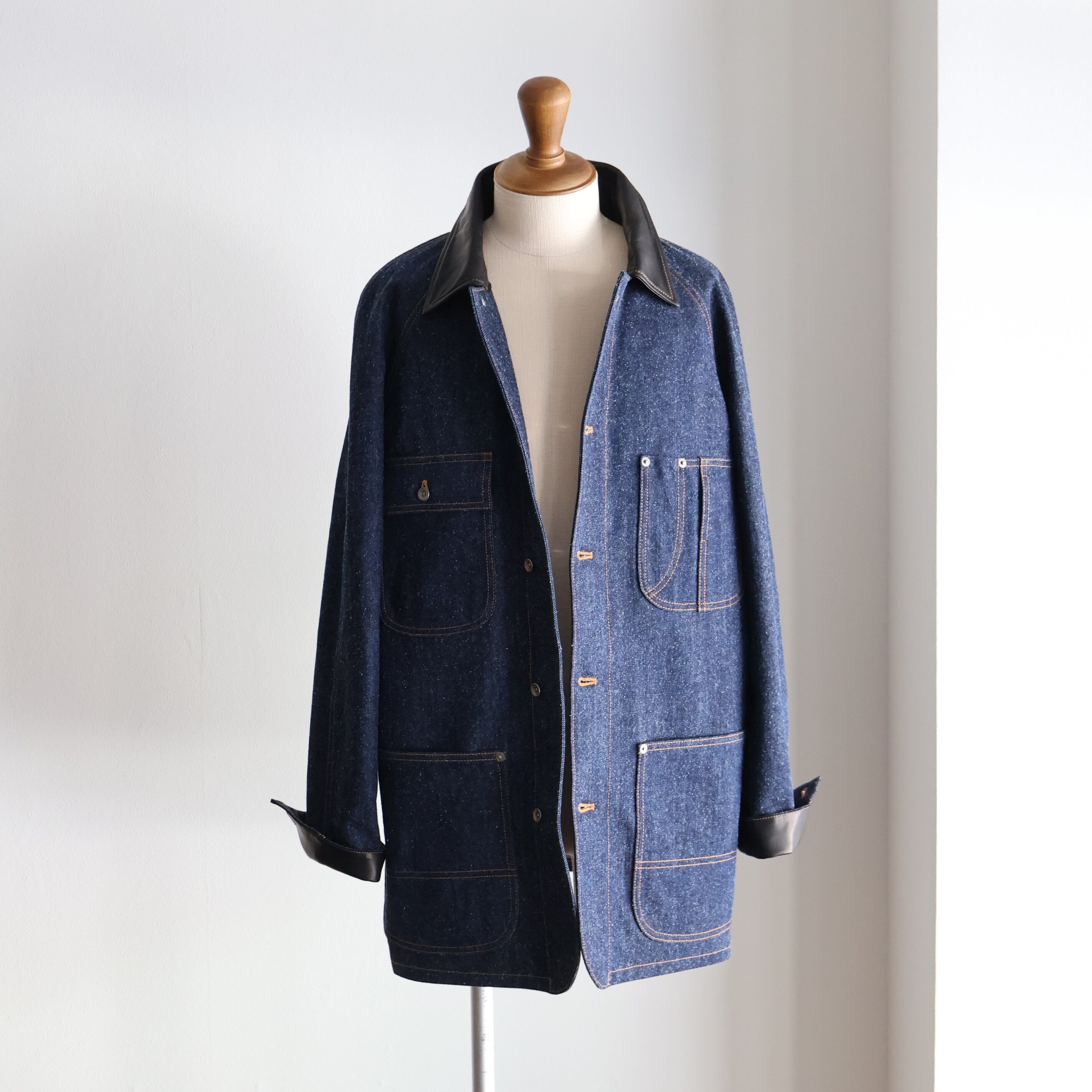 シルクを紡績する際に出てしまうノイルシルクを使用したデニム素材を使用したカバーオール。