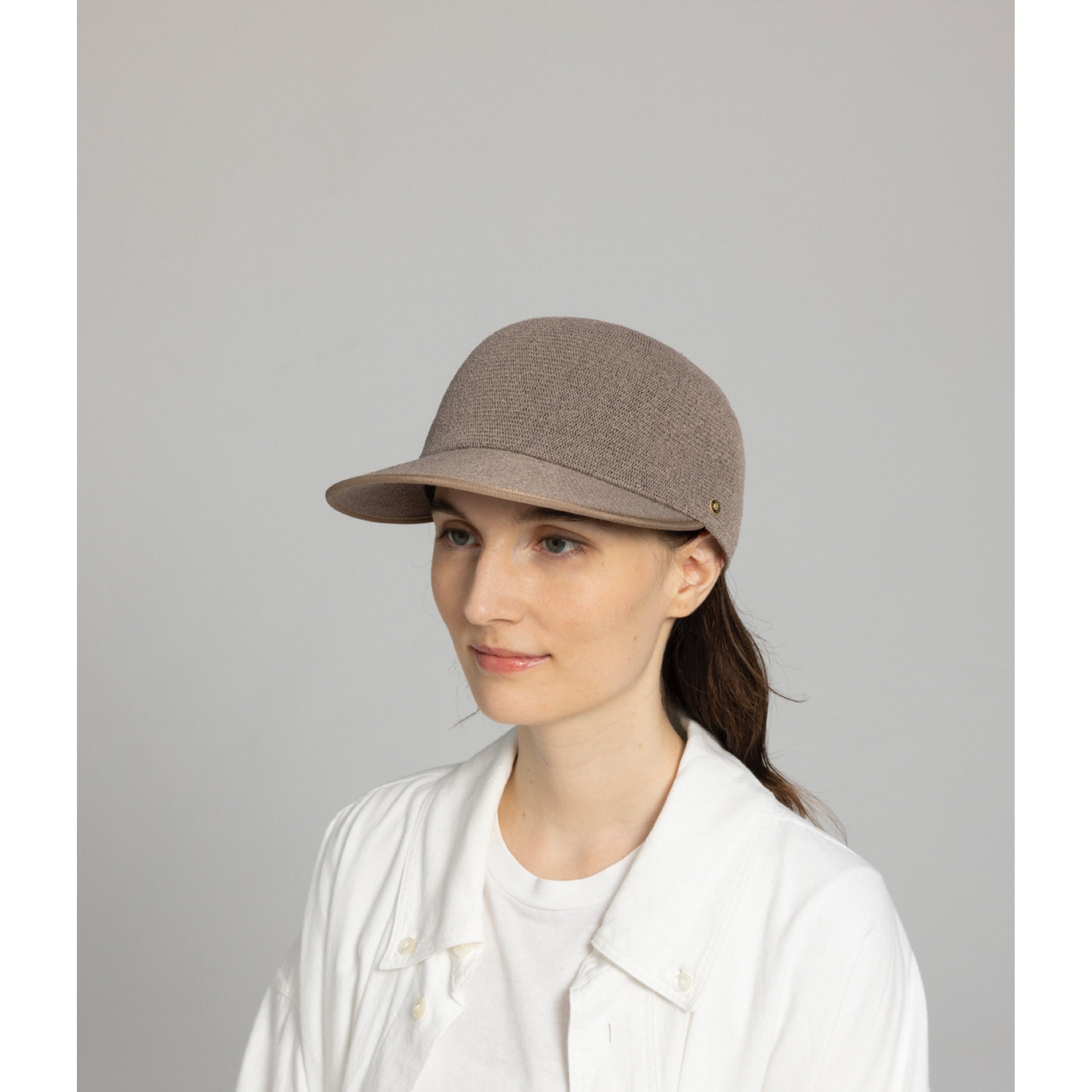 なめらかで上質な肌触りの糸にしっかりと撚りをかけて、微光沢感のあるサーモキャップに仕上がっています。