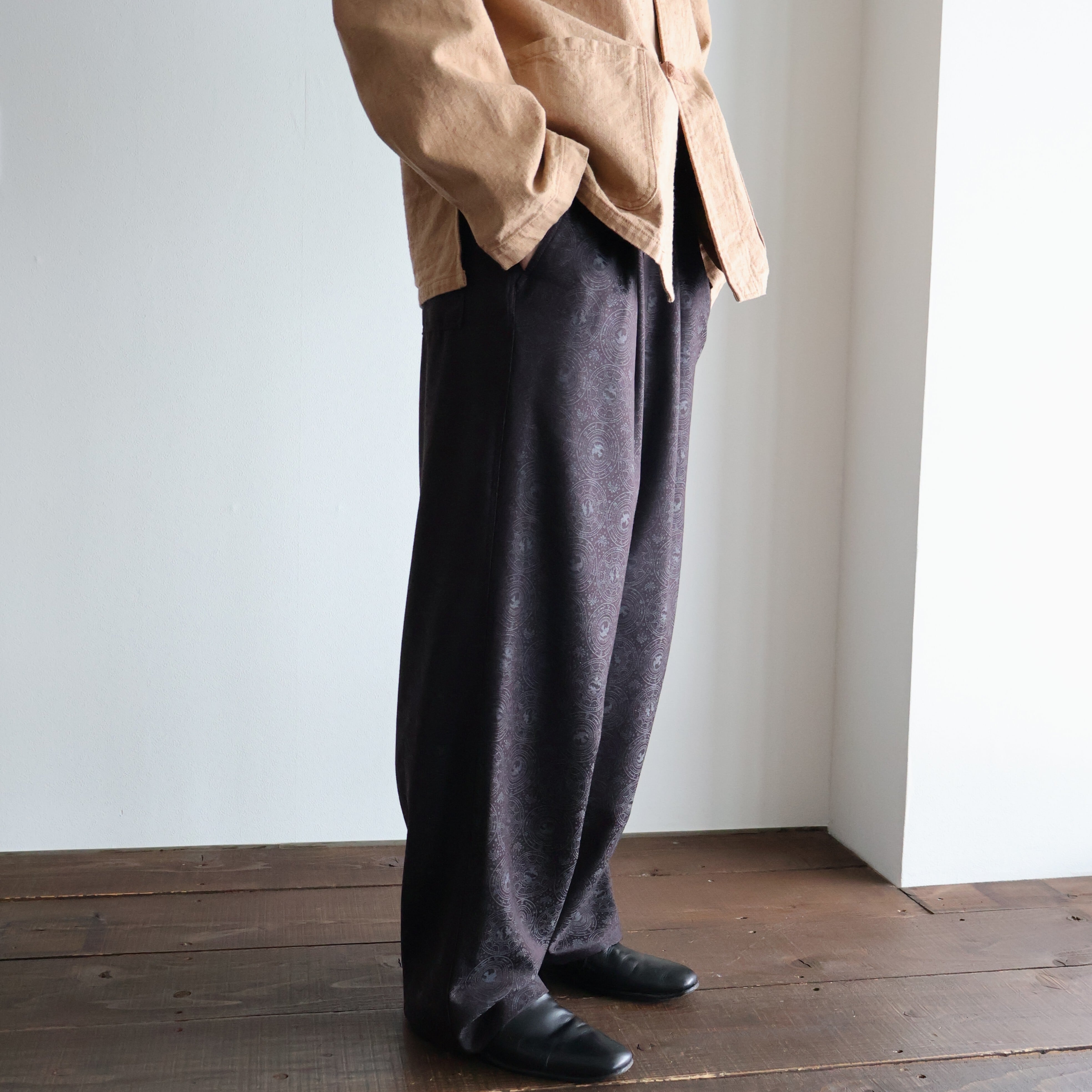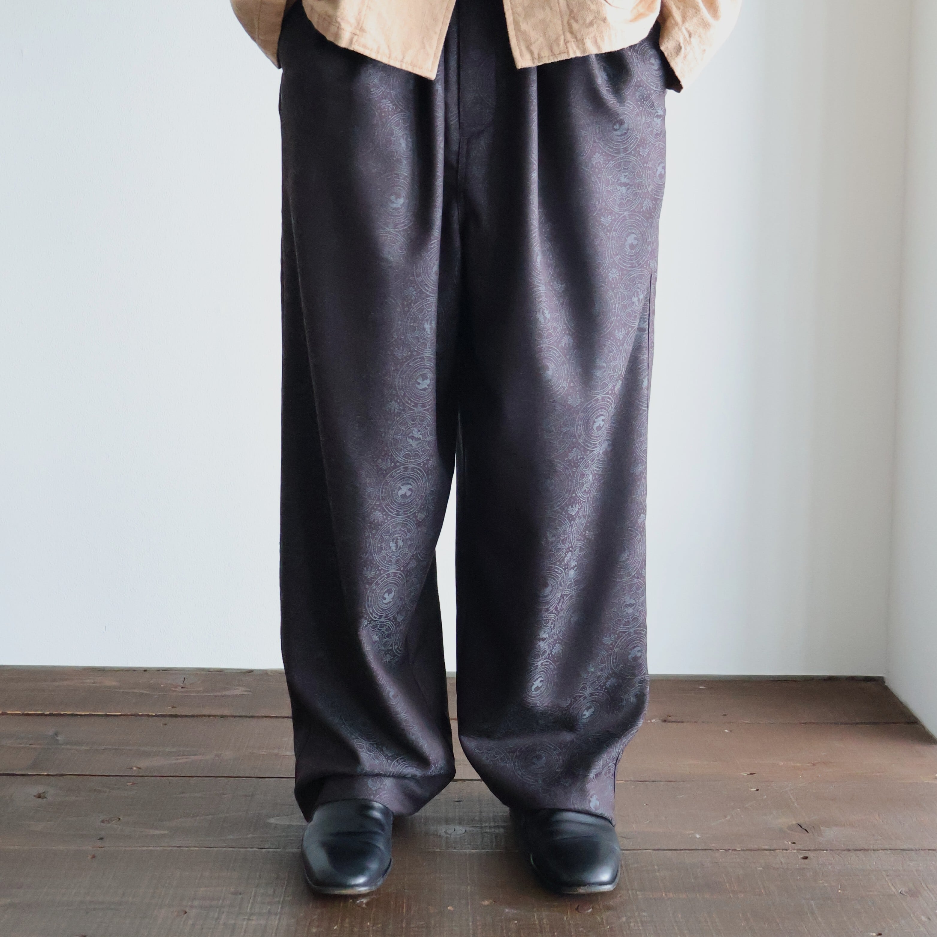 nonnotte が独自開発したシャドージャガード生地を使用した2-Tuck Draw Cord Wide Trousers になります。
