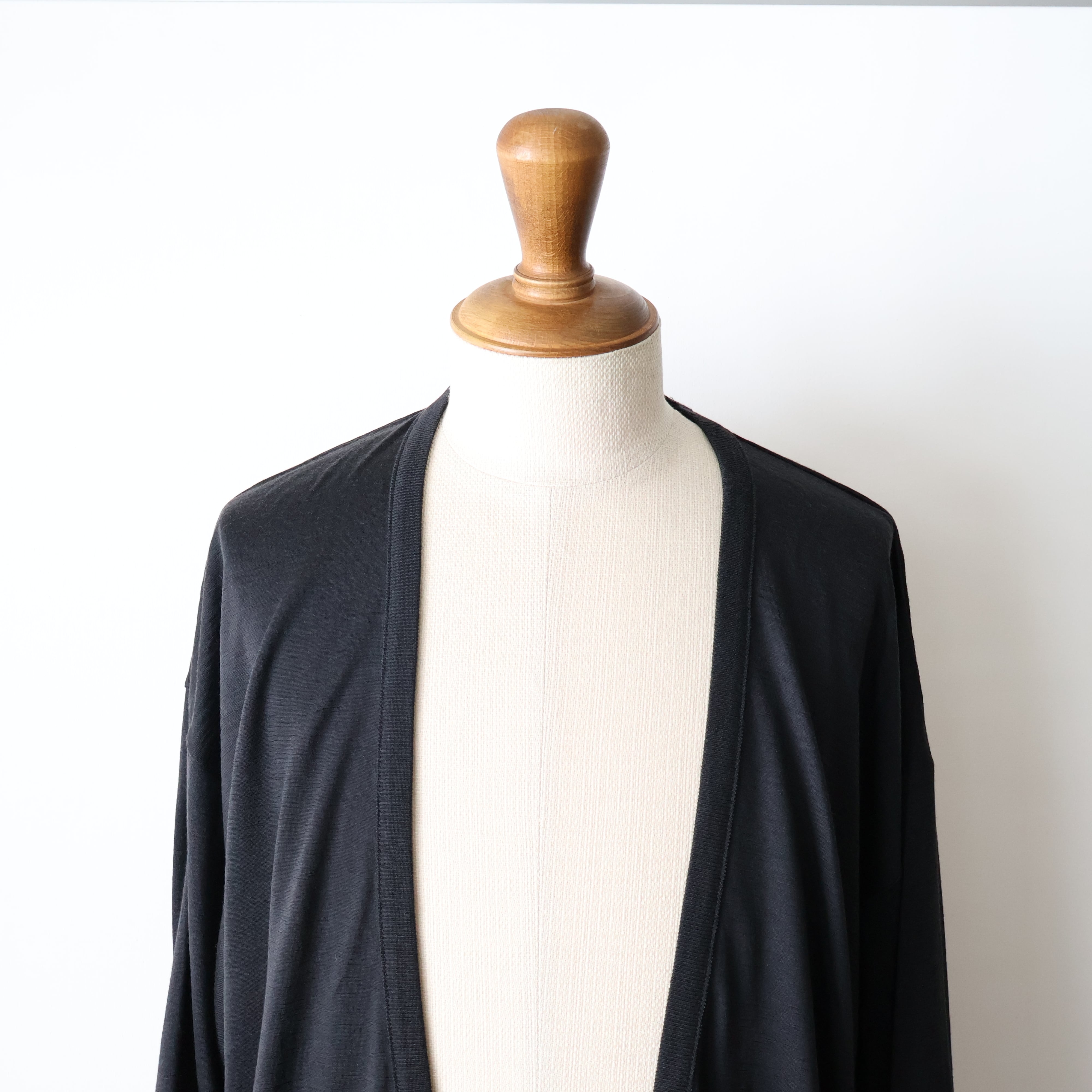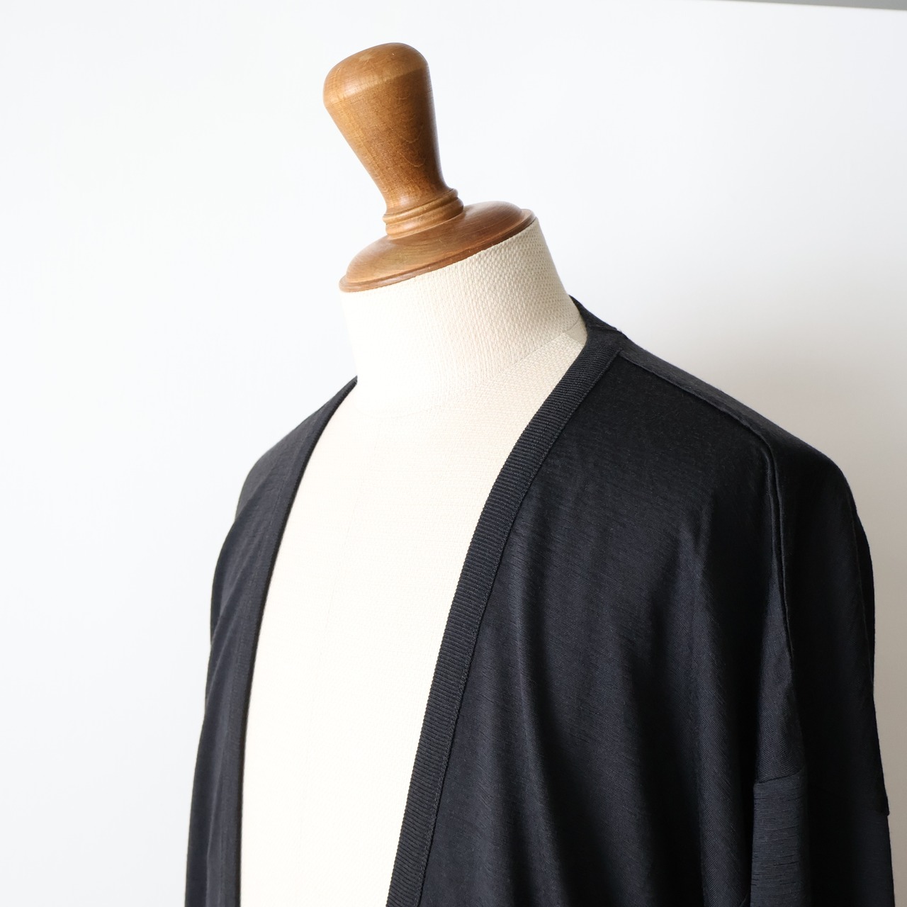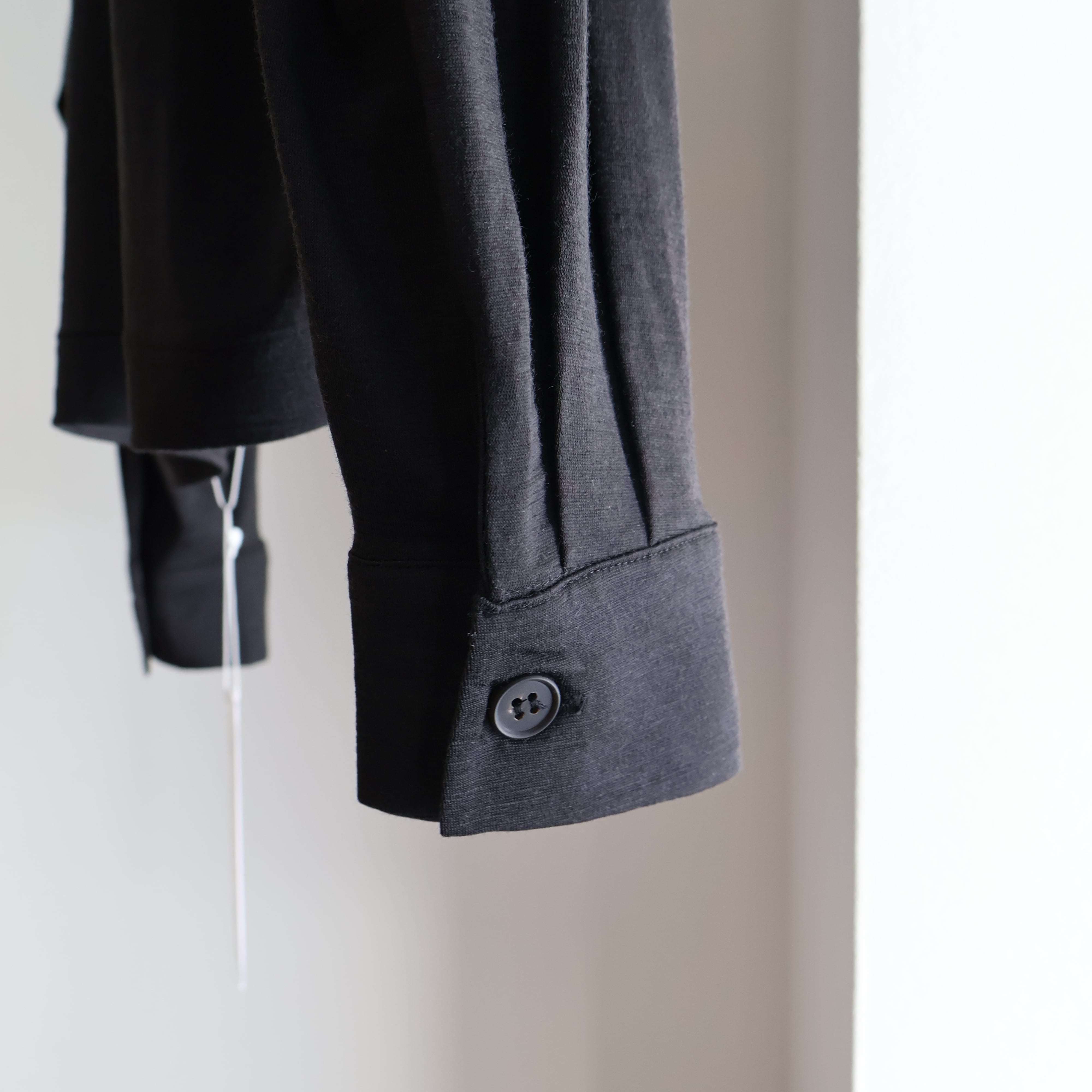 何度も洗いながら育てていく中で、色褪せても気にならないよう、わずかに青みを忍ばせた墨色のようなニュアンスにしています。 ウールの黒は、それだけで上品な艶を持っていて、カットソーでありながらどこか格調を感じさせる。洗いを重ねるほどに表情が柔らかくなり、育っていく過程を楽しめます。