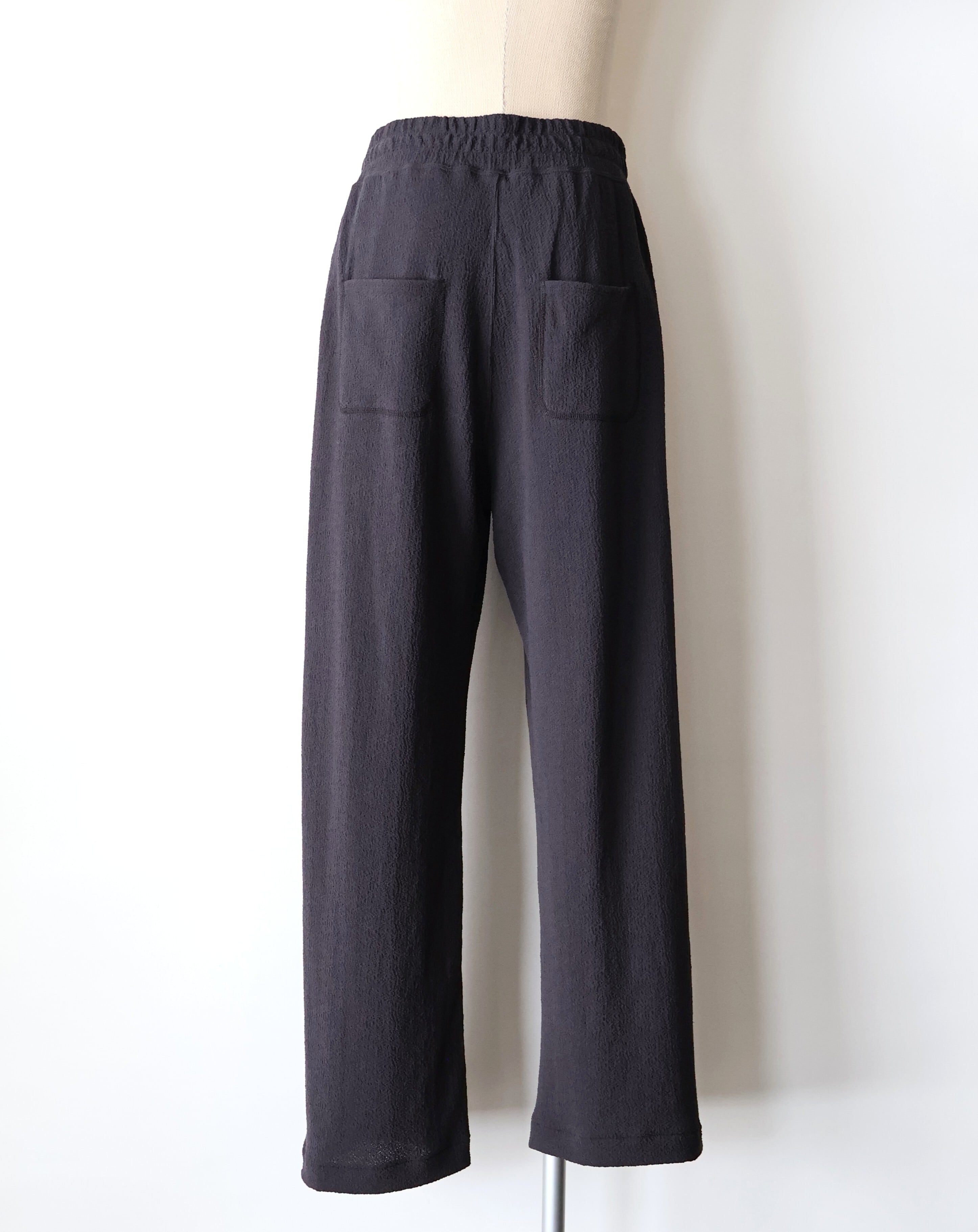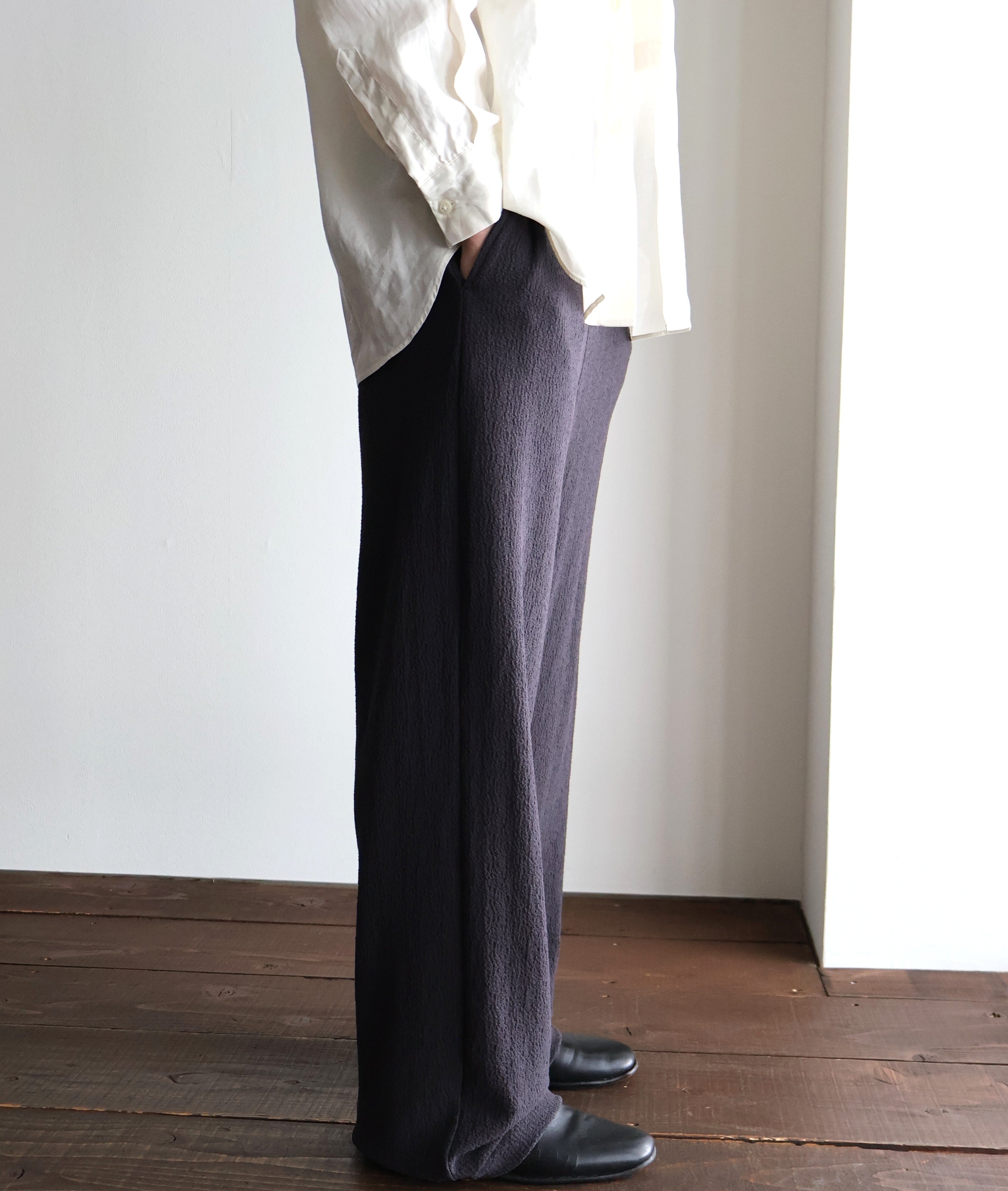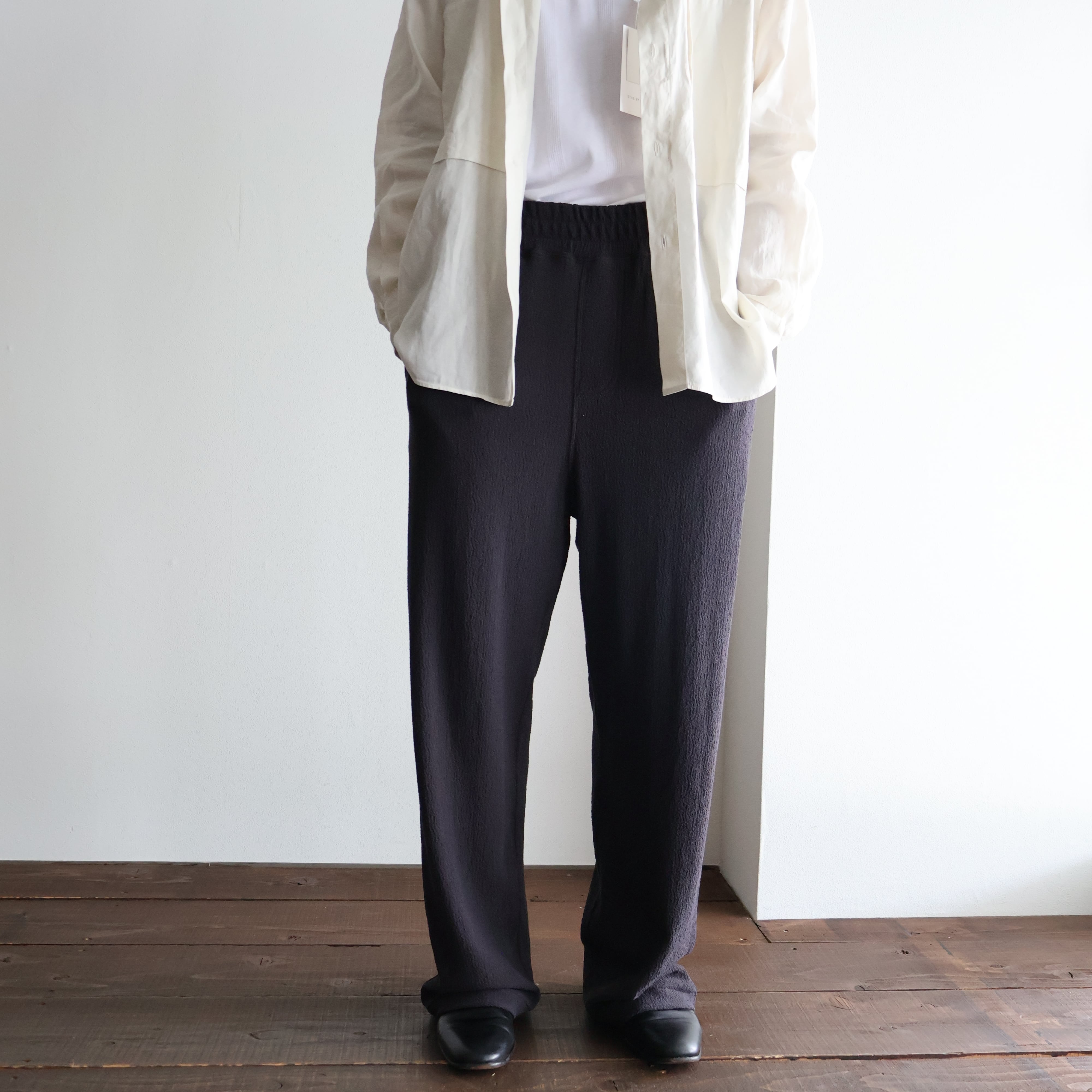 ジャージー素材のパンツにありがちな、ルームウェア感やカジュアルさは一切ありません。 素材の特性を活かし、暑い季節でも気持ちよく、堂々と穿ける。