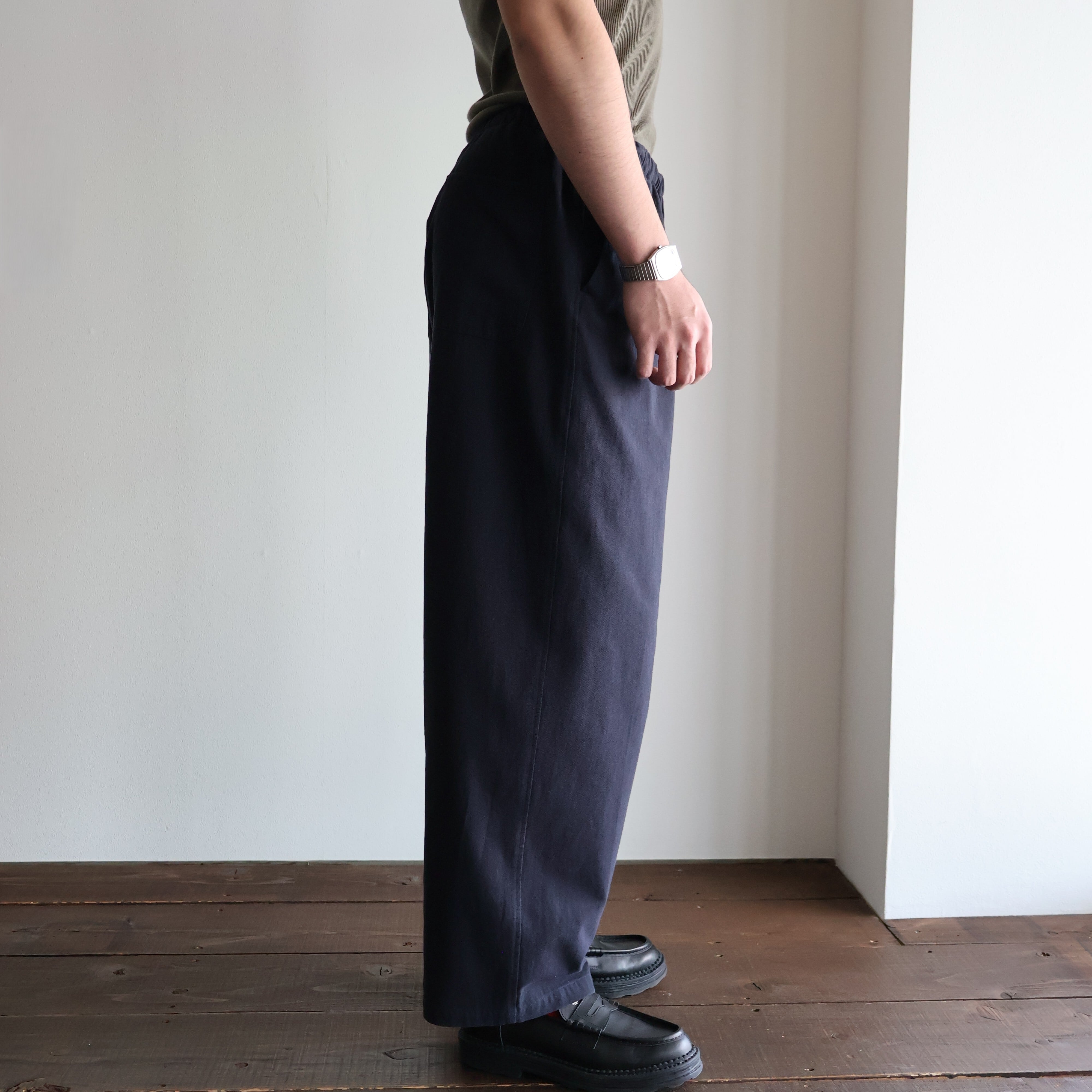 awasa " hard twist cotton twill over pants ( Navy )"