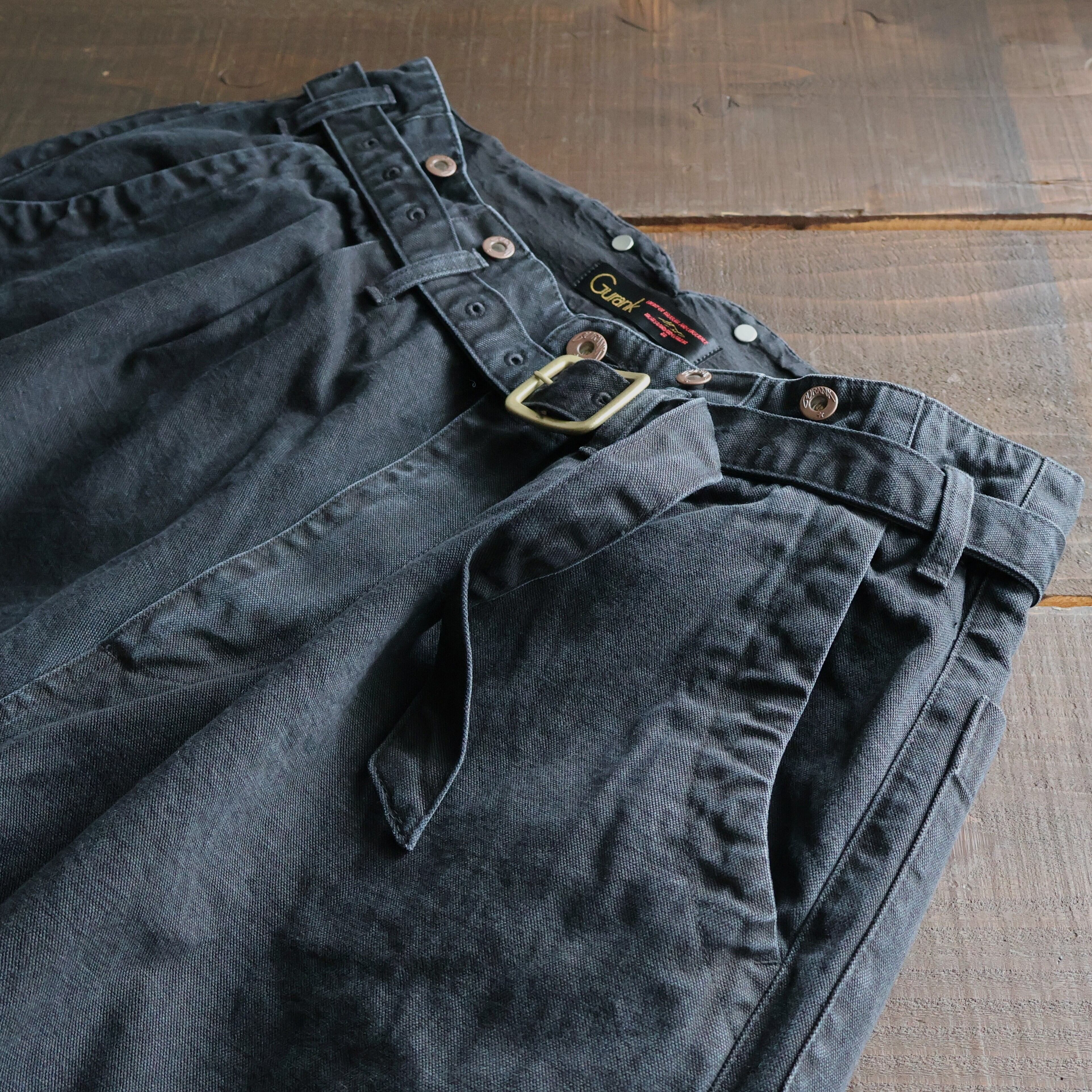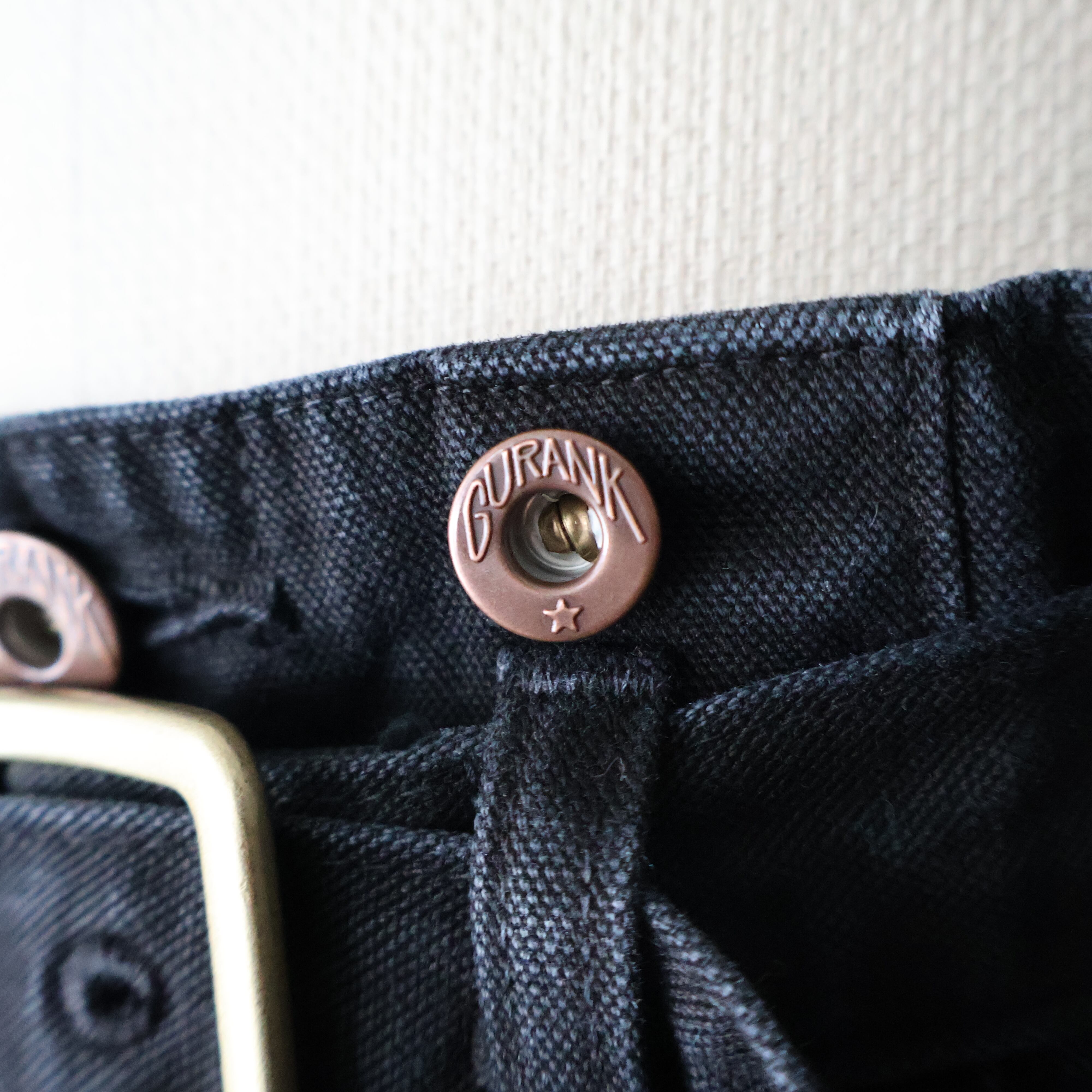 型はGurankの定番ワークパンツに同素材のベルトが付いています。