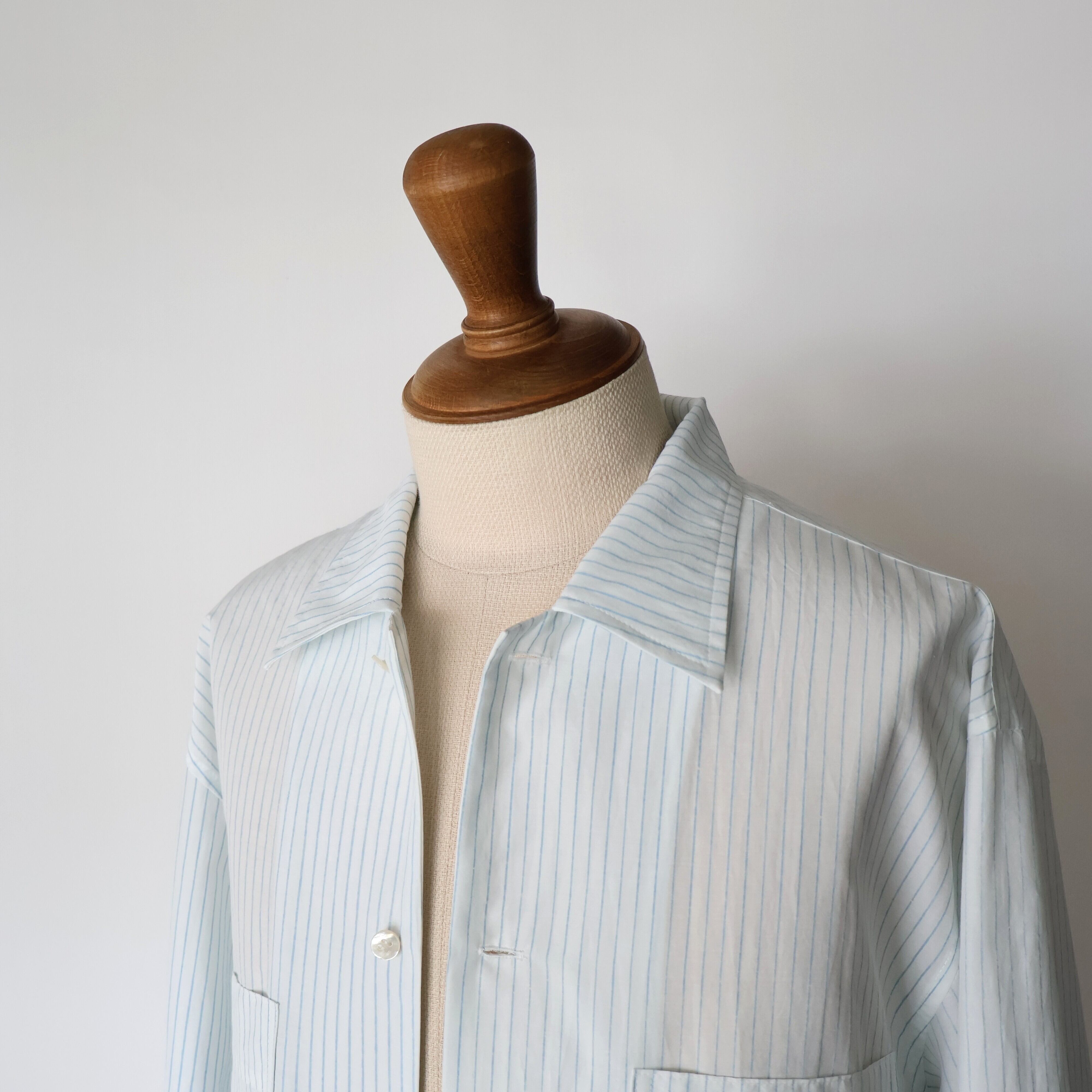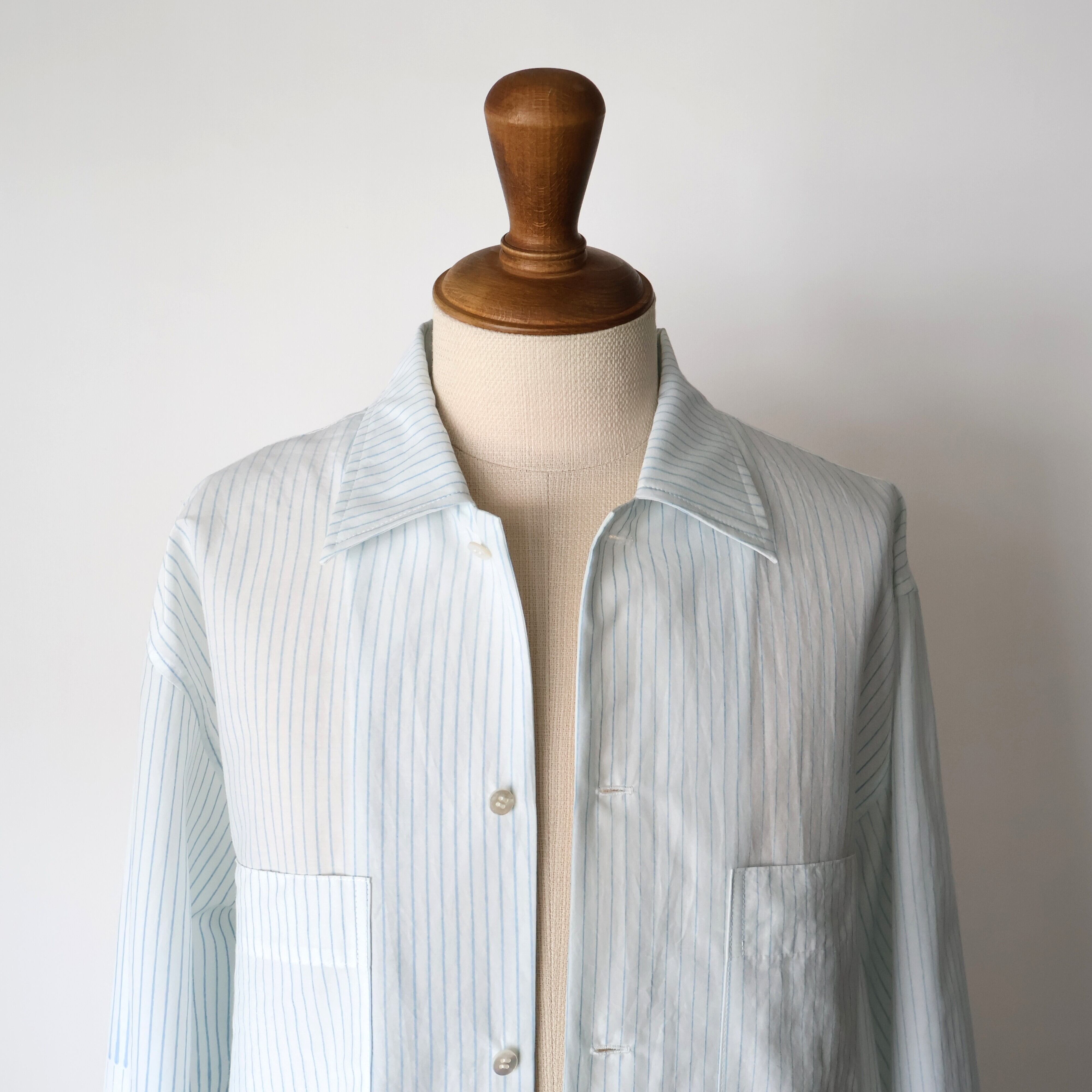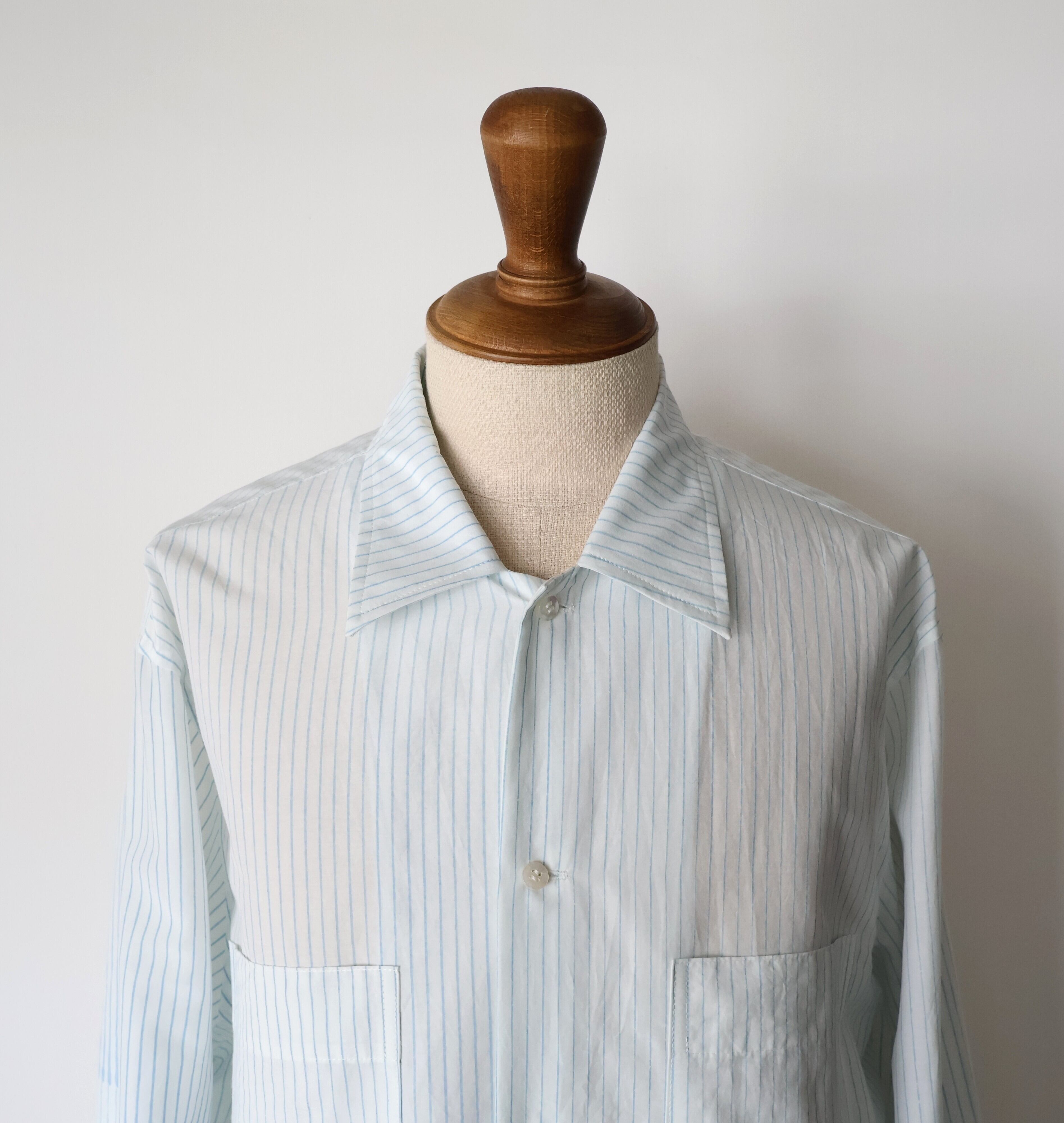 手仕事ならではの、風合いのあるペンシルストライプシャツになります。