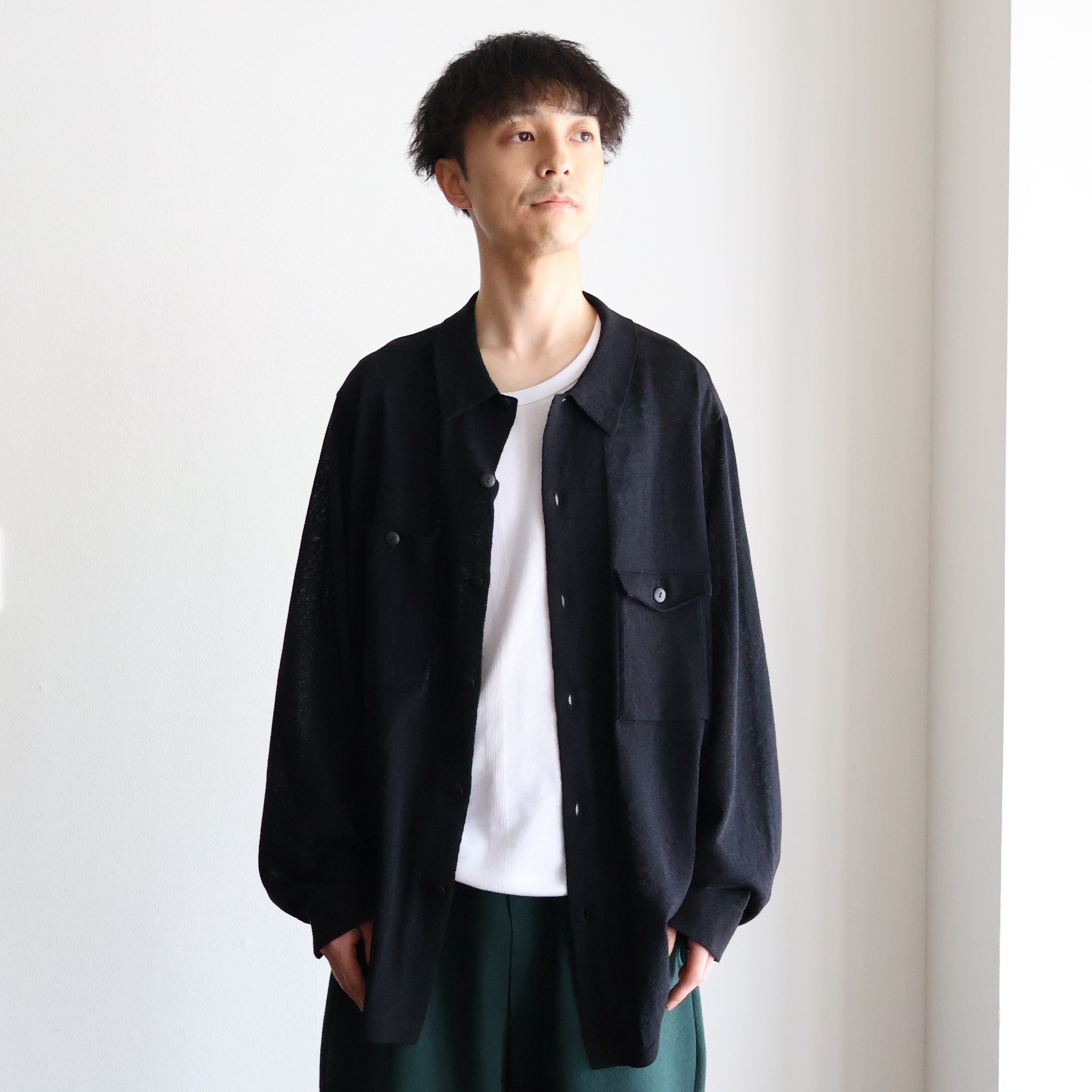 MEIAS “LINEN CHAMBRAY KNIT SHIRTS ( Black )”