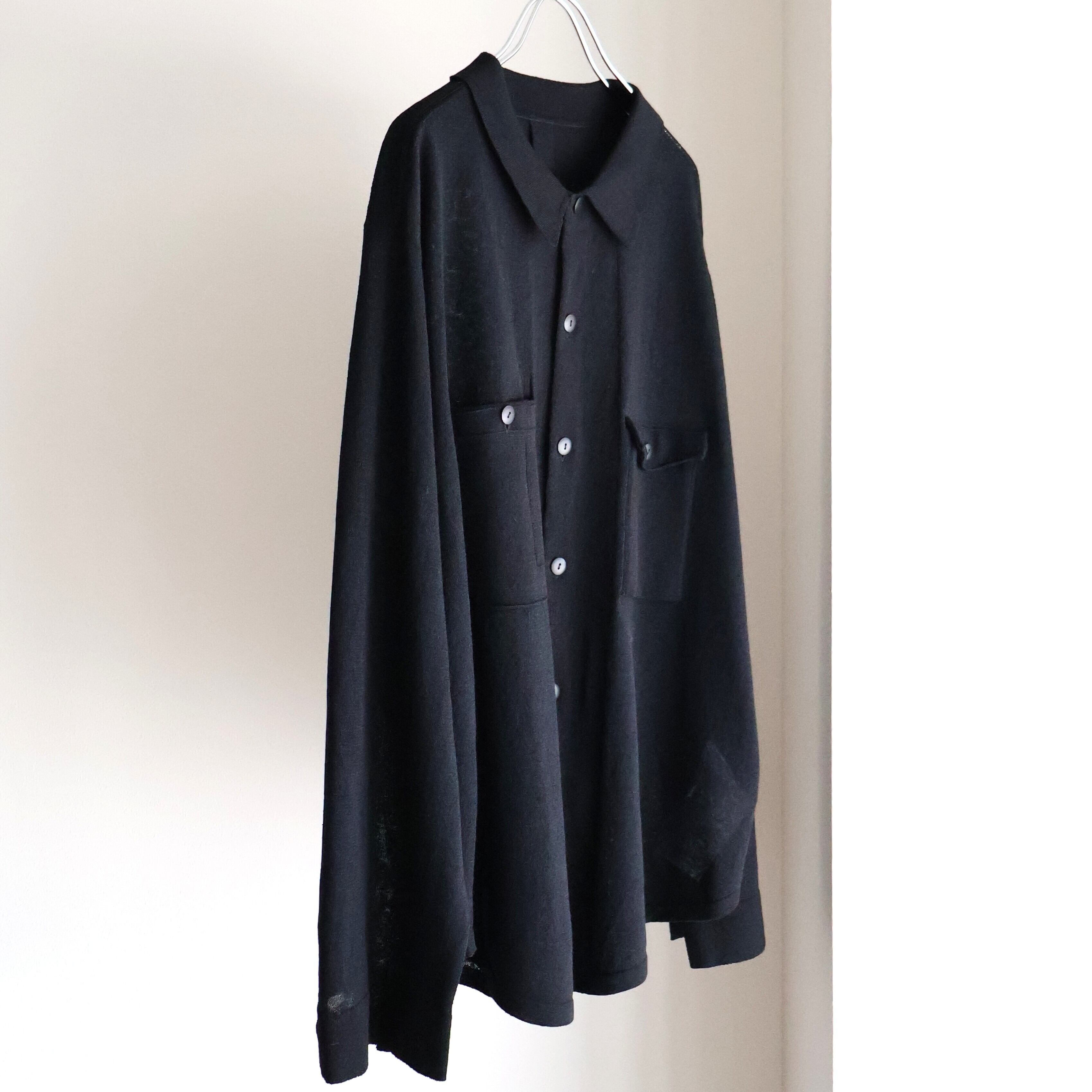 1930年代のワークシャツに⾒られる意匠のコンビニエントポケット、"通称ガチャポケ"をニットで表現。