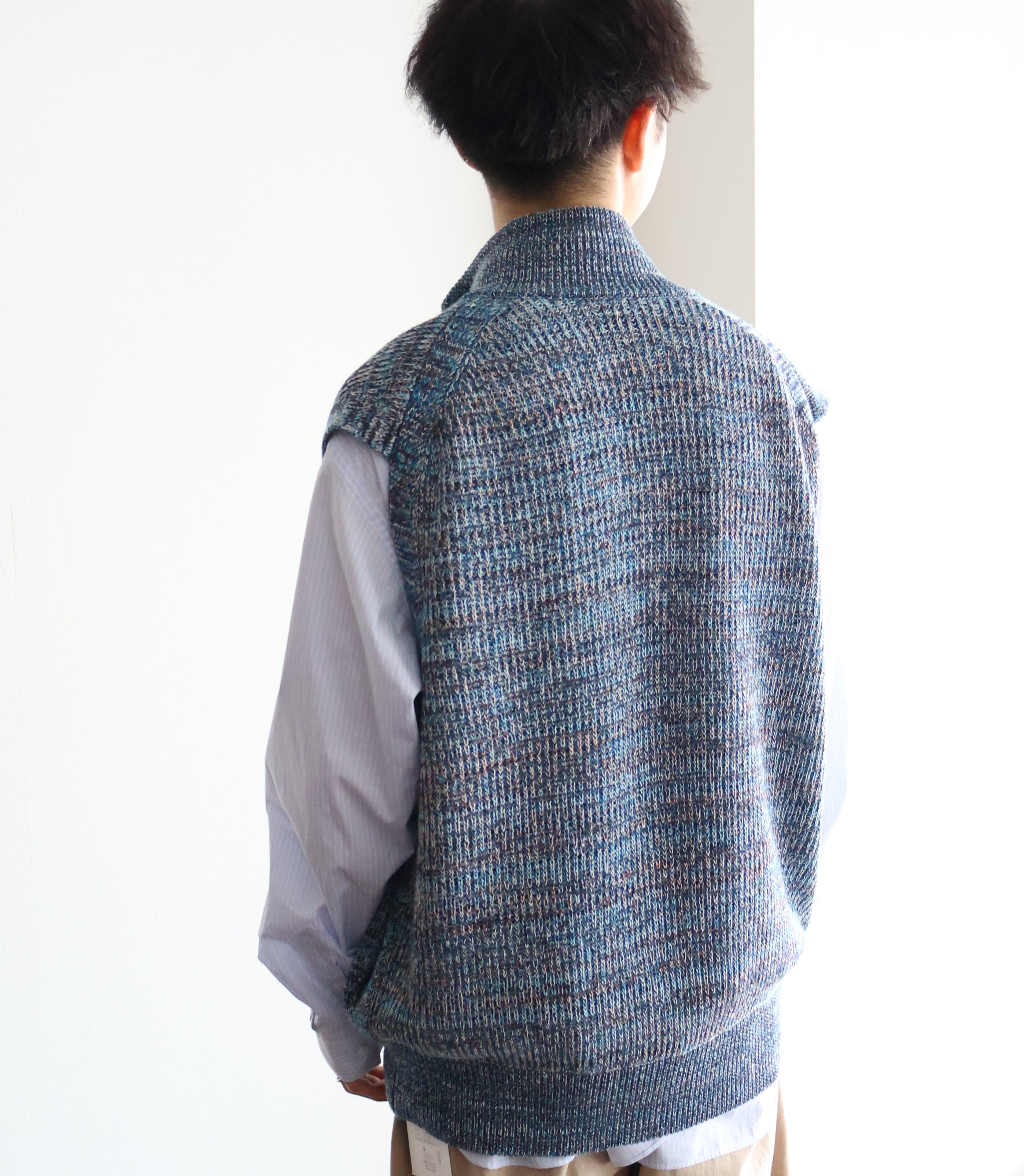リネンをベースに違う3素材を絶妙な配合でMIXしたドライバーズカーディガンのニットベストになります。