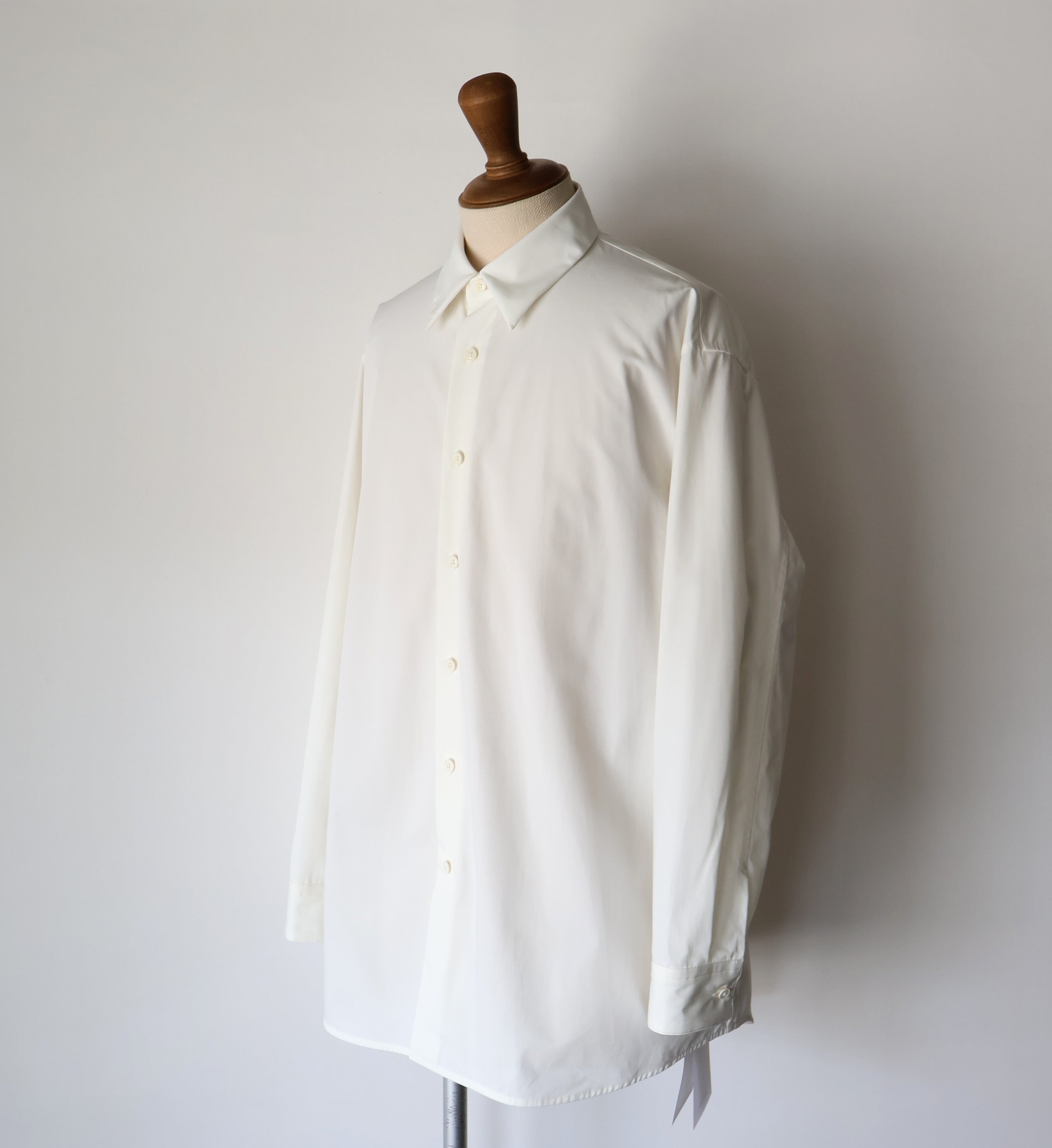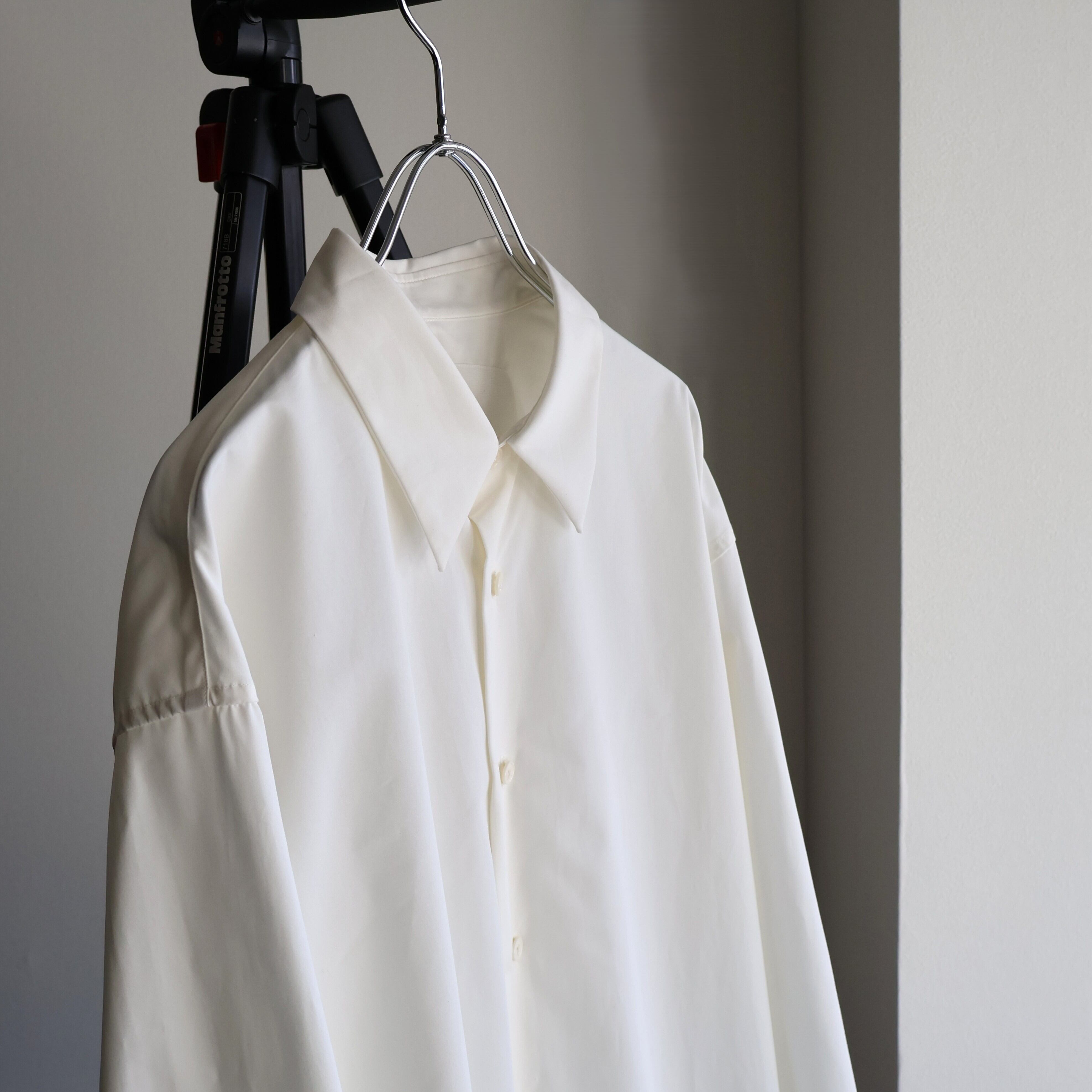 これはドレスシャツのような美しい光沢感と、タフさという二律背反を同時に宿した素材にするための選択でした。 私が理想とするのは、着る人がノーアイロンでラフに羽織っても、どこか凛とした品格が残るシャツ。