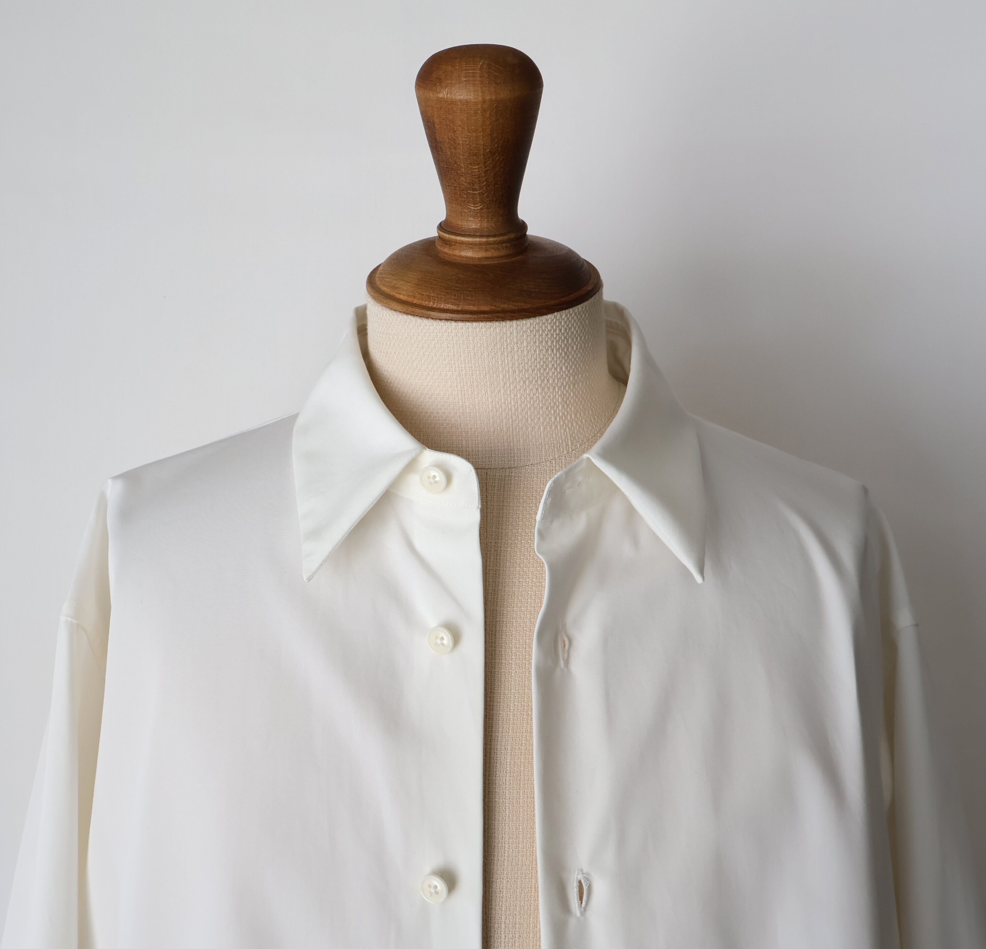 nonnotteの定番シャツとして、シーズンを重ねるごとに細やかに進化を続けているモデルです。 今季は、襟をノーステッチにすることで、線の美しさを際立たせ、よりミニマルな印象にリニューアル。
