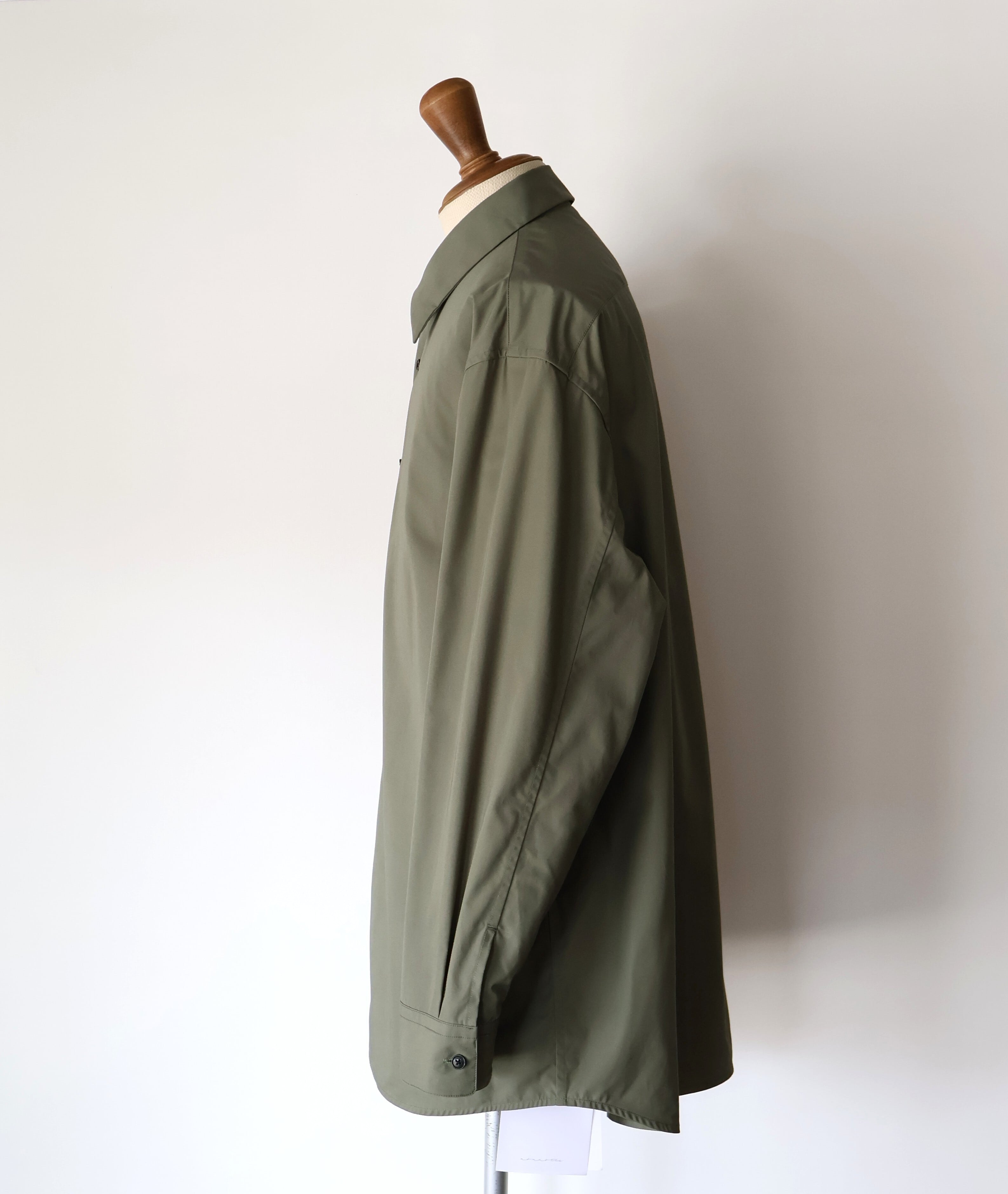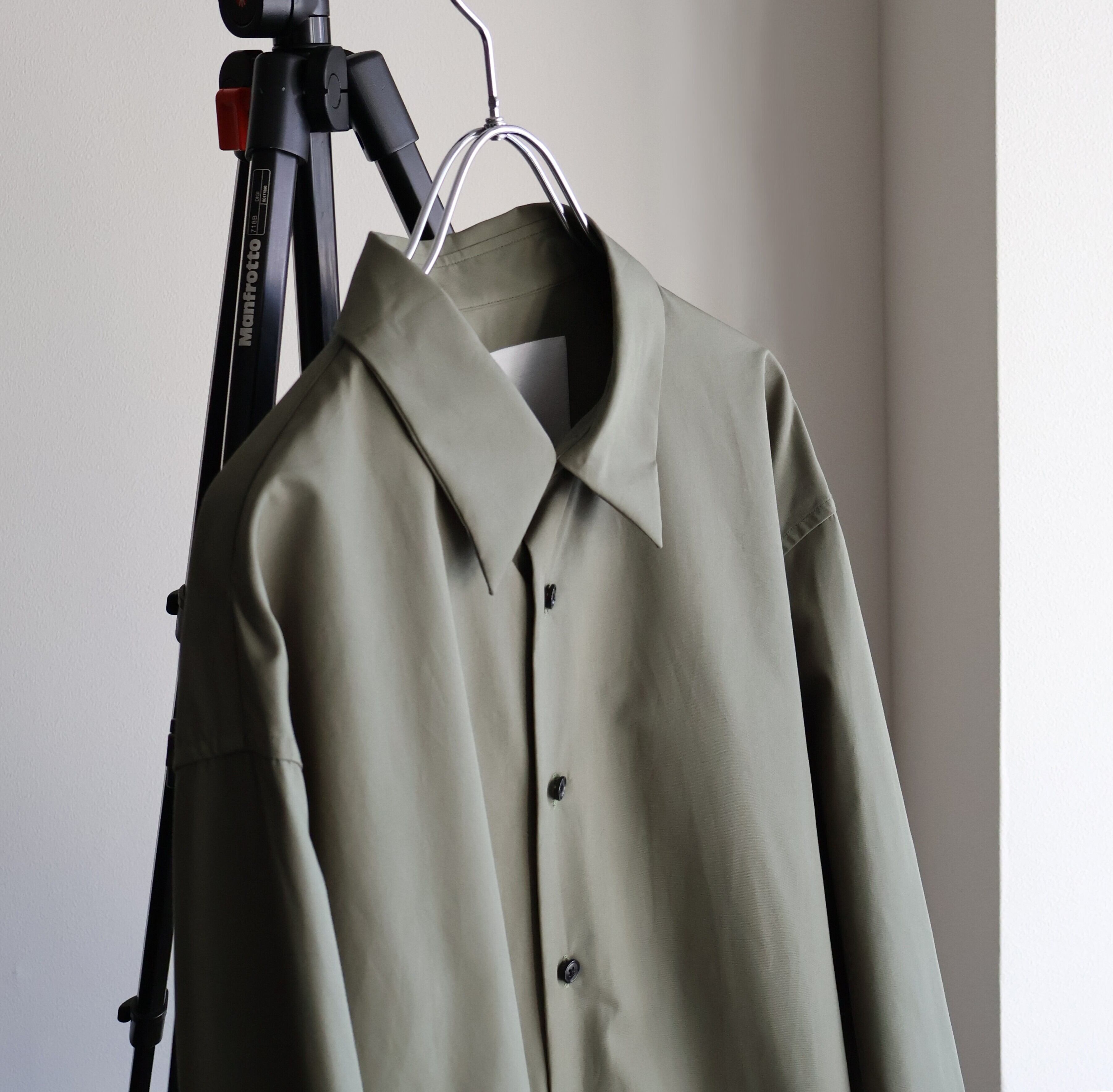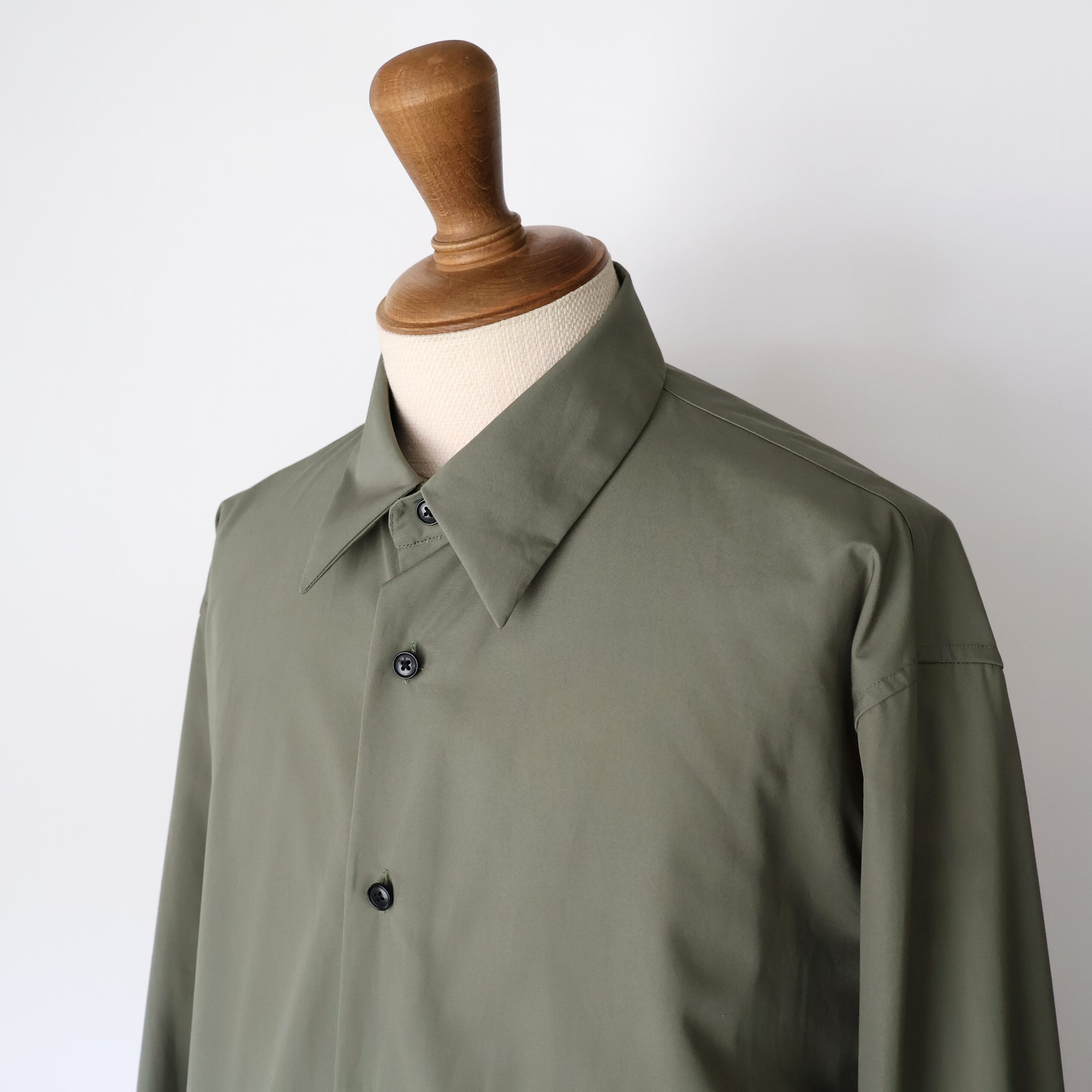 これはドレスシャツのような美しい光沢感と、タフさという二律背反を同時に宿した素材にするための選択でした。 私が理想とするのは、着る人がノーアイロンでラフに羽織っても、どこか凛とした品格が残るシャツ。