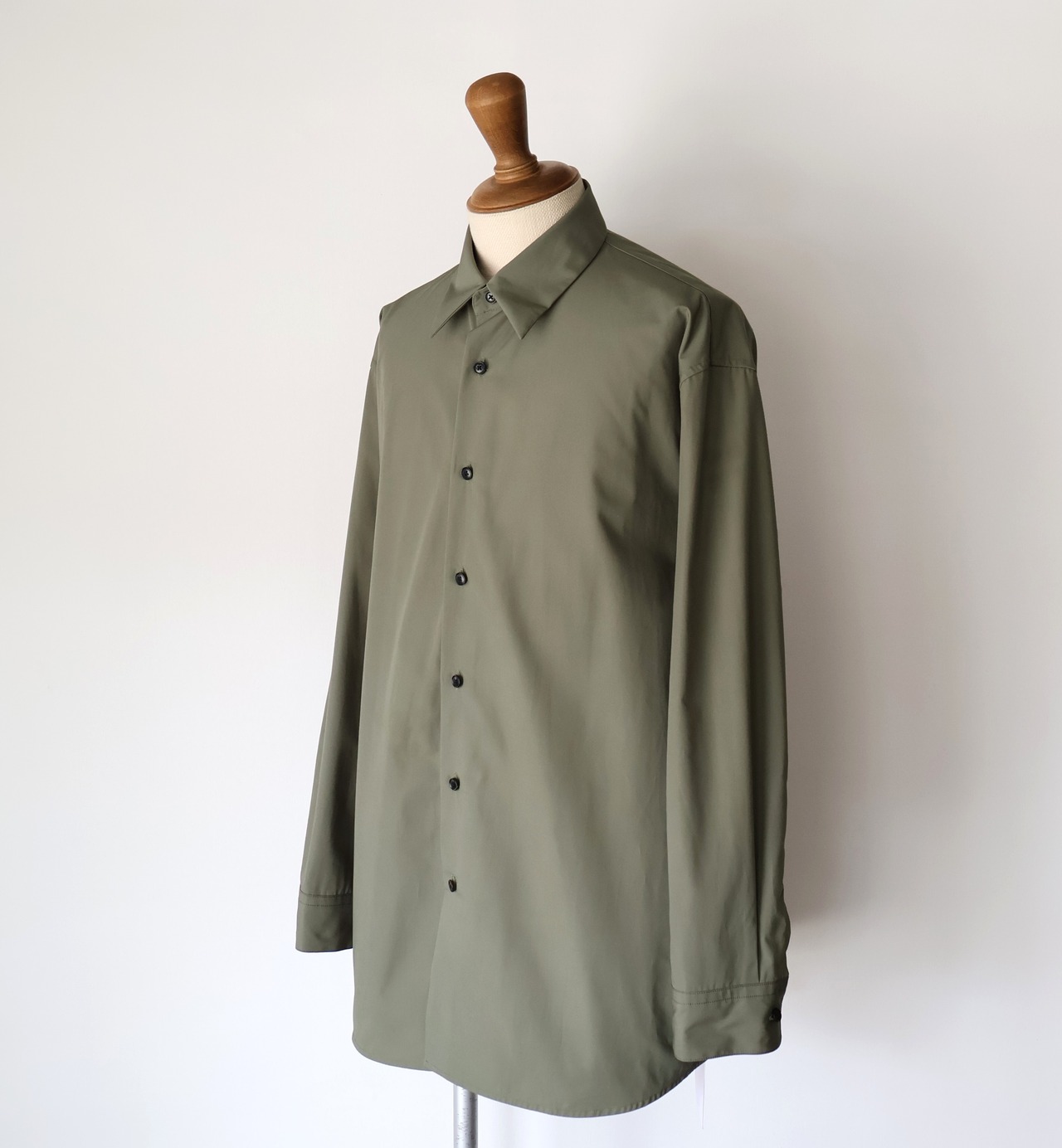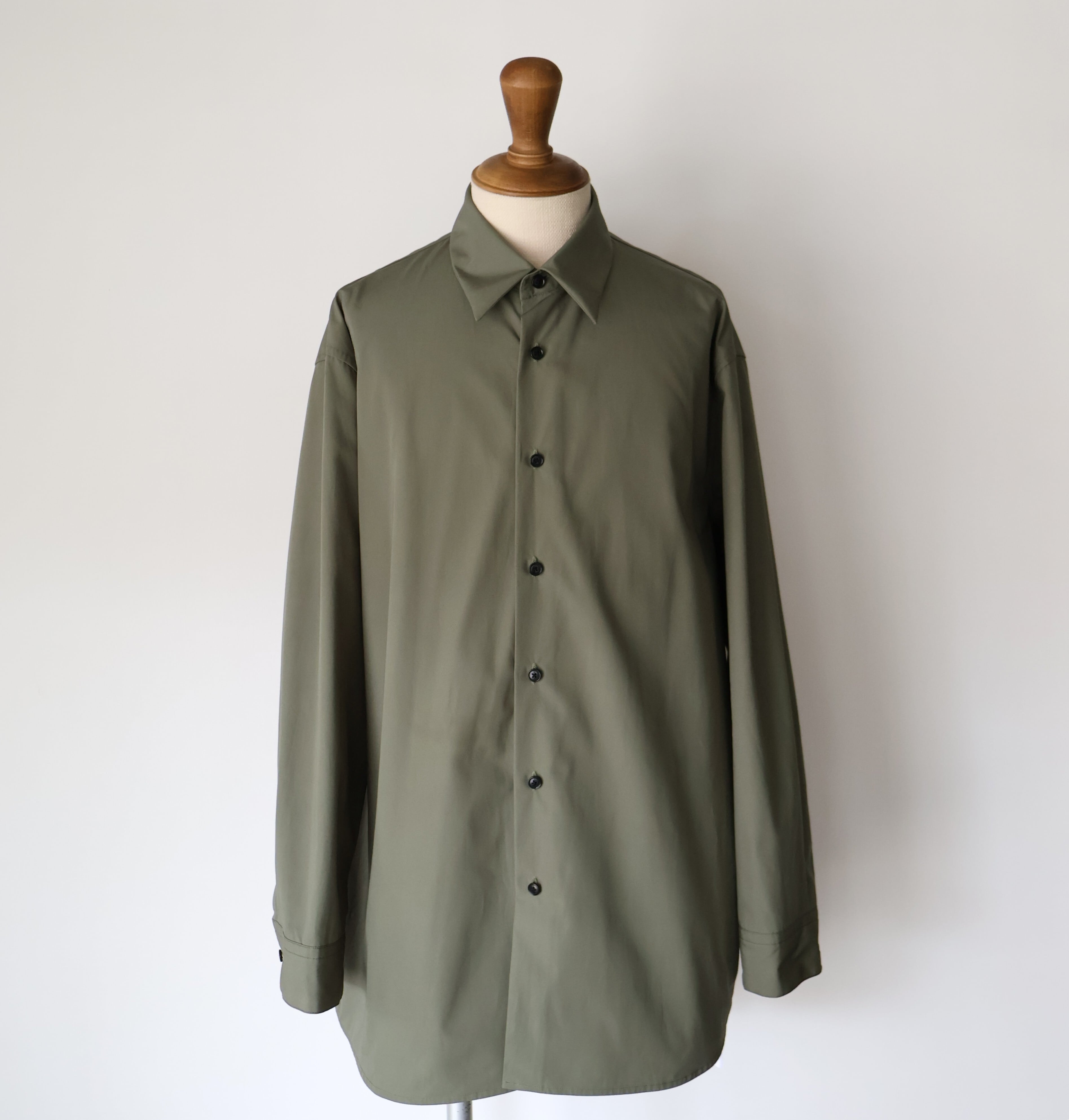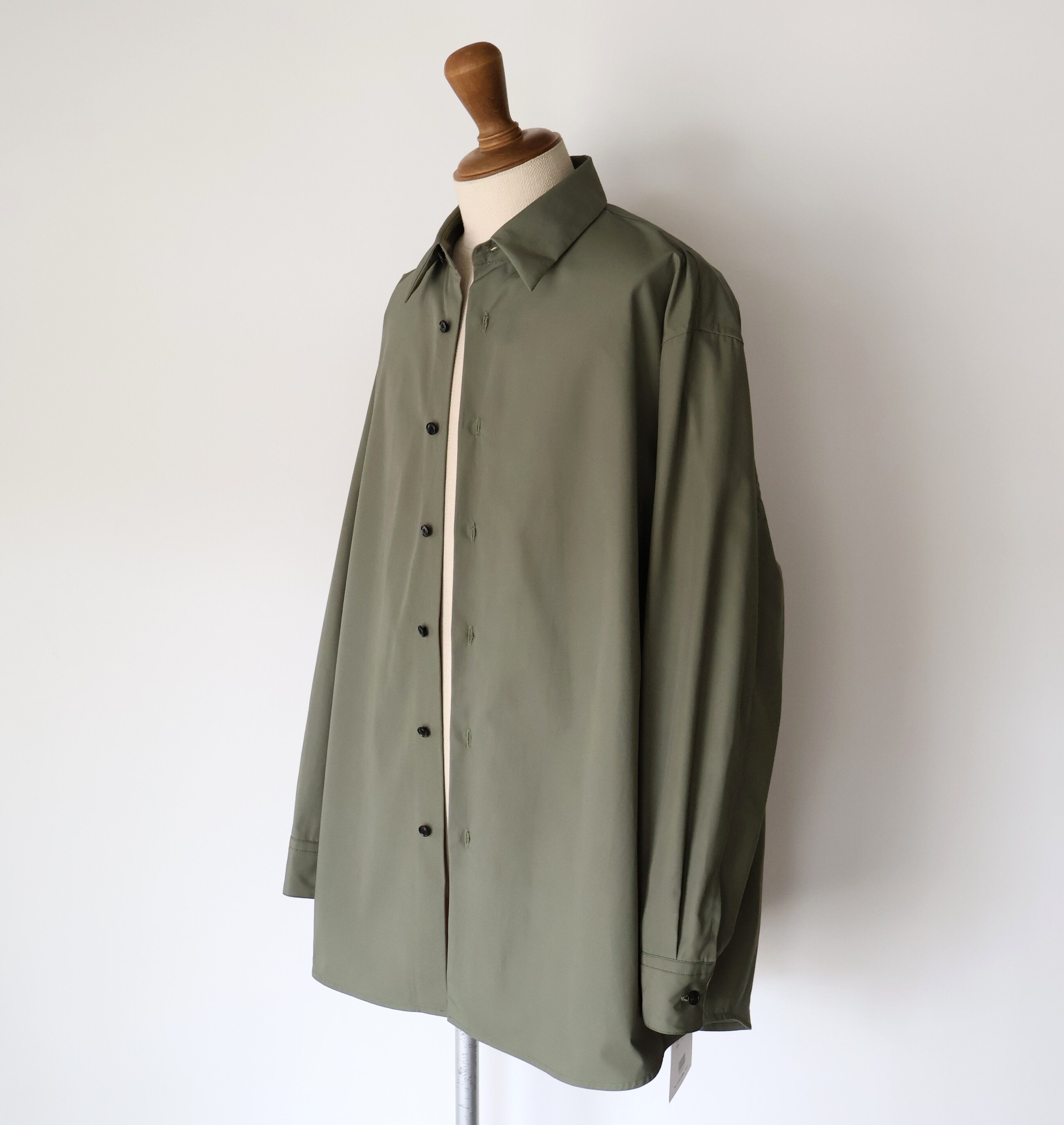 これはドレスシャツのような美しい光沢感と、タフさという二律背反を同時に宿した素材にするための選択でした。 私が理想とするのは、着る人がノーアイロンでラフに羽織っても、どこか凛とした品格が残るシャツ。