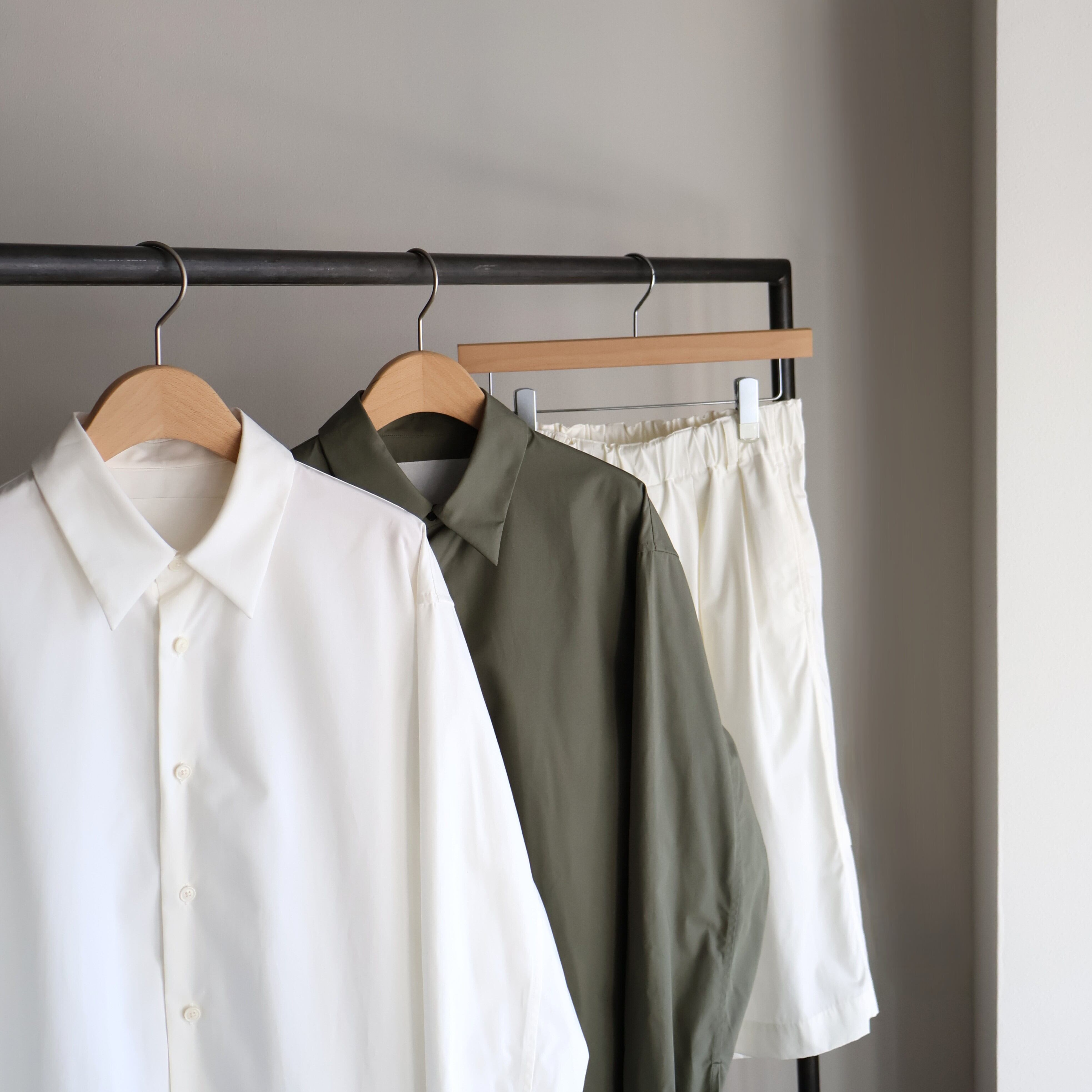 nonnotteの定番シャツとして、シーズンを重ねるごとに細やかに進化を続けているモデルです。 今季は、襟をノーステッチにすることで、線の美しさを際立たせ、よりミニマルな印象にリニューアル。