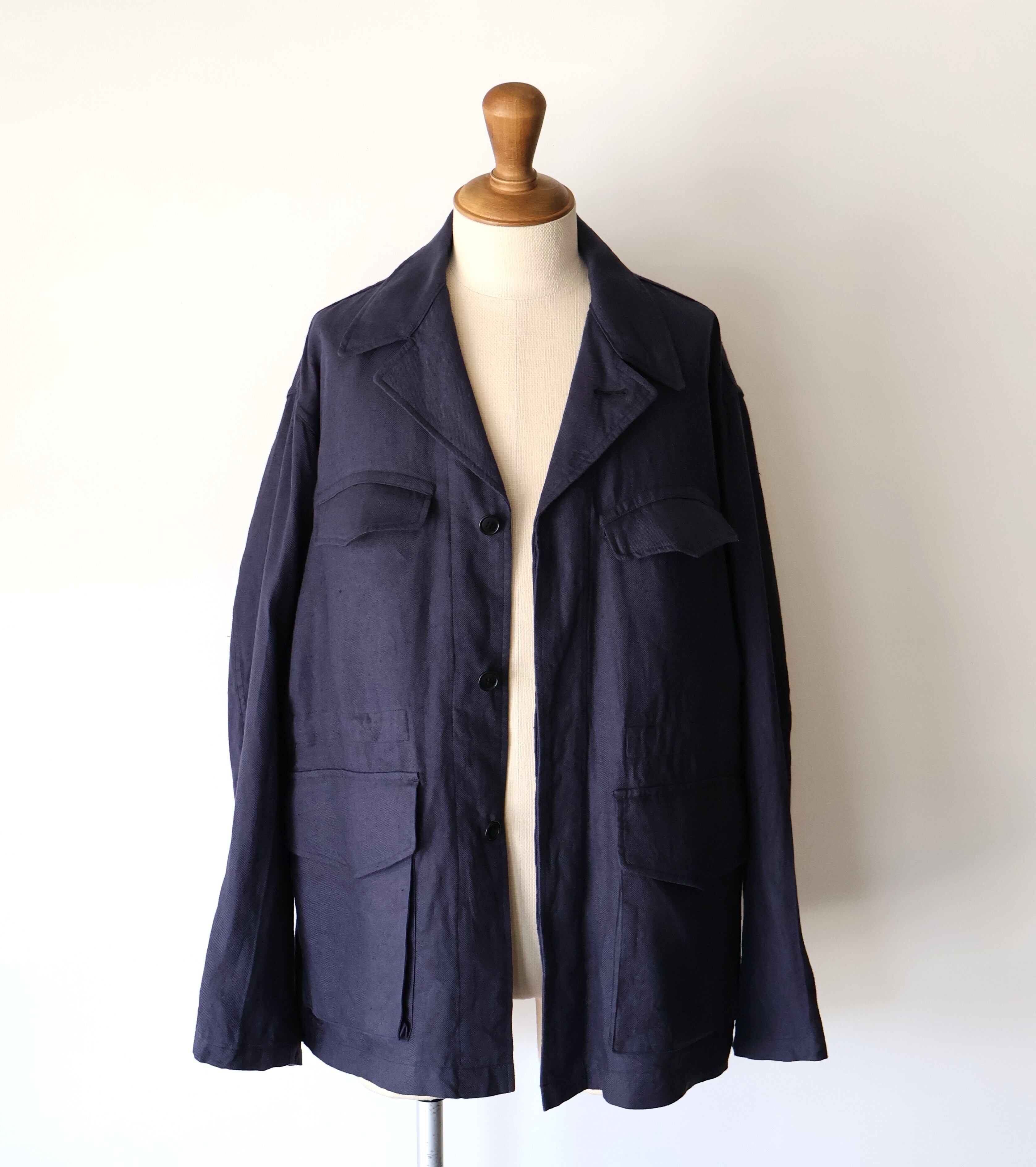 ベルギーのLIBECO社製のリネンツイルを使用したミリタリージャケットになります。